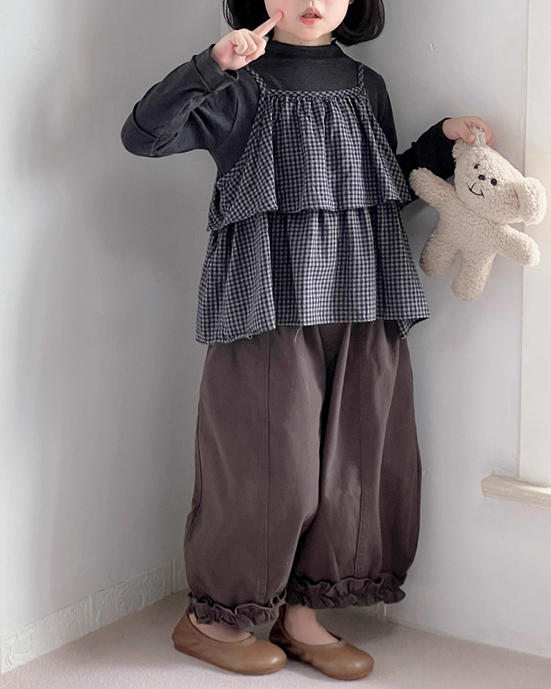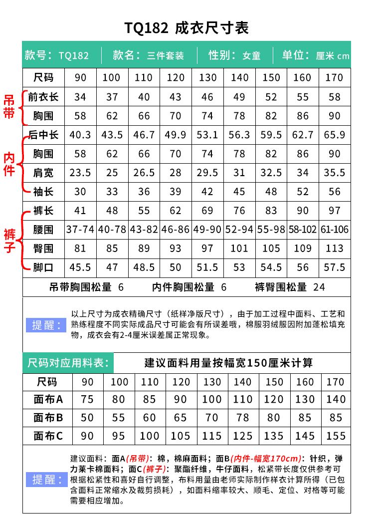 裁缝学苑TQ182女童韩系套装纸样儿童森系叠穿打底衫吊带裤子三件套样板图纸