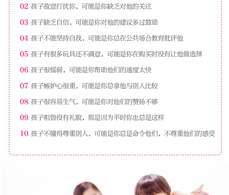 孩子的大部分问题来源于家长的错位教育,孩子没有错,错的是家长。因为父母并不知道在他眼中孩子的“错误”,其实只是孩子这个年龄段的心理特点。