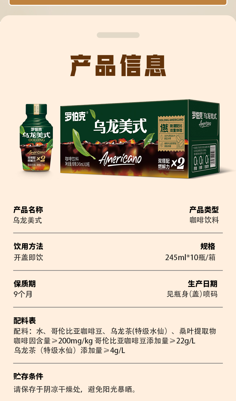 轻上乌龙美式咖啡饮料甄选哥伦比亚咖啡豆无菌冷罐即饮