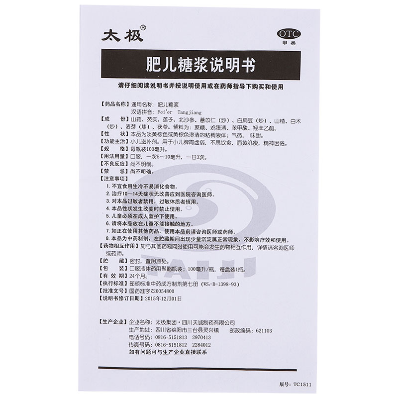 多盒优惠】太极 肥儿糖浆100ml小儿健脾养胃不思饮食面黄肌瘦厌食