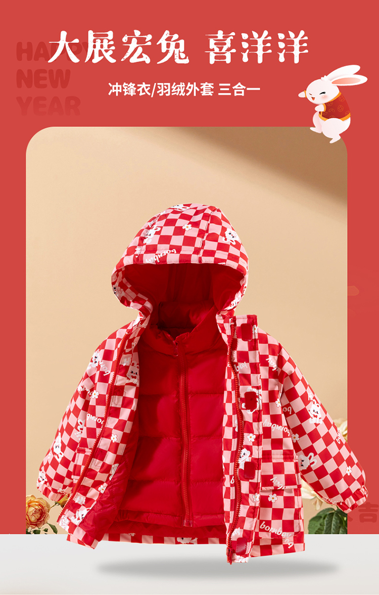 贝贝怡女童冲锋衣羽绒服秋冬装新款儿童加绒加厚三合一可拆卸外套234S3242