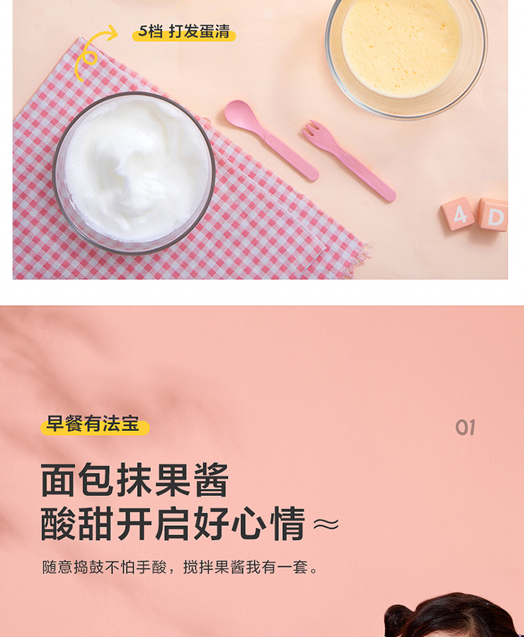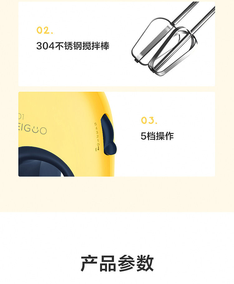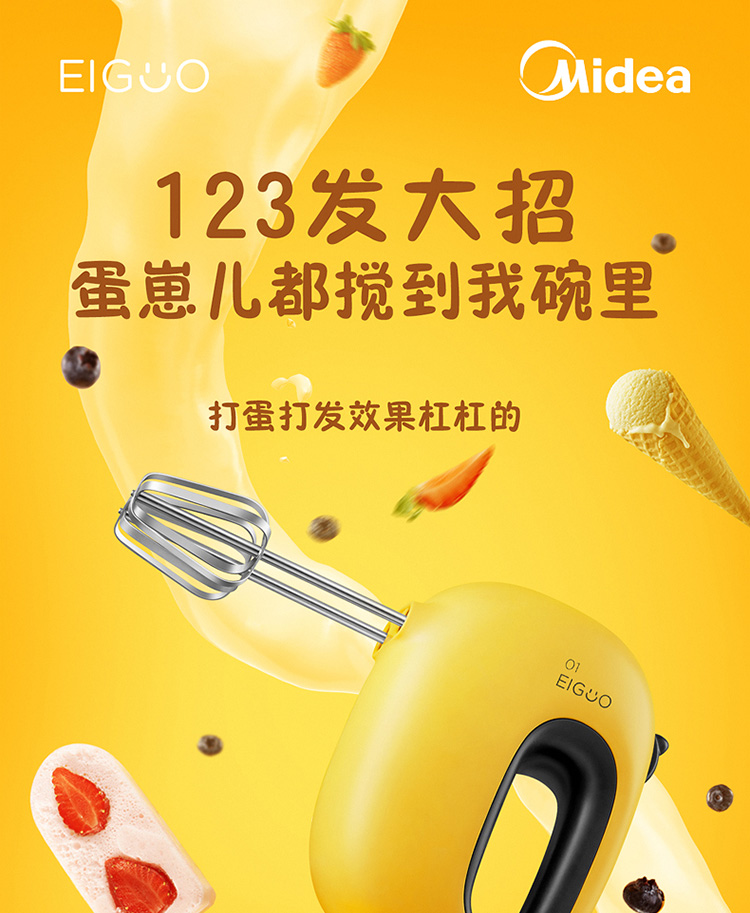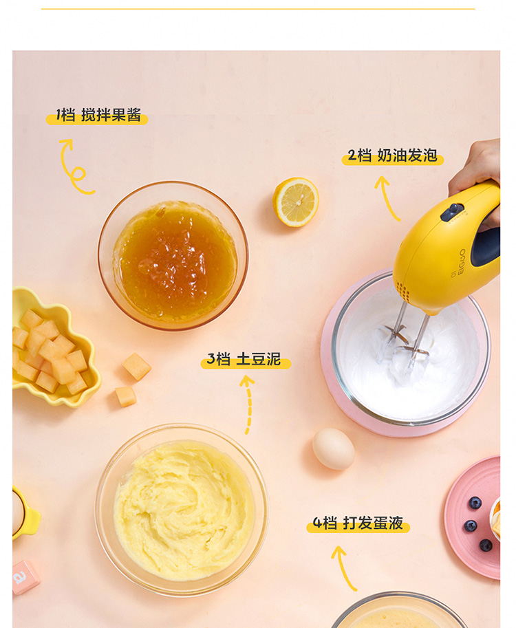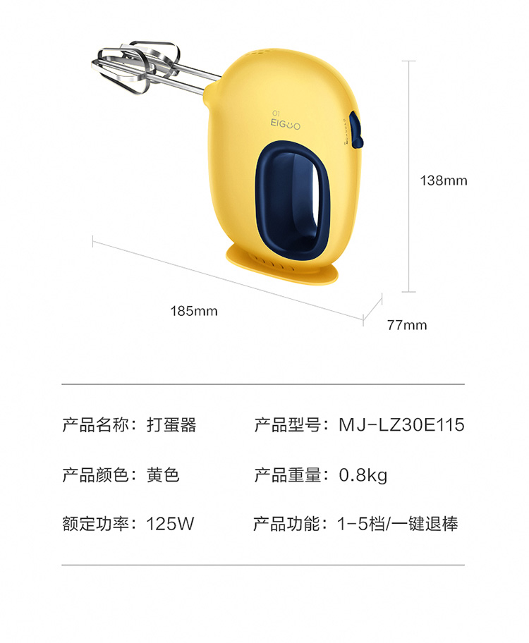 美的 Midea打蛋器萌潮捣蛋鬼奶油双棒设计五档操控家用电动 MJ-LZ30E115