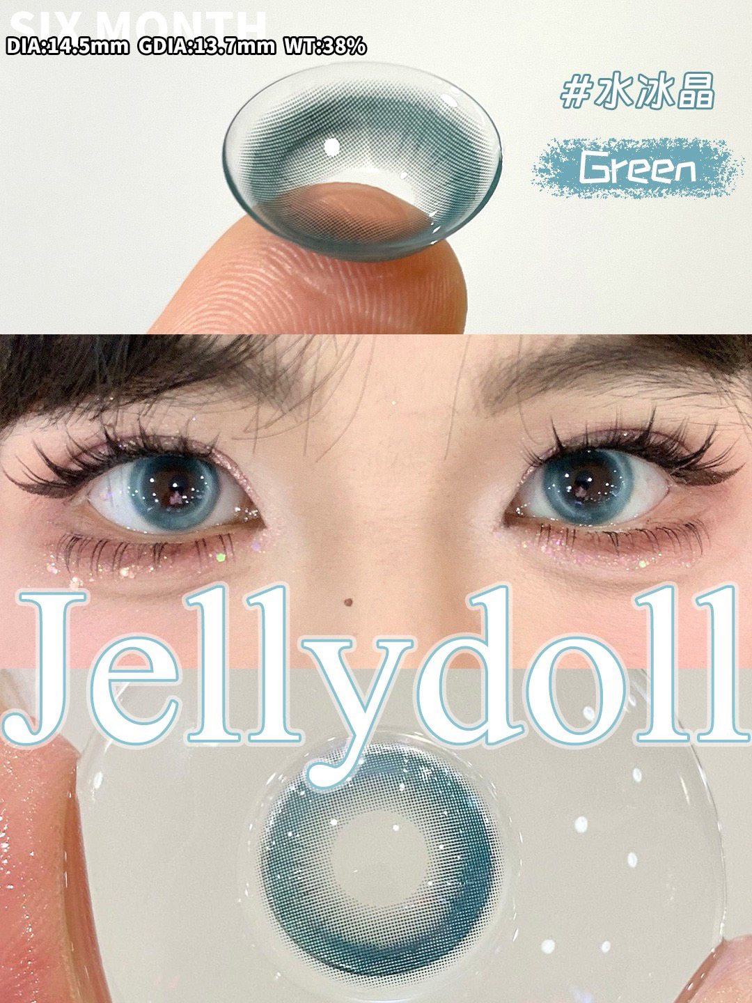 Jellydoll 水冰月蓝色/潘多拉紫色/水冰晶 绿色美瞳 日抛/半年抛 双版本可选 14.5mm