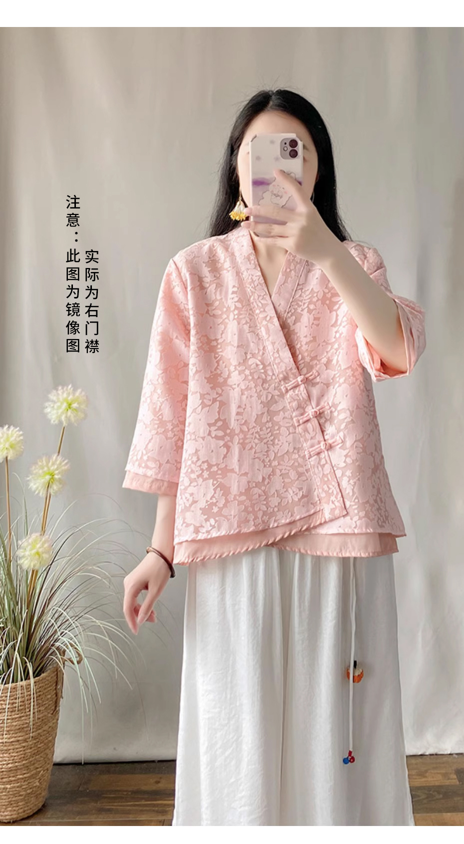 裁缝学苑AQ196 中国风斜襟盘扣开衫小衫纸样汉服V领打版裁剪样板