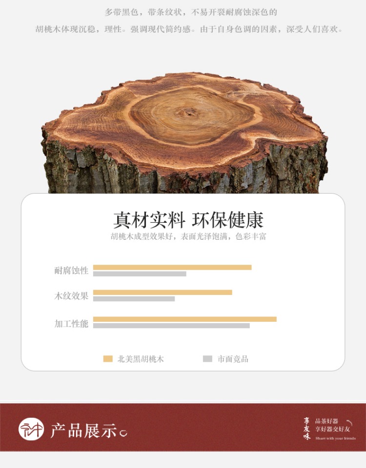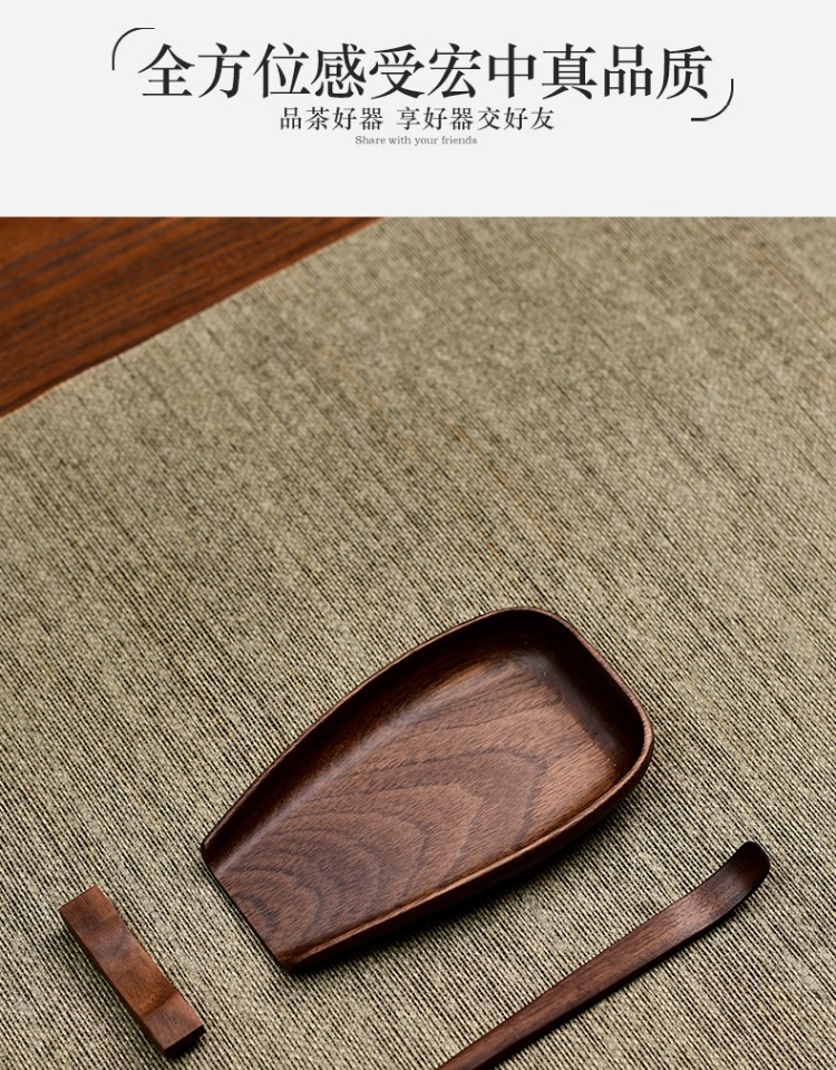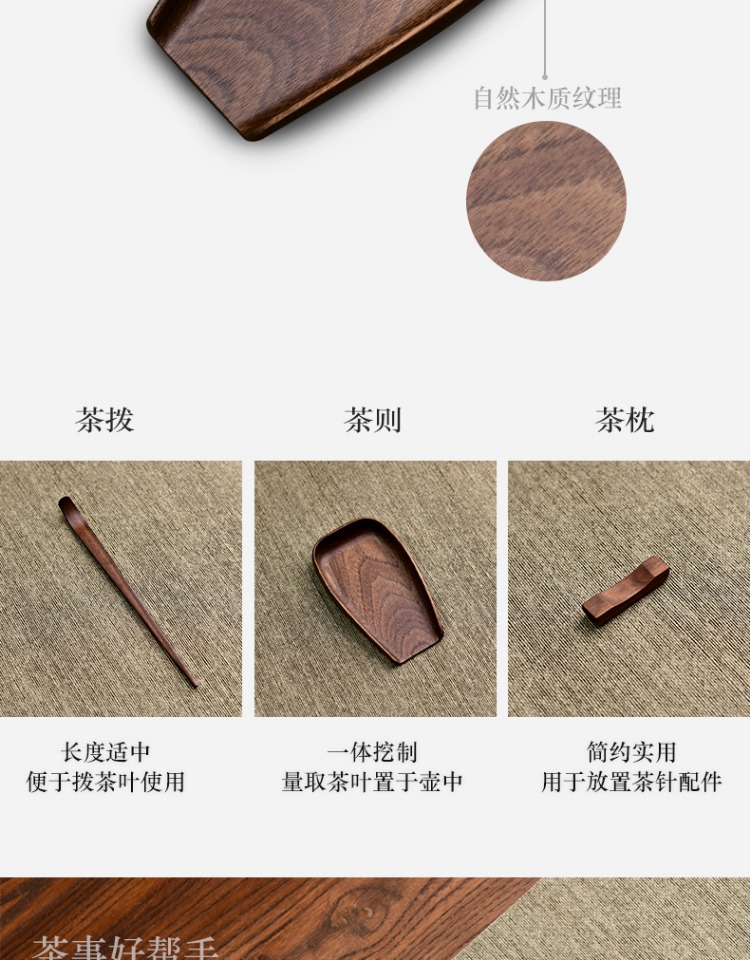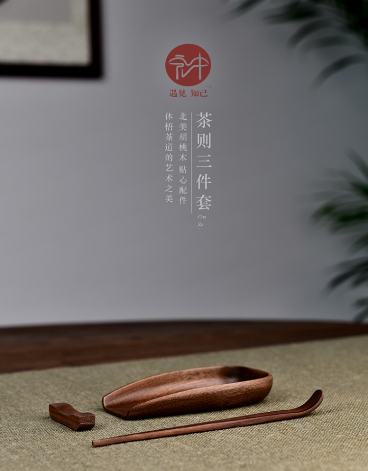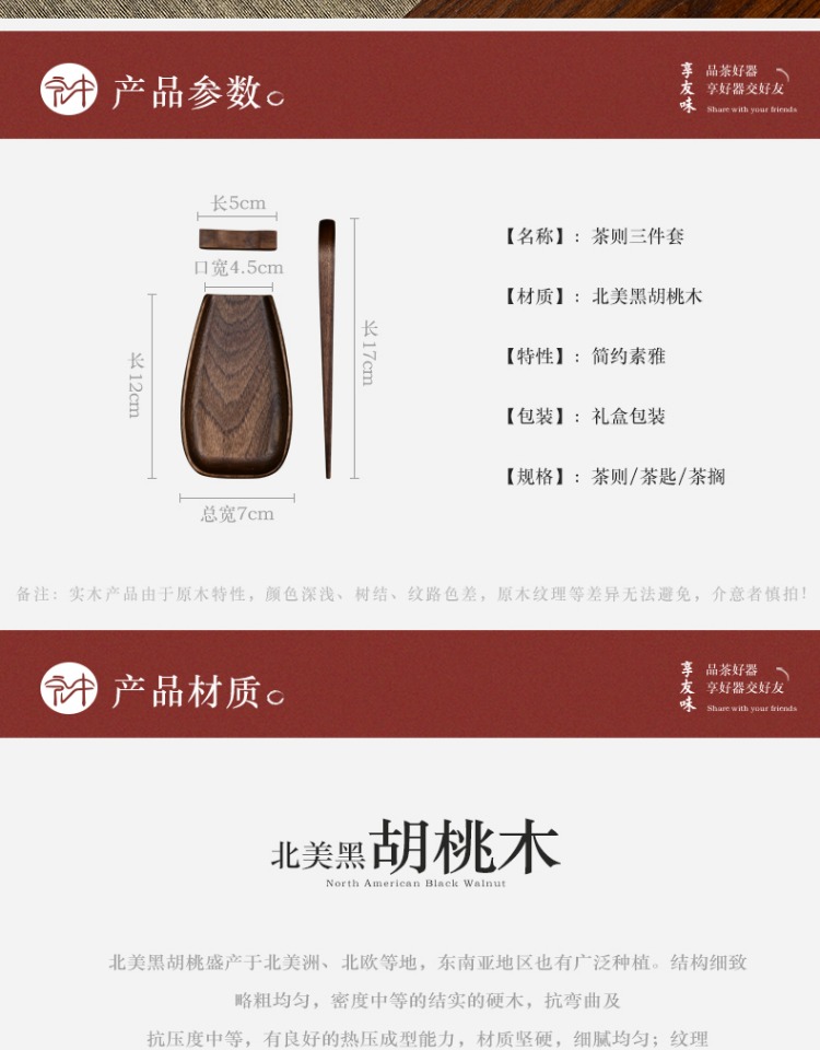 永利汇实木茶荷茶拨北美无漆黑胡桃木茶则三件套高档茶道配件手工制作