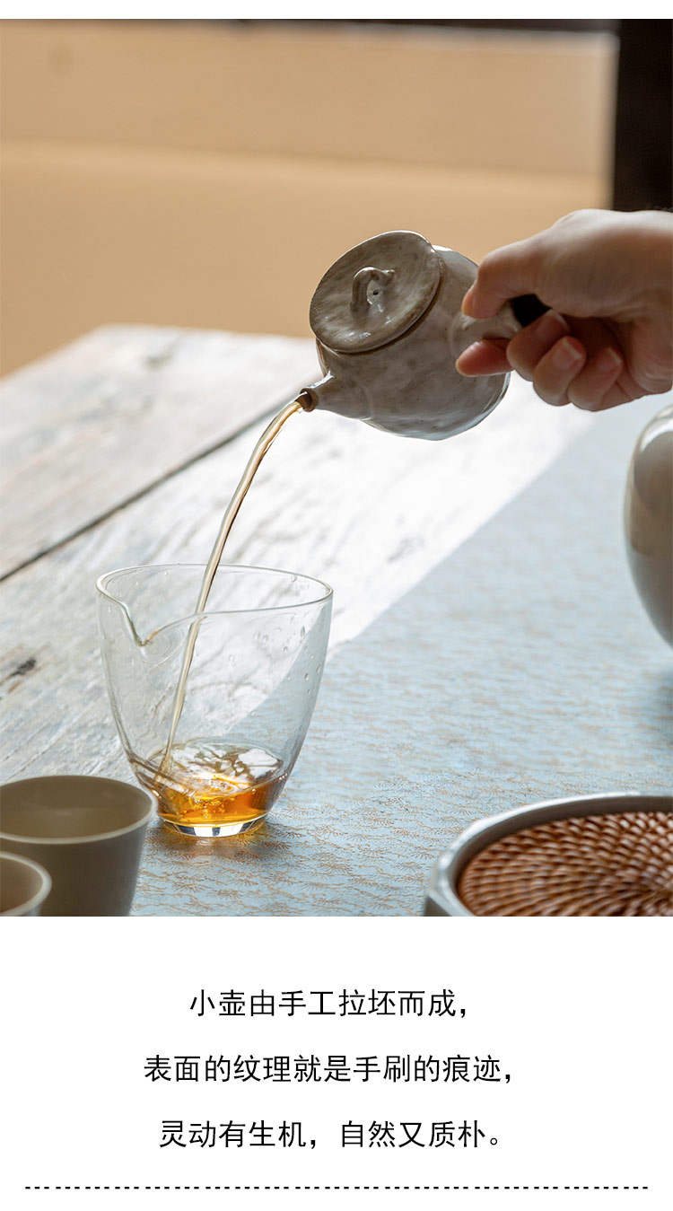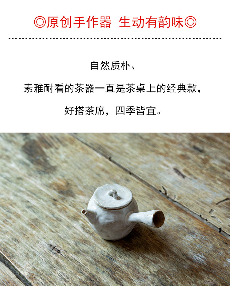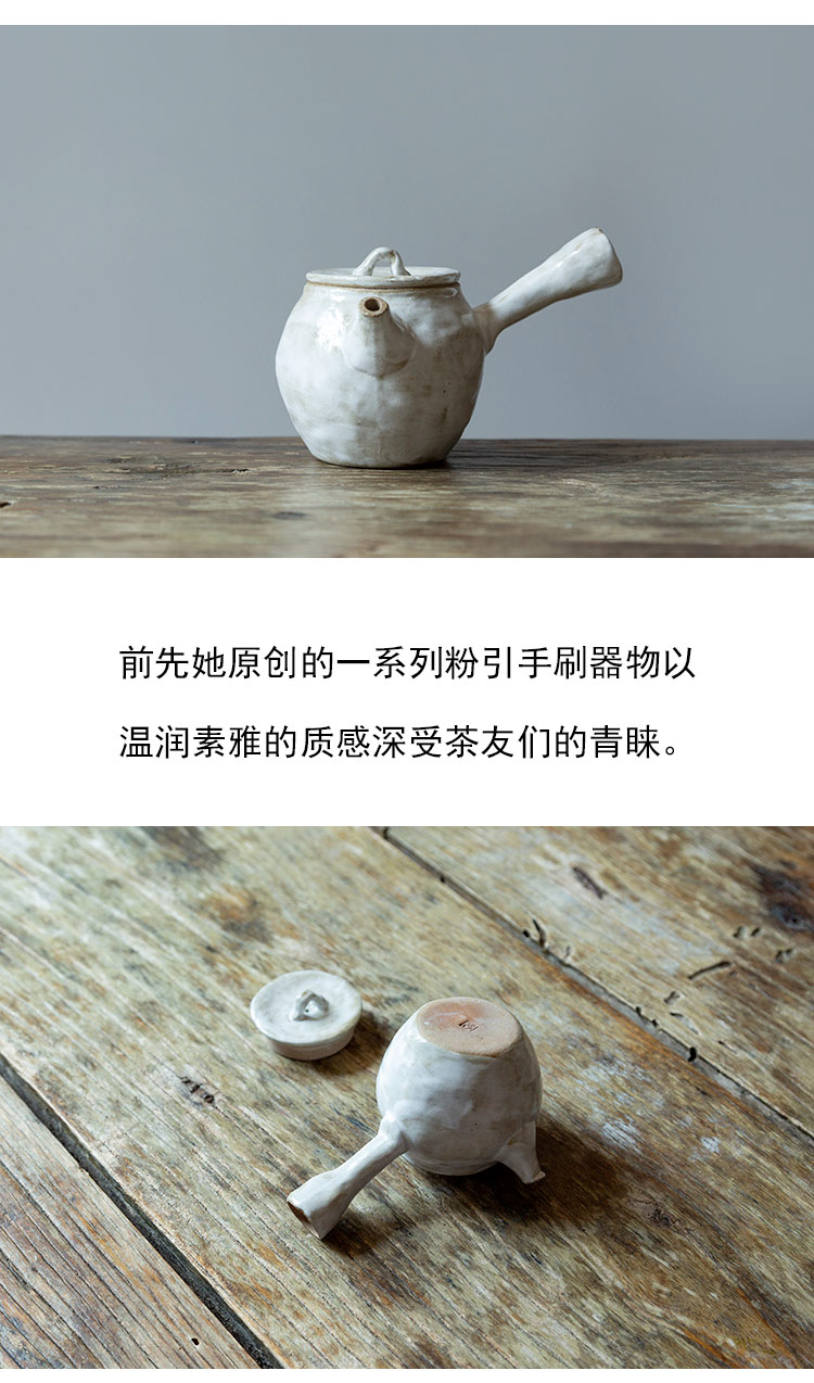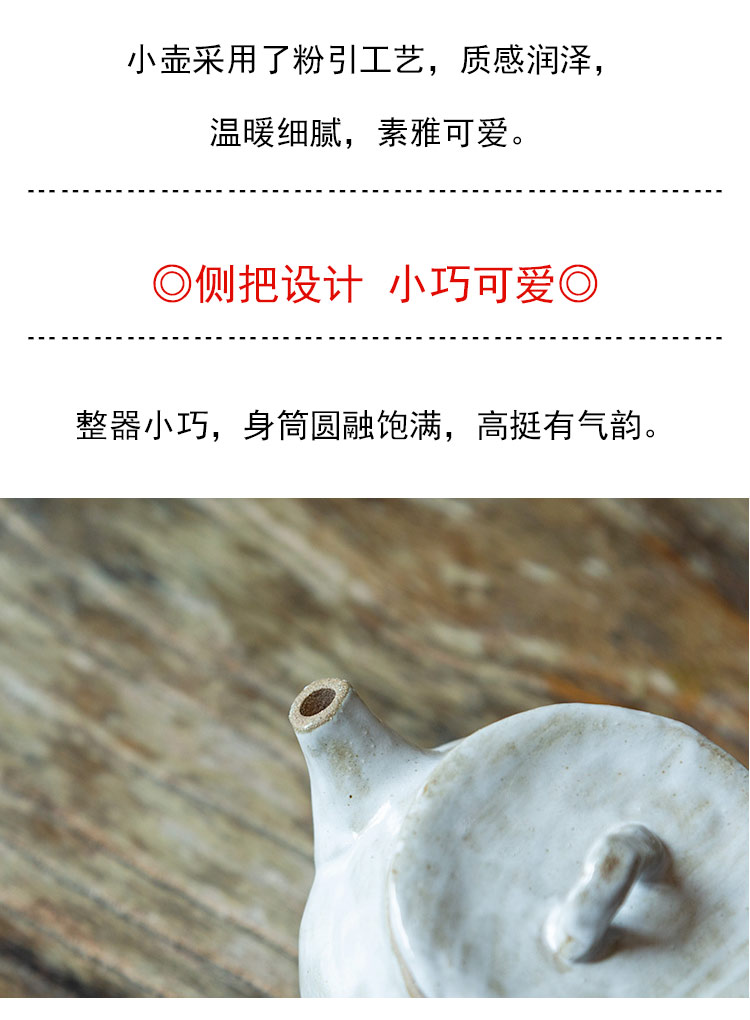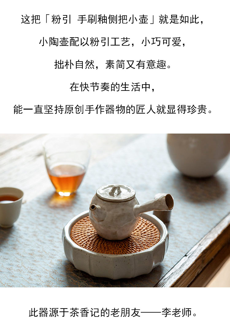 茶香记 粉引手刷釉侧把小壶130ml小巧可爱自然质朴陶瓷泡茶壶茶具