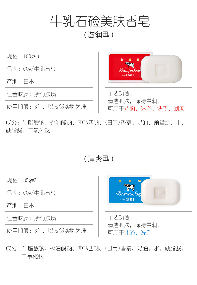 【品牌直发】【多块装】日本进口cow牛乳石硷碱牛奶香皂沐浴皂日本牛牌手工洁面皂多功能清爽 滋润皂