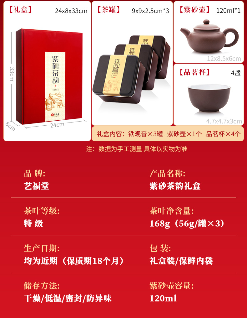 【品牌直发】【优选】艺福堂 特级清香型 安溪原产铁观音 紫砂茶韵礼盒168g/份