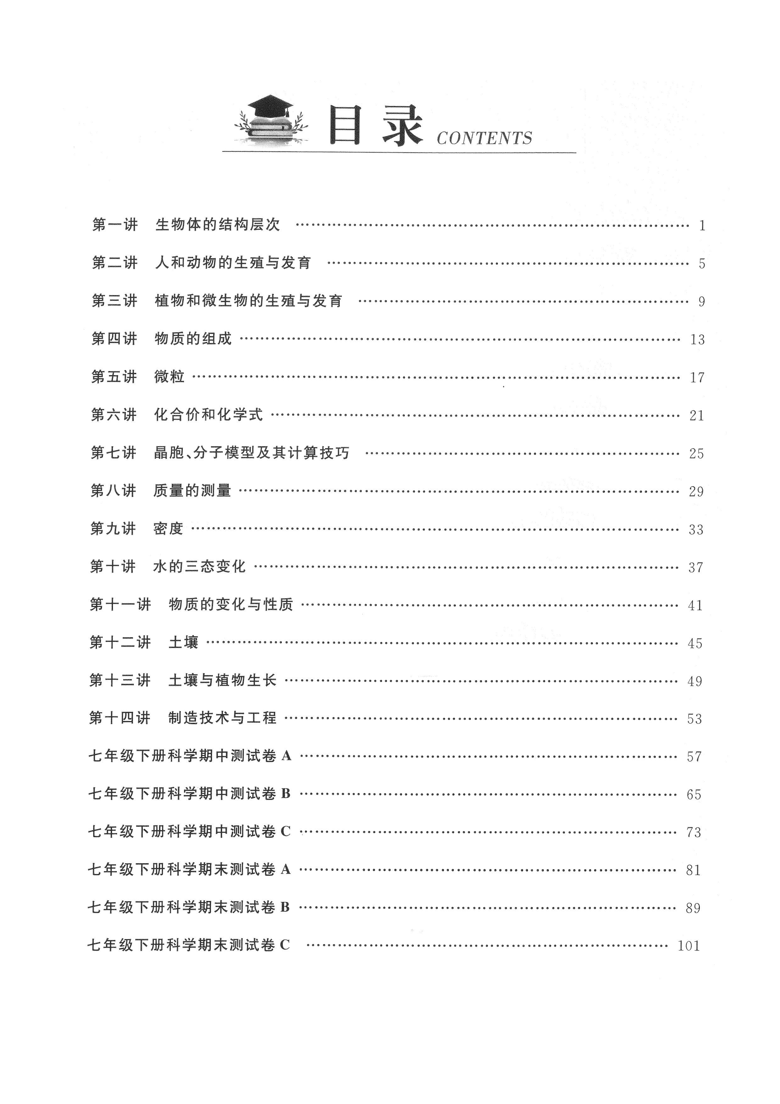 25新版 牵手重高科学七年级下册 浙教版 提分笔记教辅一本通
