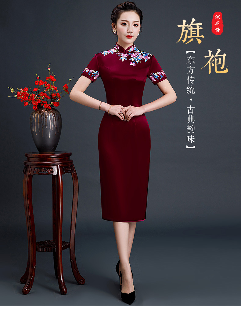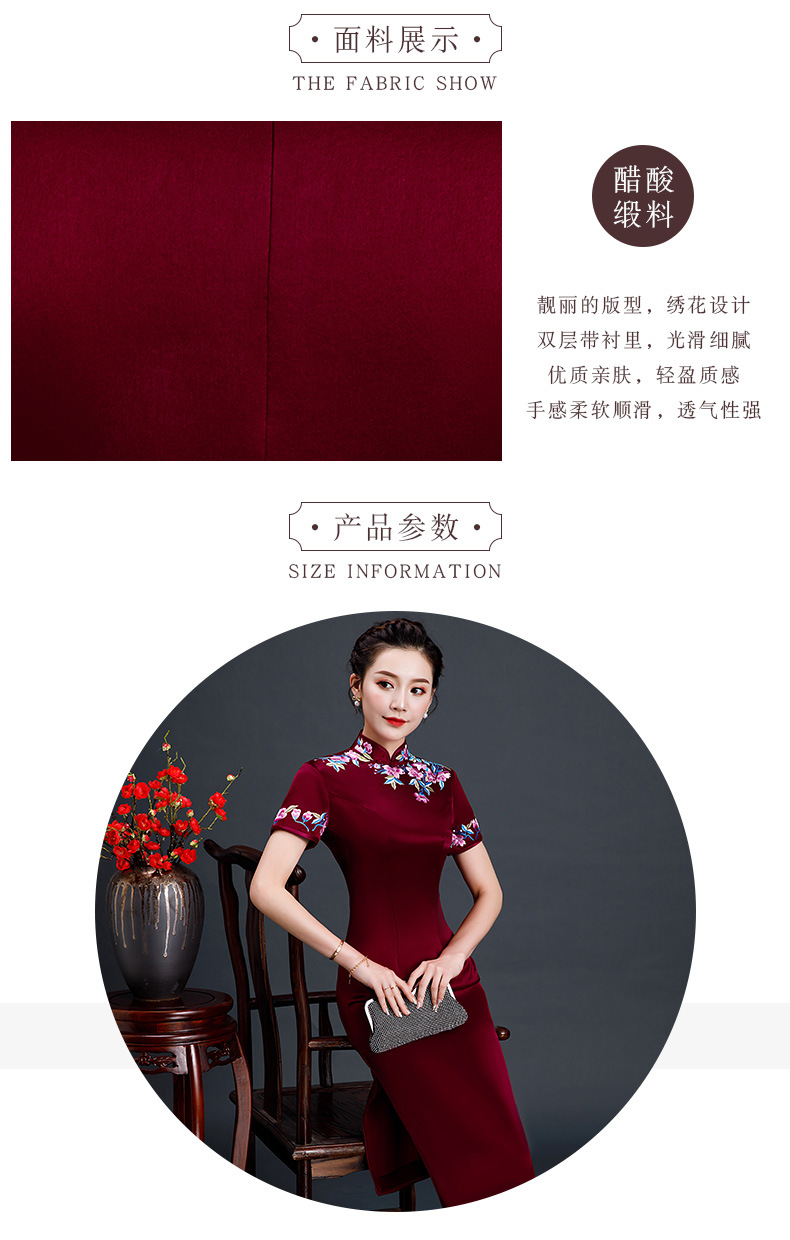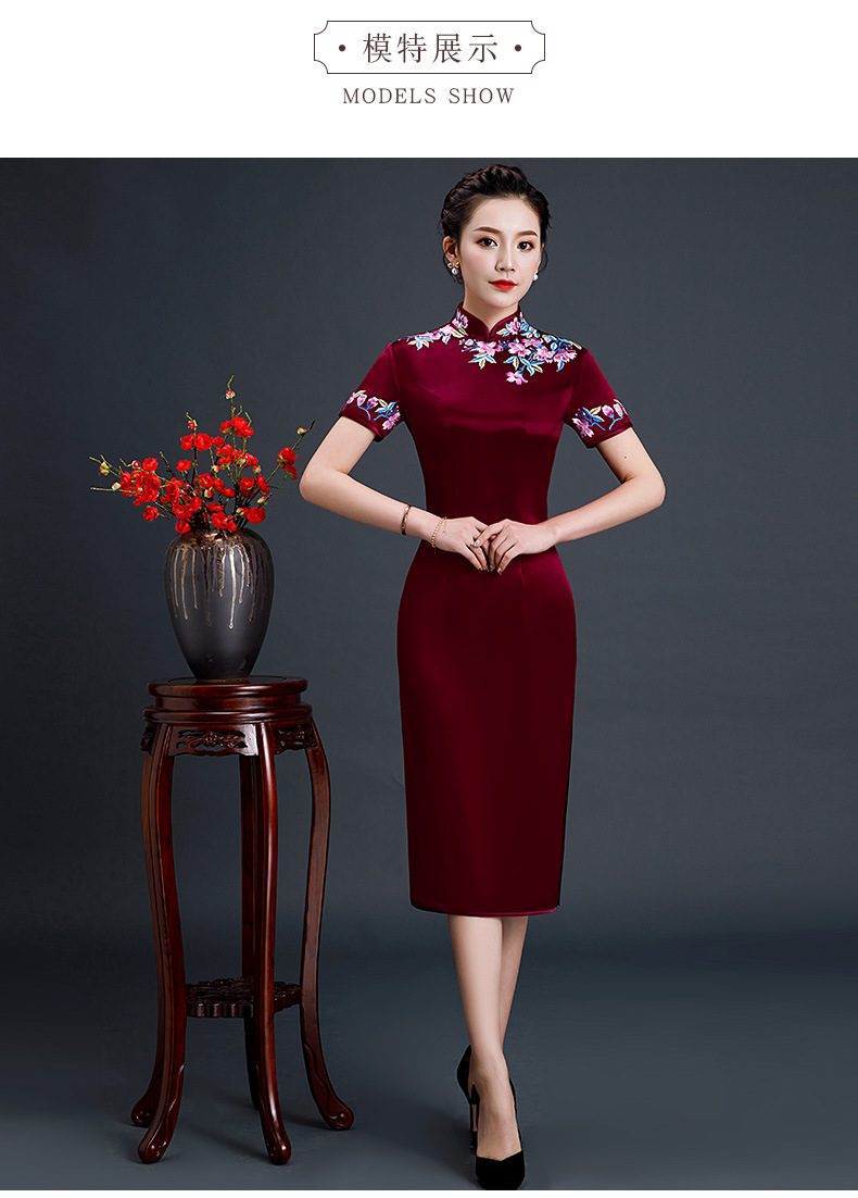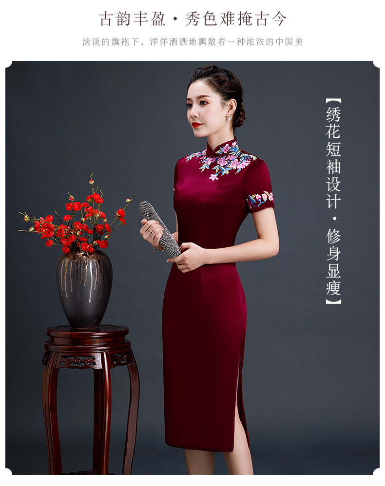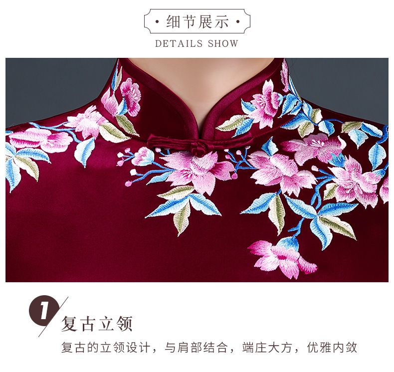 上海旗袍厂LHS-L1011新款刺绣中长款旗袍宴会婚宴大码旗袍裙