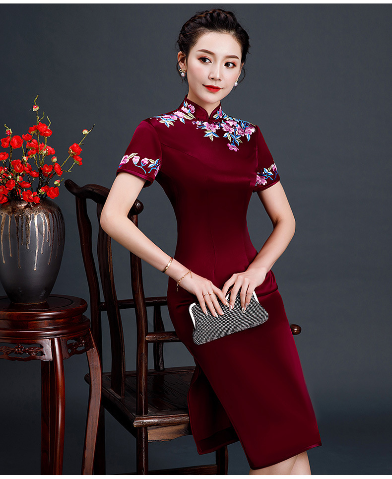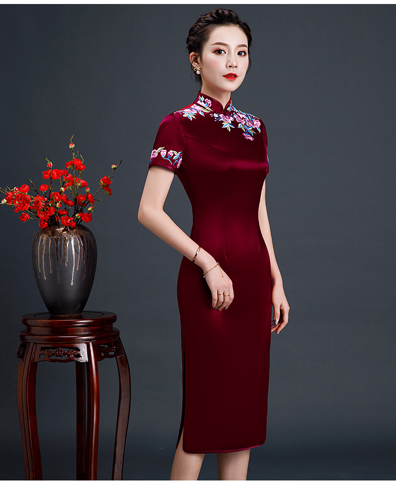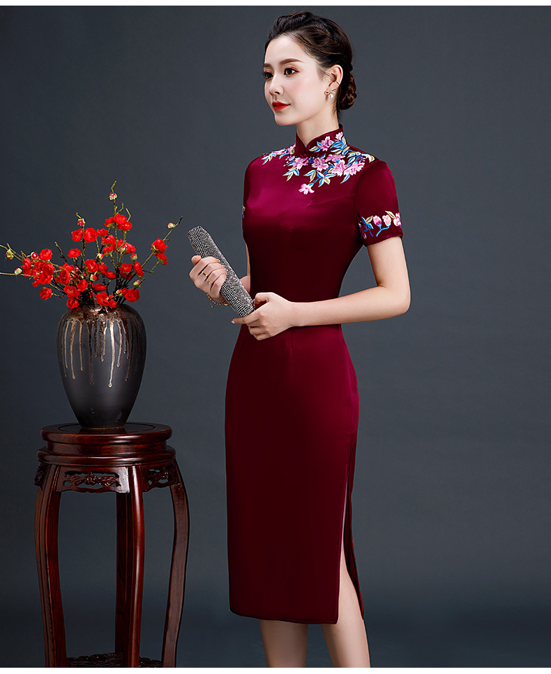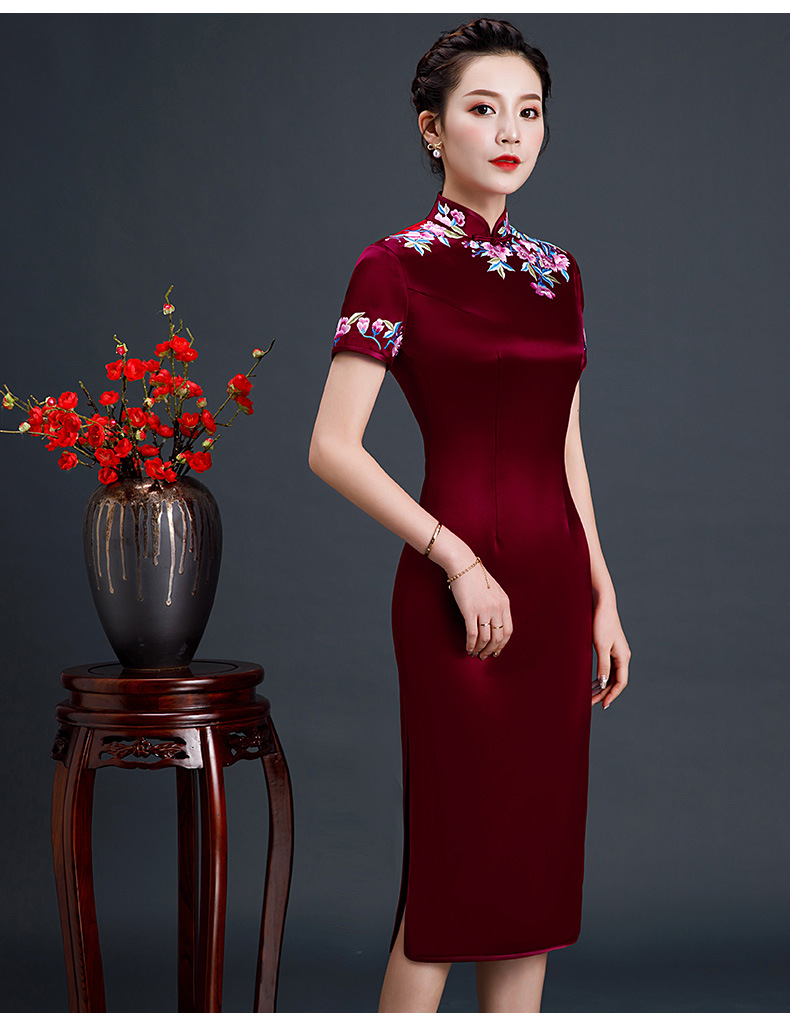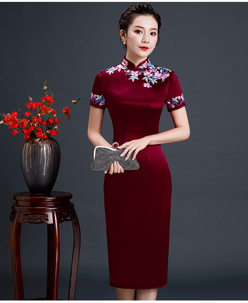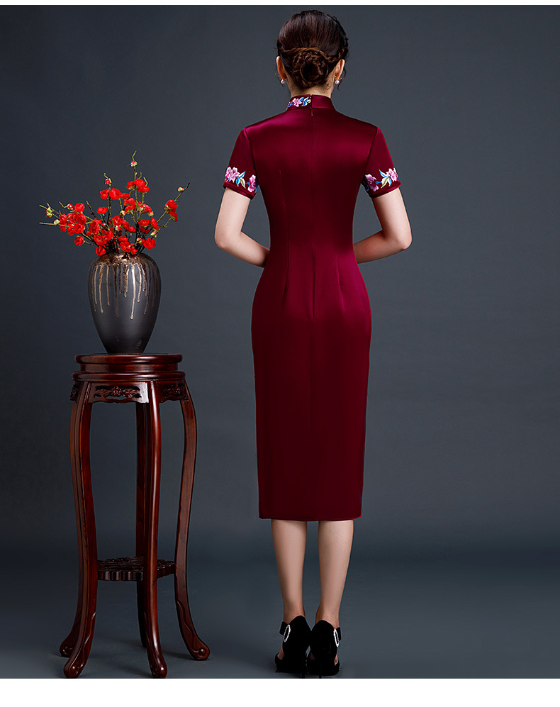 上海旗袍厂LHS-L1011新款刺绣中长款旗袍宴会婚宴大码旗袍裙