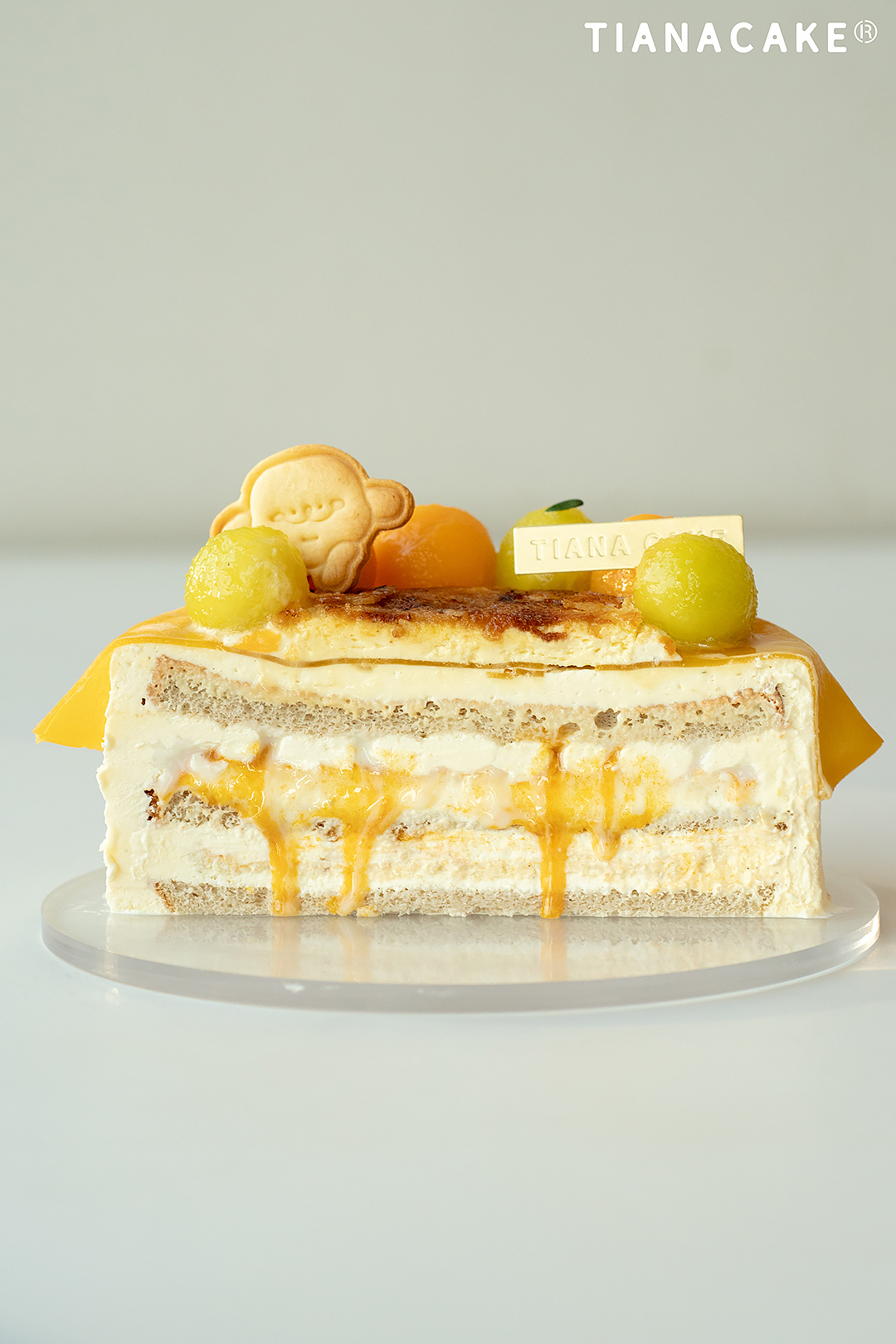 玄米蛋糕胚|茉莉奶油|黄小米米布丁|沙棘杏酱|流心麻薯