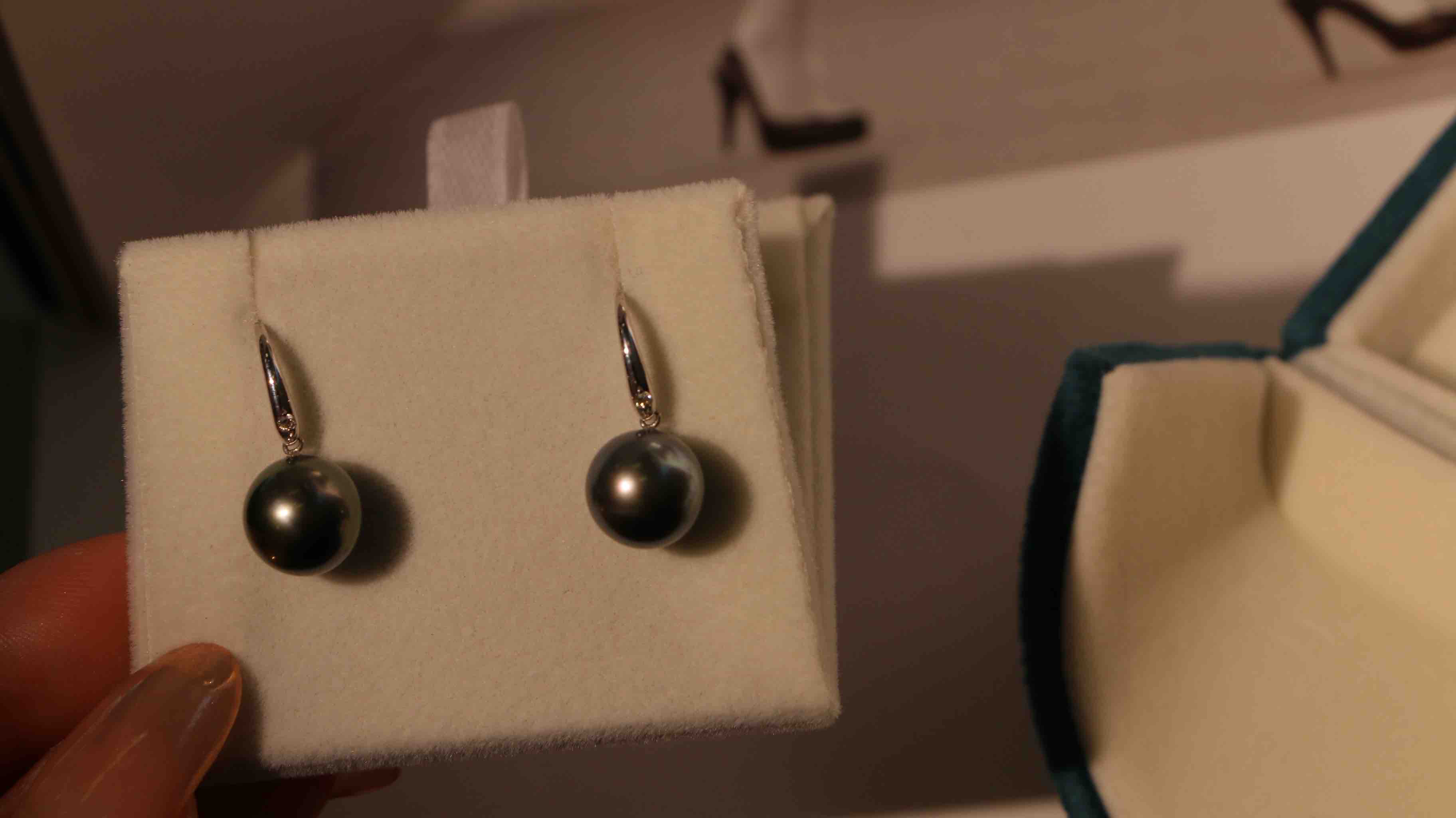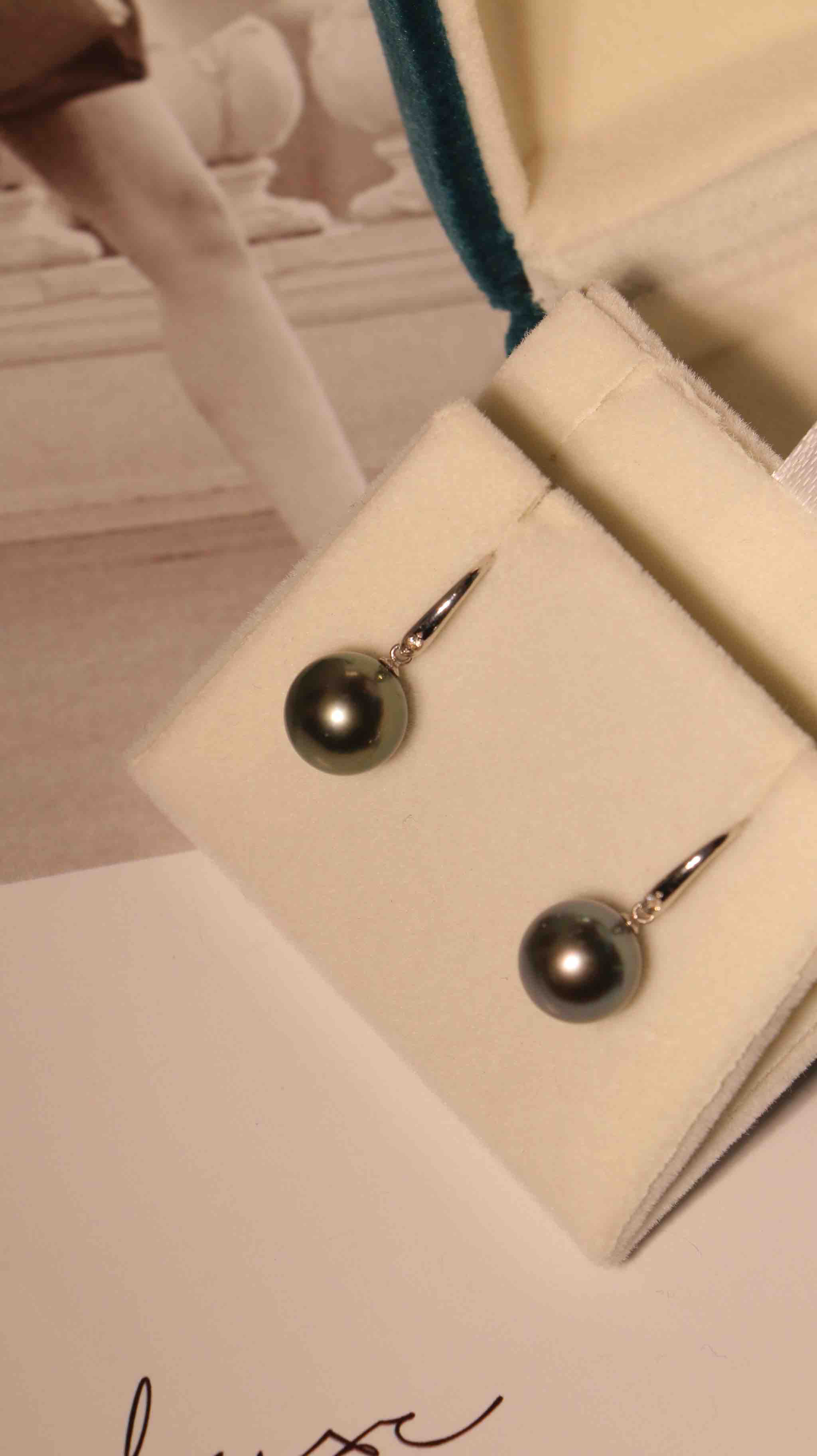 日本成品进口,大溪地黑珍珠耳坠,18k金钻石镶嵌,珠子基本无暇,强光,孔雀绿。喜欢的姐妹来。工艺很漂亮!