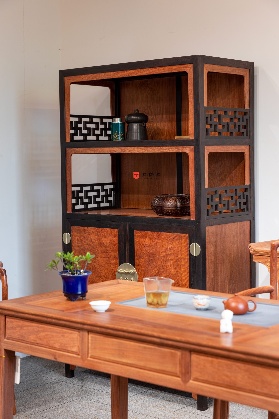 缅花嵌紫光檀亮格柜:此柜原型收录于王世襄《明式家具研究》一书;是英国维多利亚及阿尔伯特博物馆藏款。