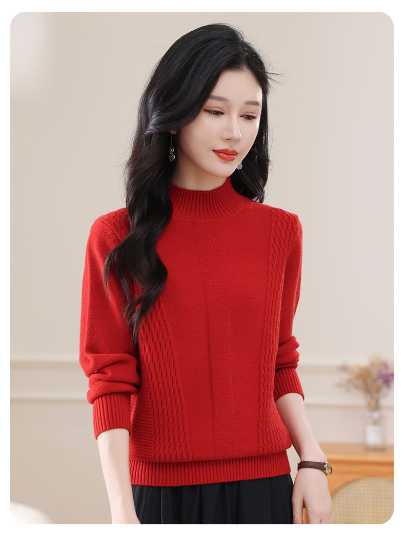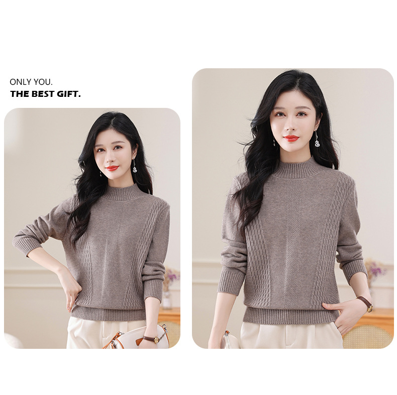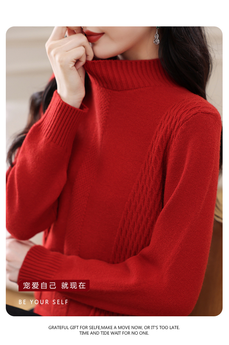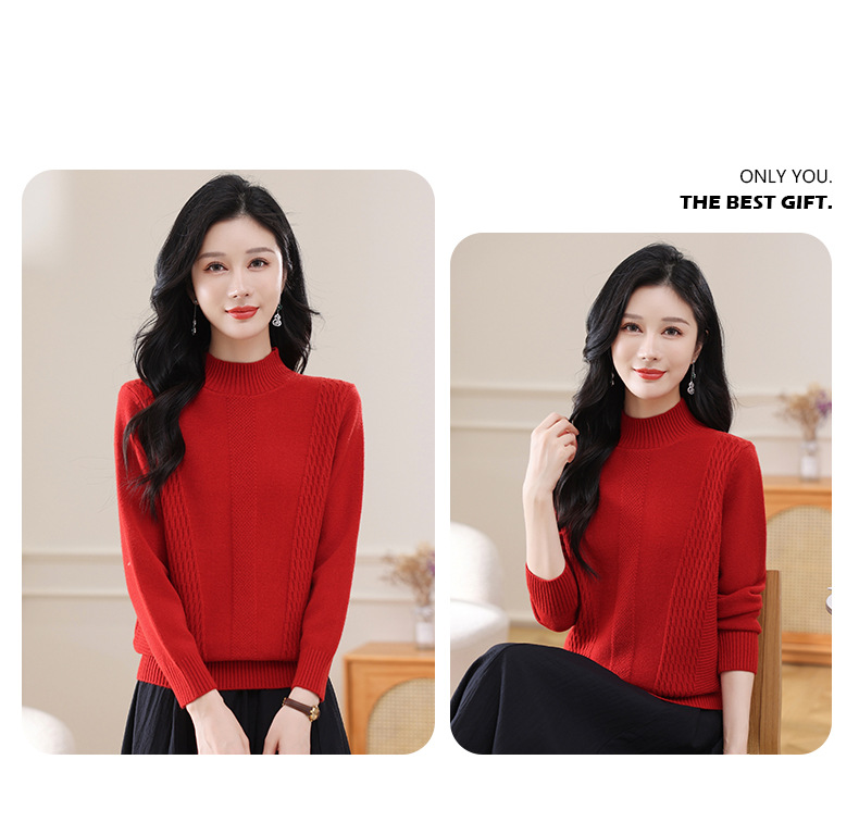 CC-108-1255半高领打底衫女秋冬厚款毛衣2024新款款时尚纯色套头内搭针织衫
