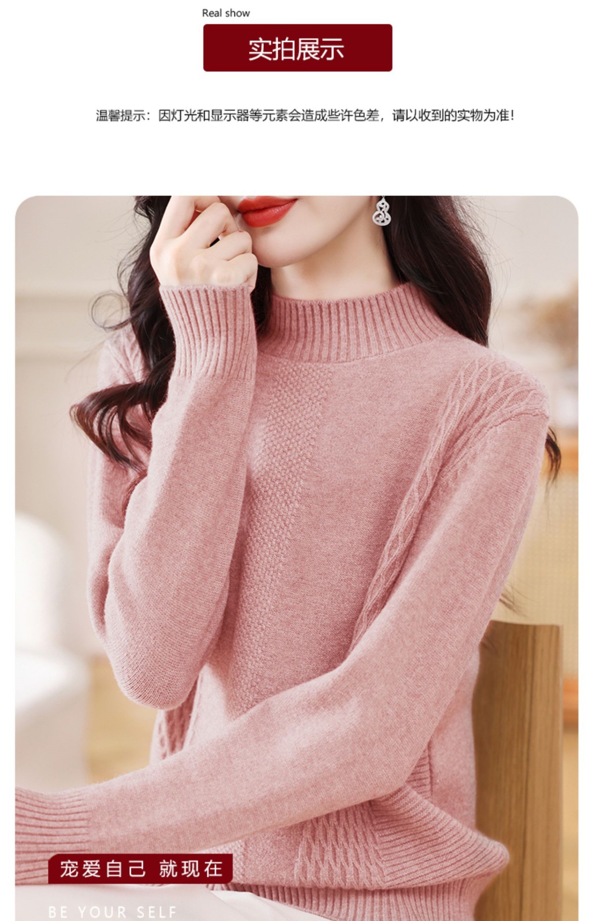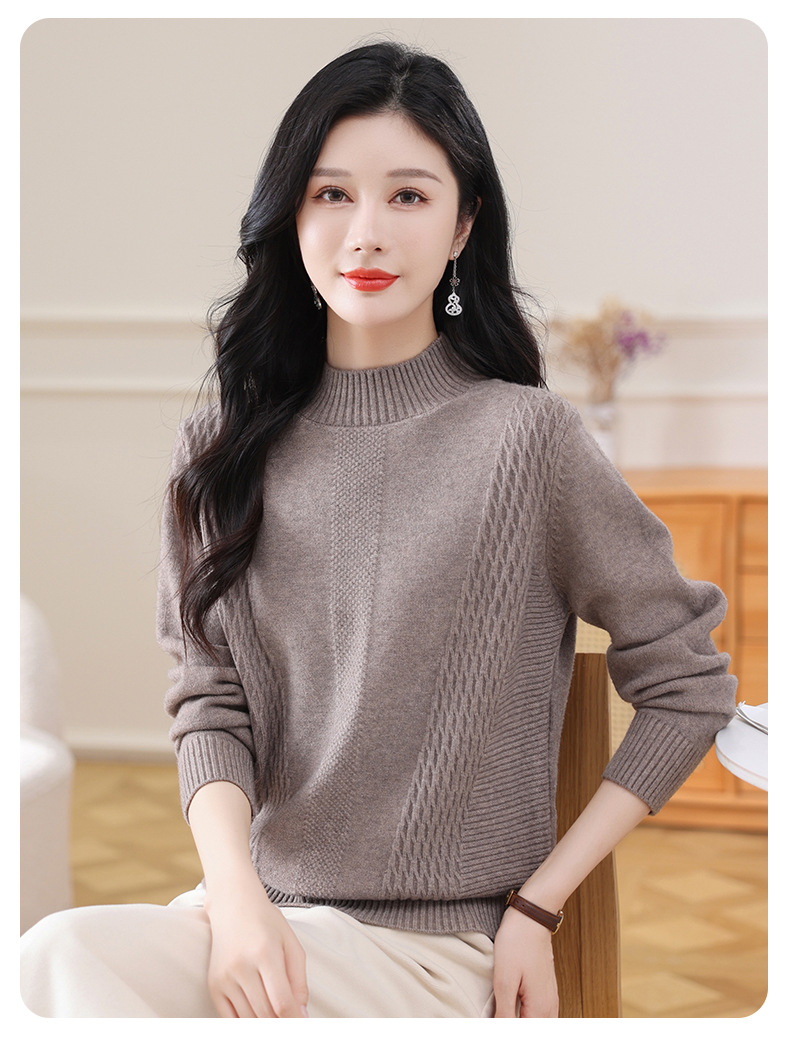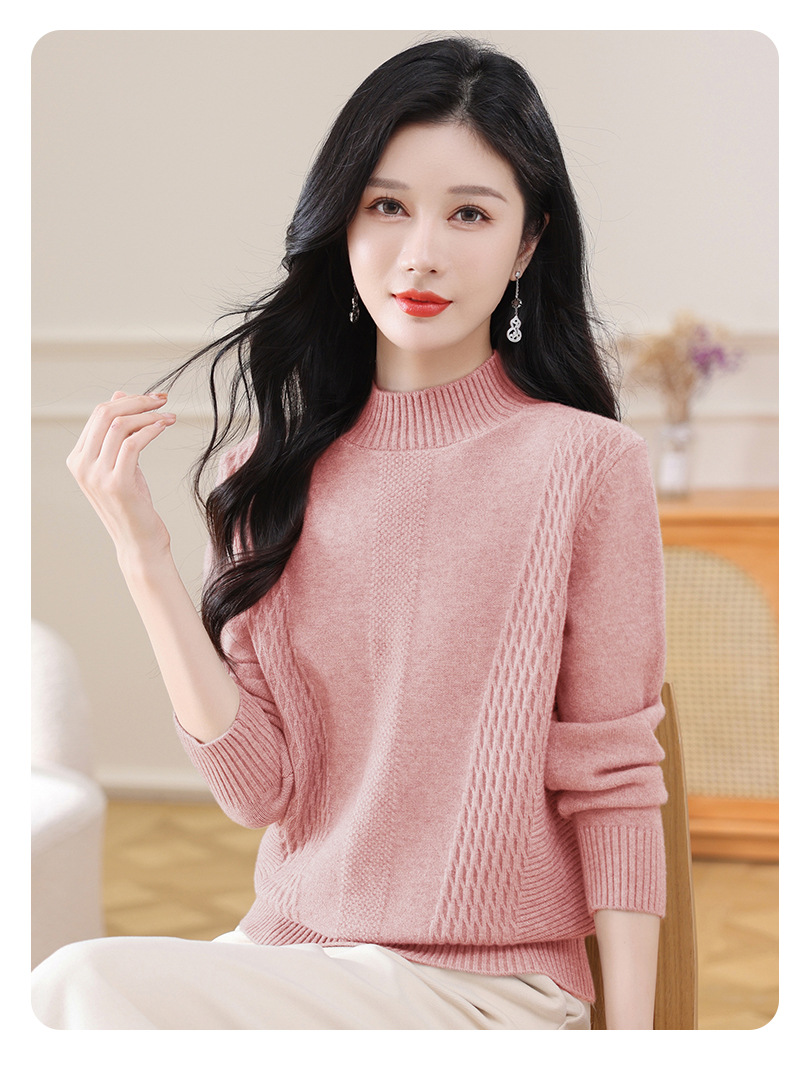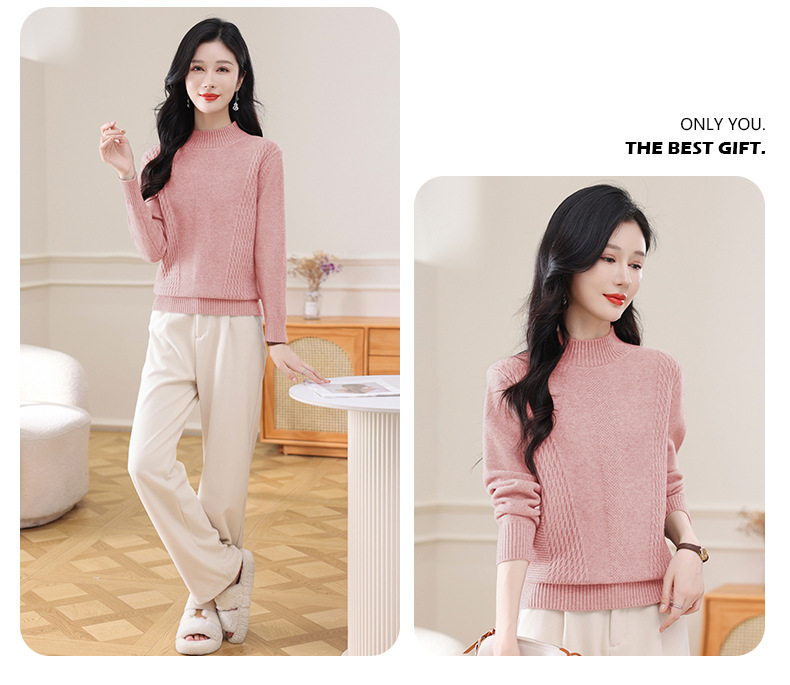 CC-108-1255半高领打底衫女秋冬厚款毛衣2024新款款时尚纯色套头内搭针织衫