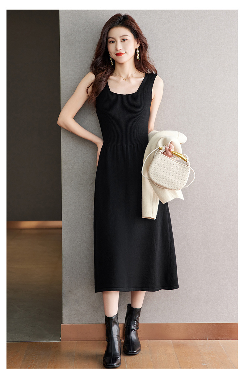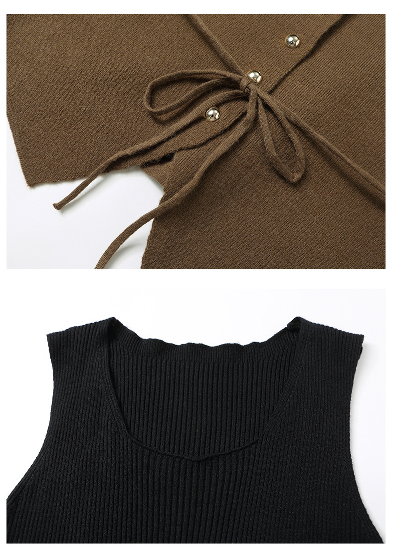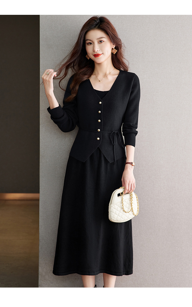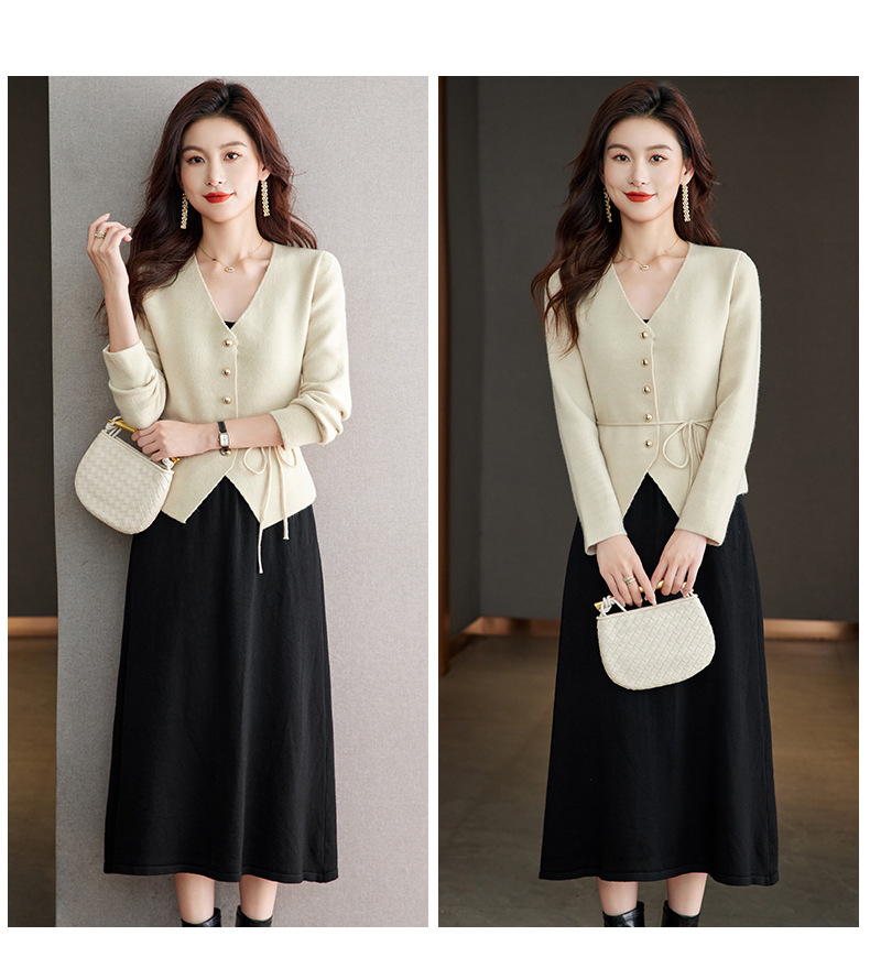 时尚套装V领针织开衫,搭配修身收腰连衣裙两件套CC&22-1307