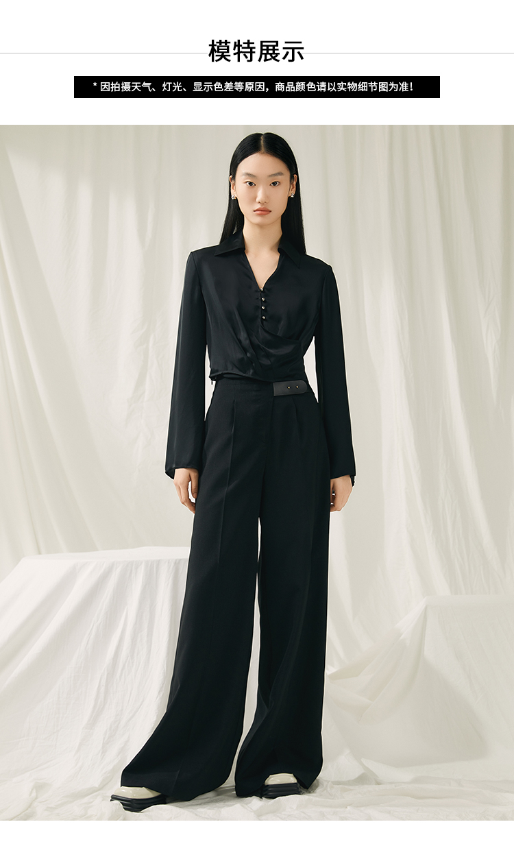VIMAGE纬漫纪夏季新款高腰阔腿裤通勤宽松百搭纯色裤V1905526