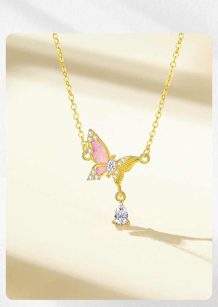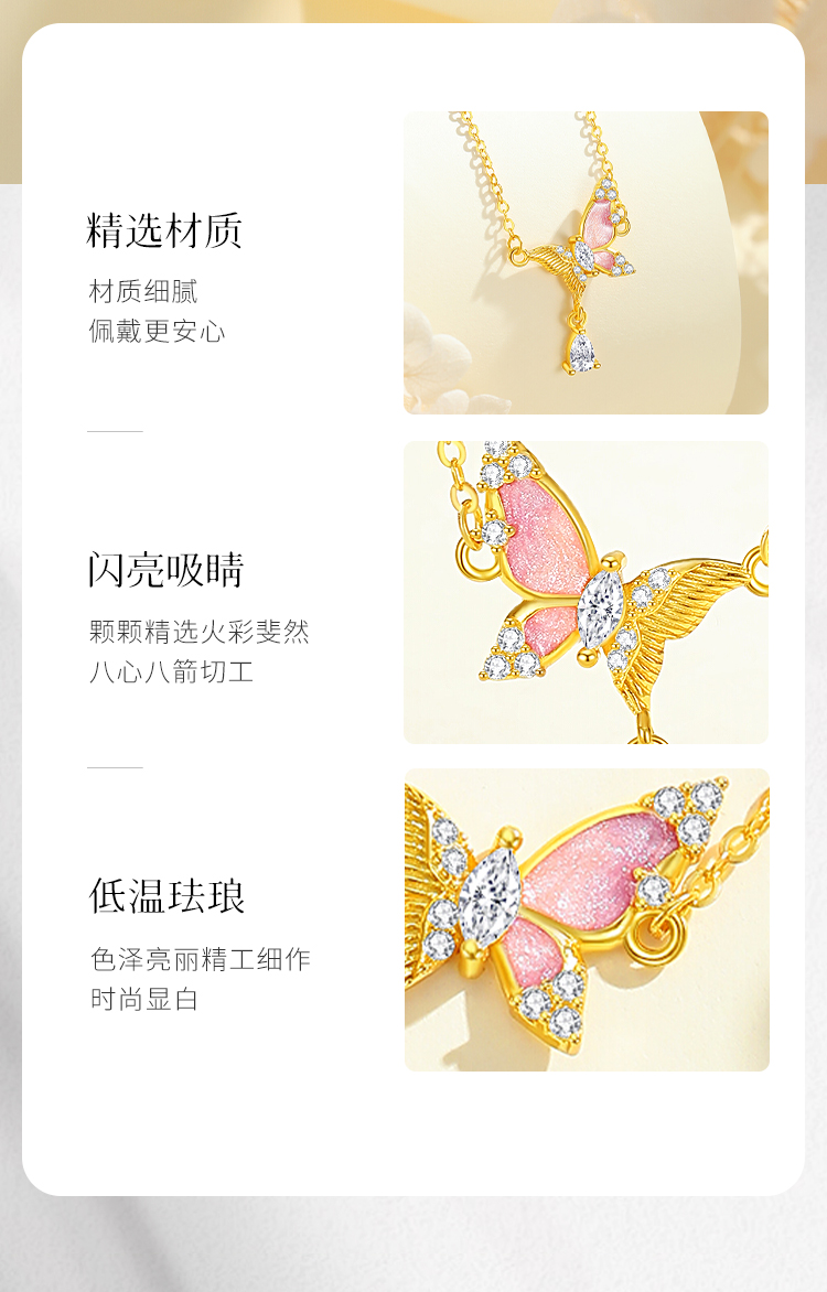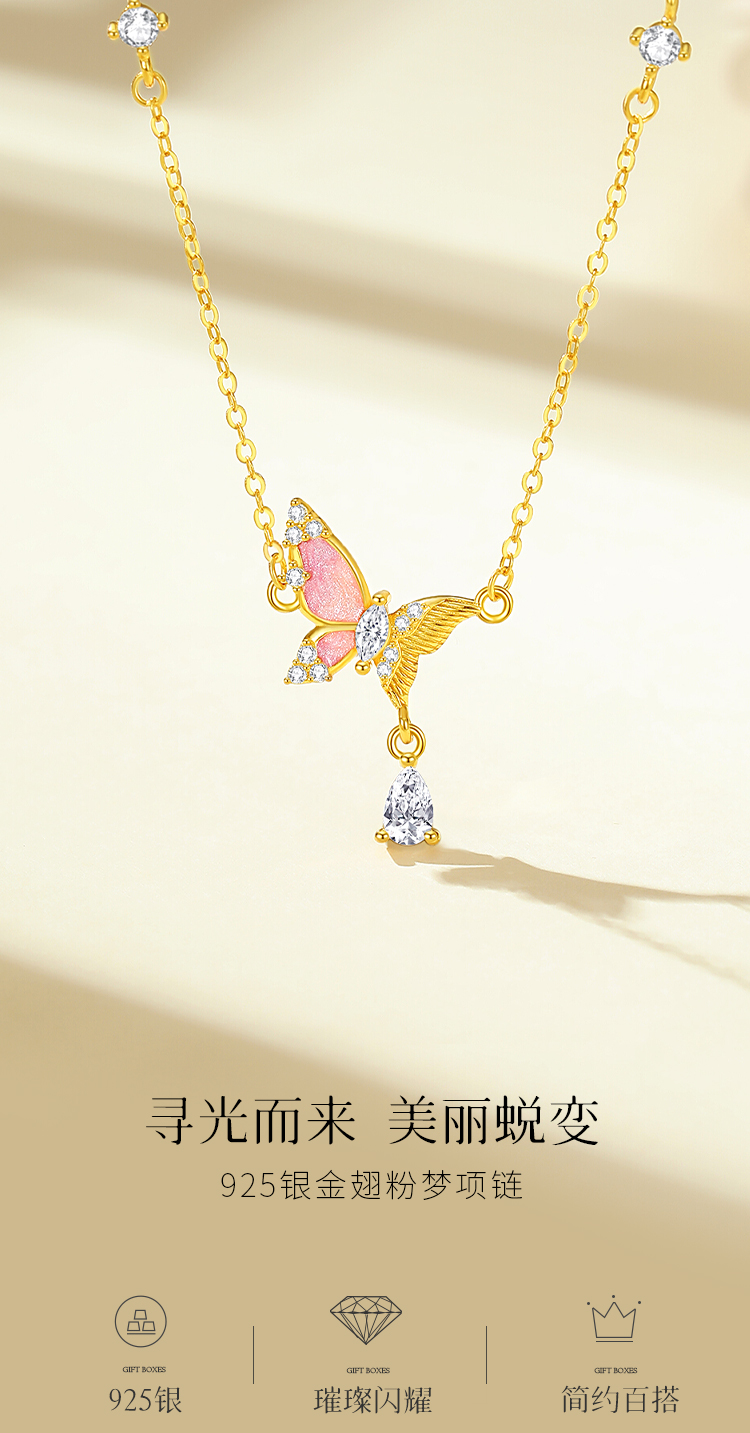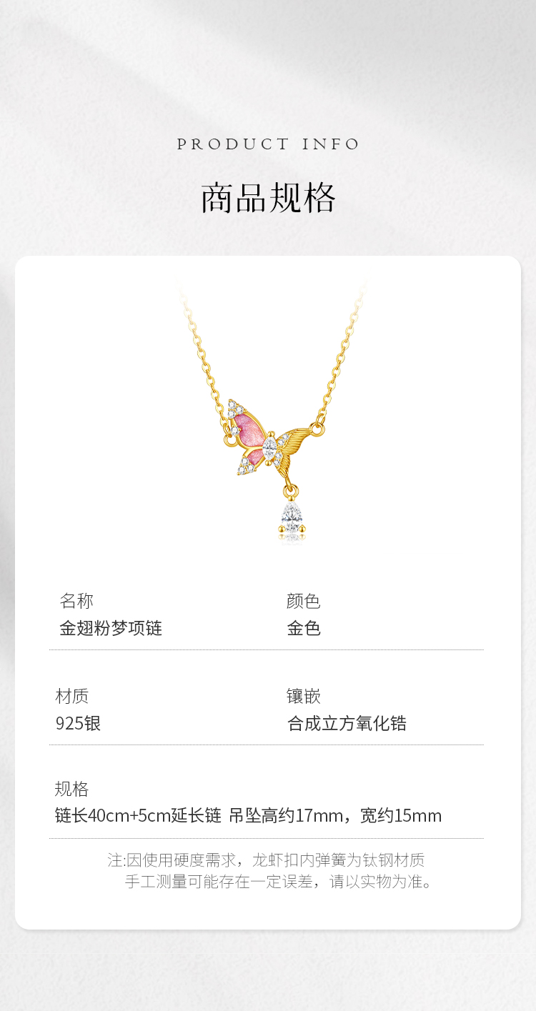 Winy S925银金翅粉梦项链送女朋友/老婆/闺蜜生日节日礼物
