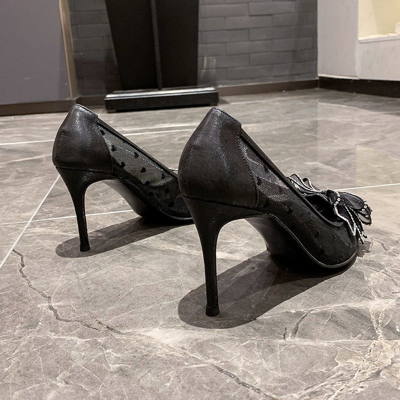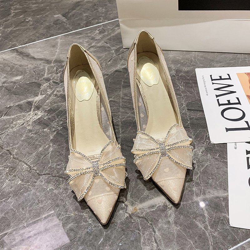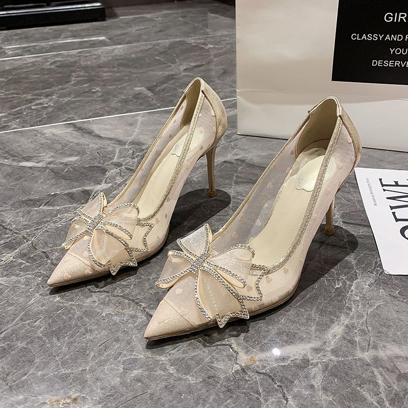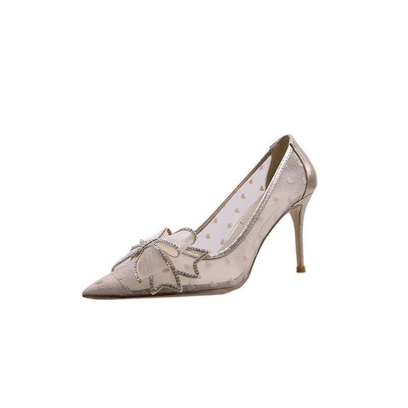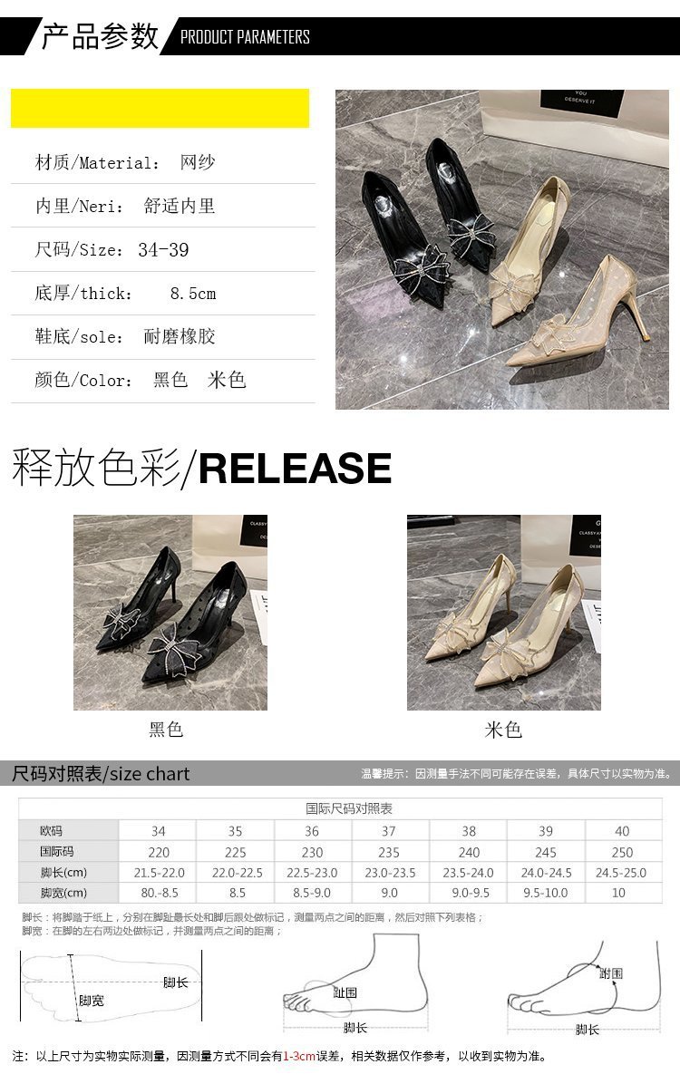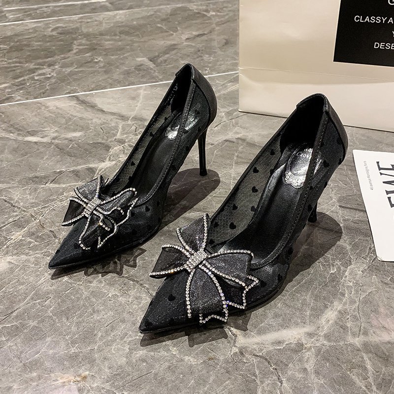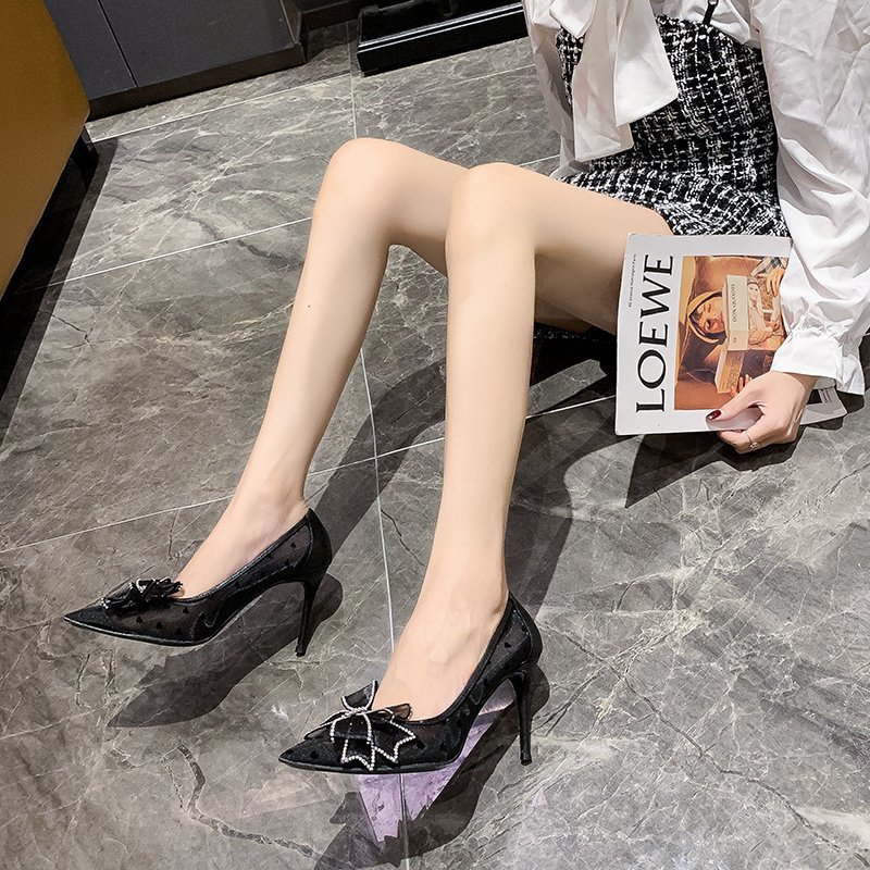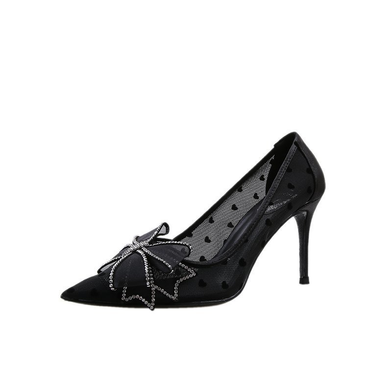 PLDZ-618H水钻蝴蝶结细跟高跟鞋百搭尖头网纱单鞋