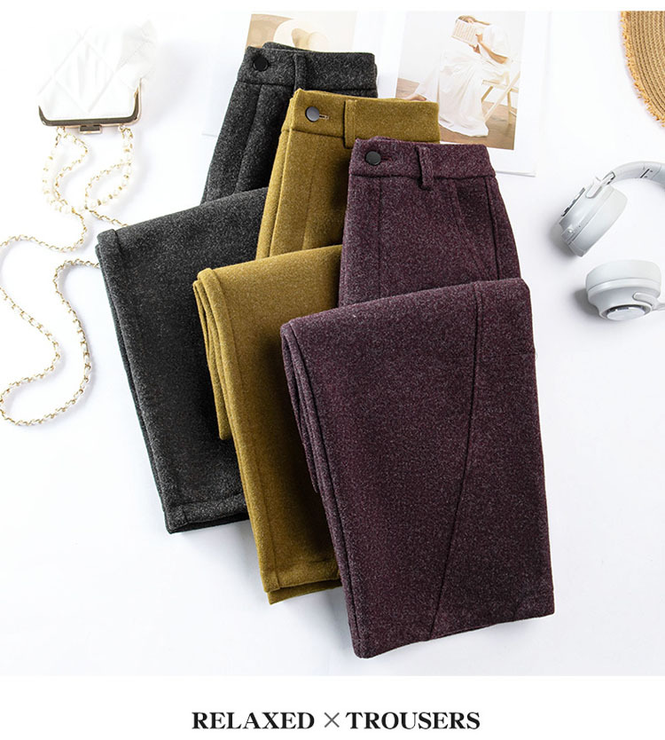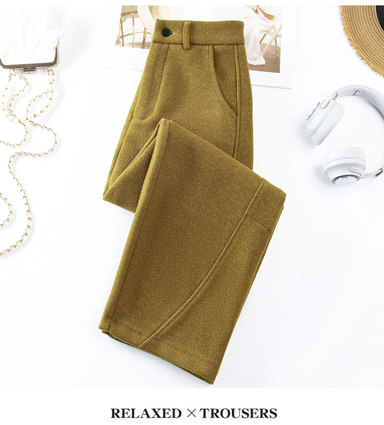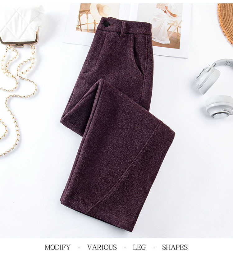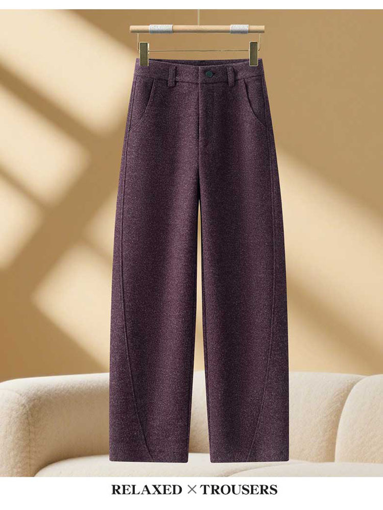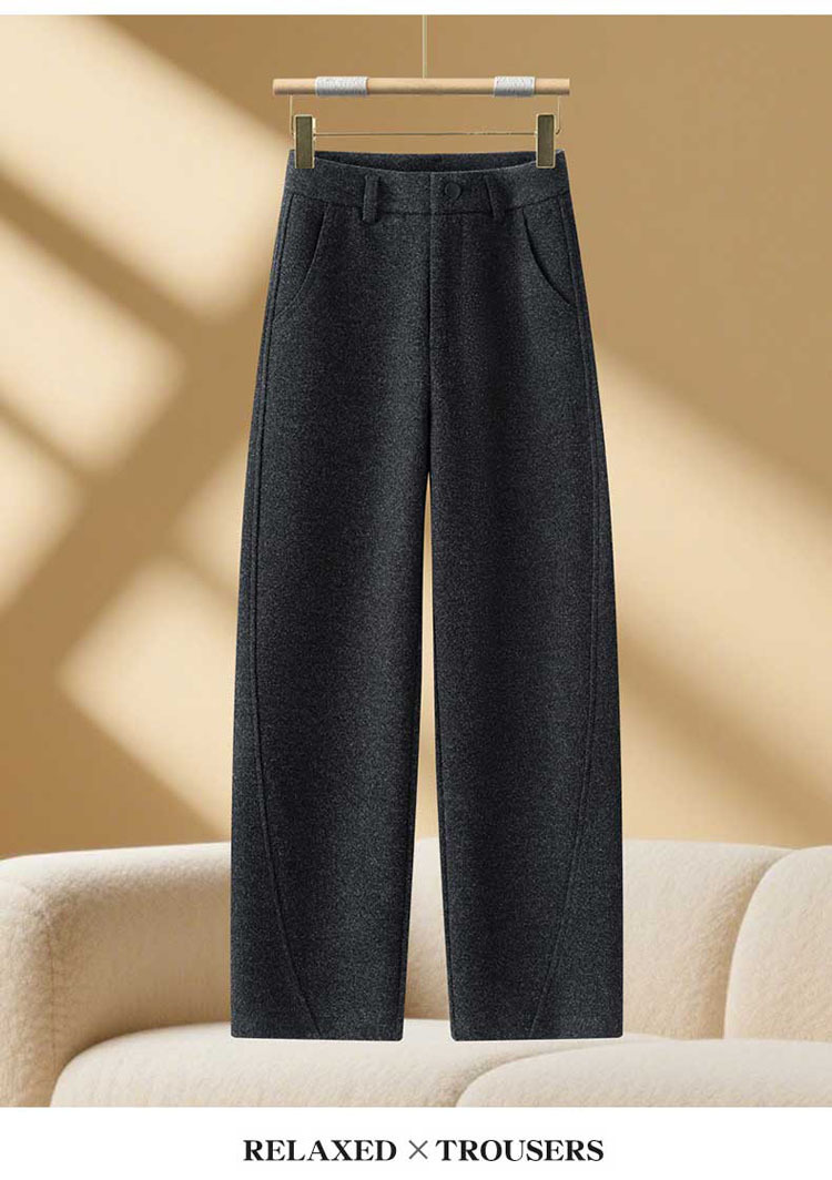 丁摩 羊毛阔腿裤女新款秋冬香蕉镰刀裤弯刀裤冬季加厚毛呢裤子5ZF-2650