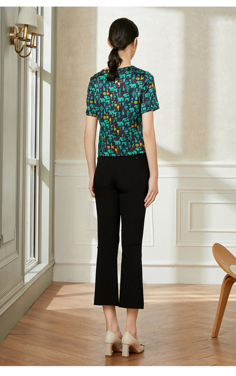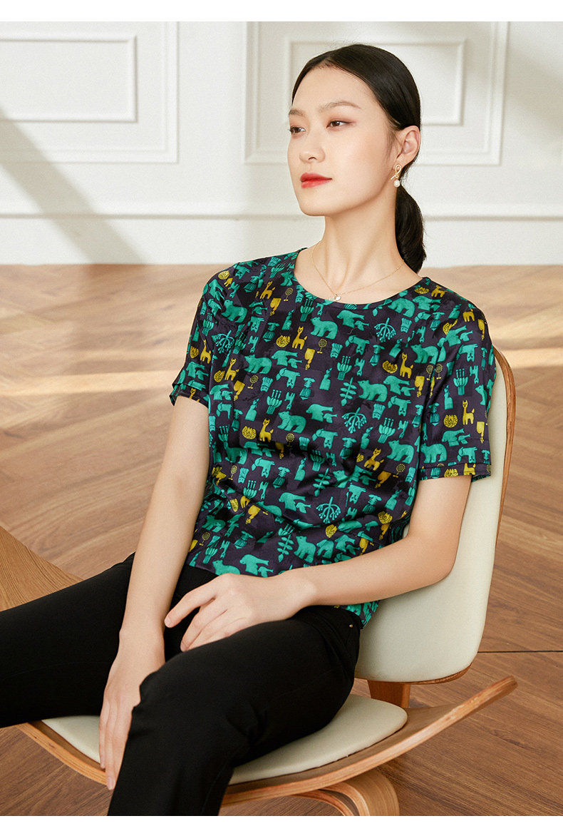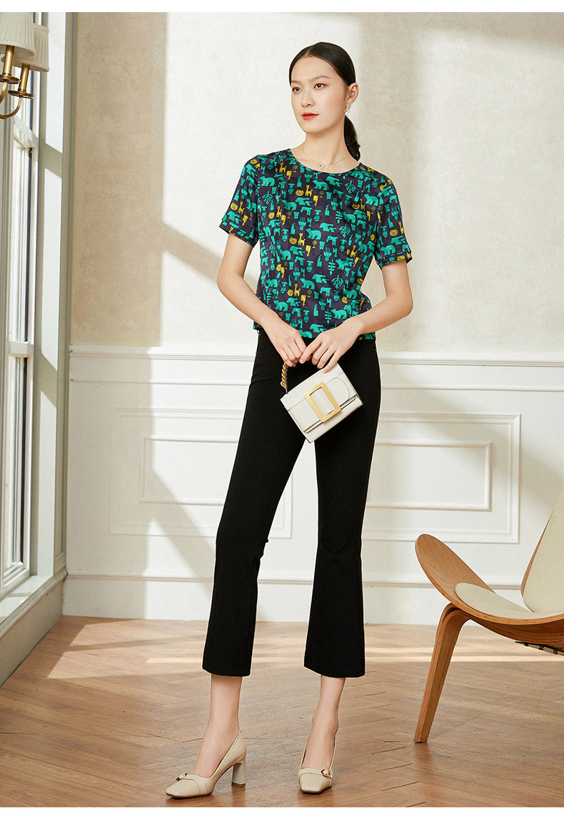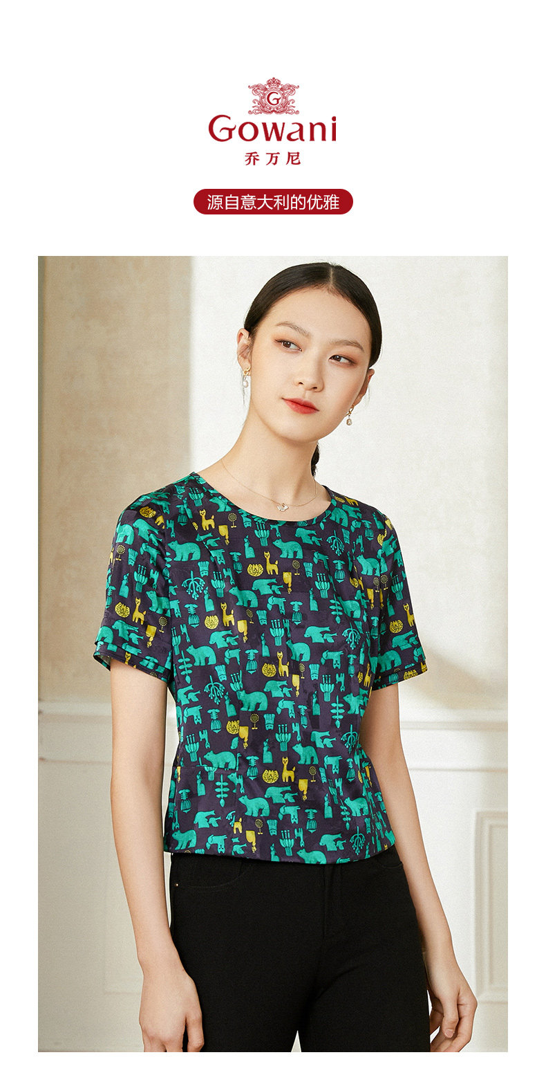 乔万尼新款真丝衬衫女桑蚕丝拼接垂感上衣EI2C742