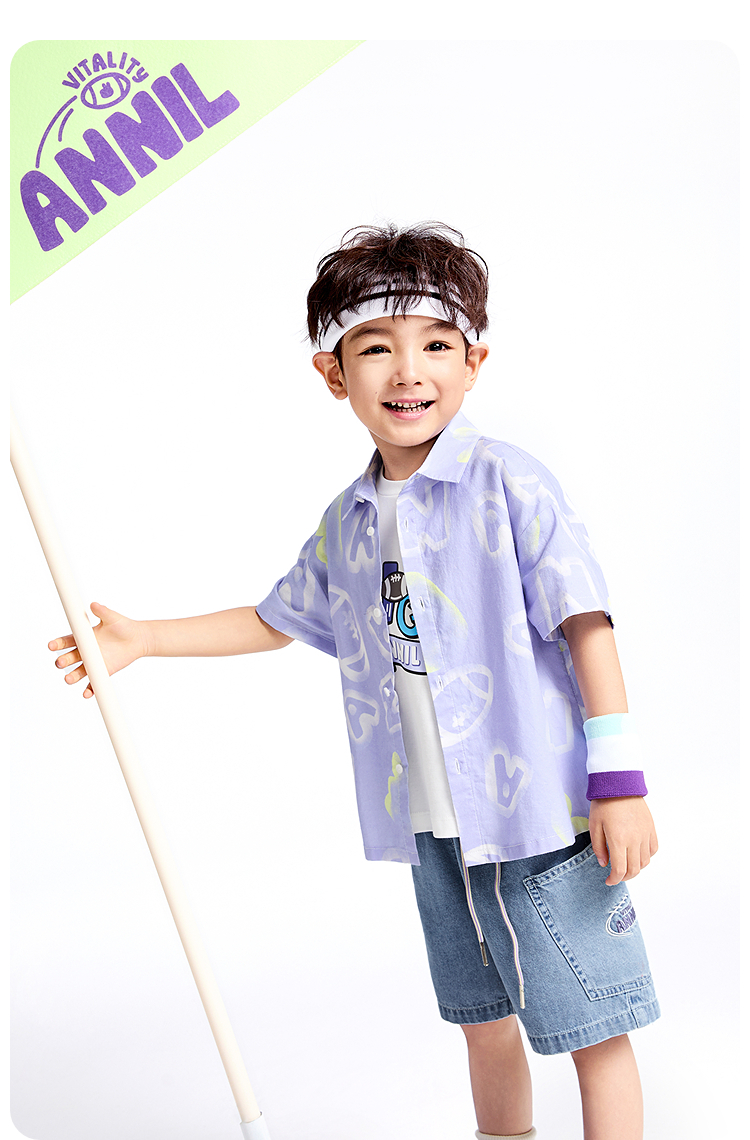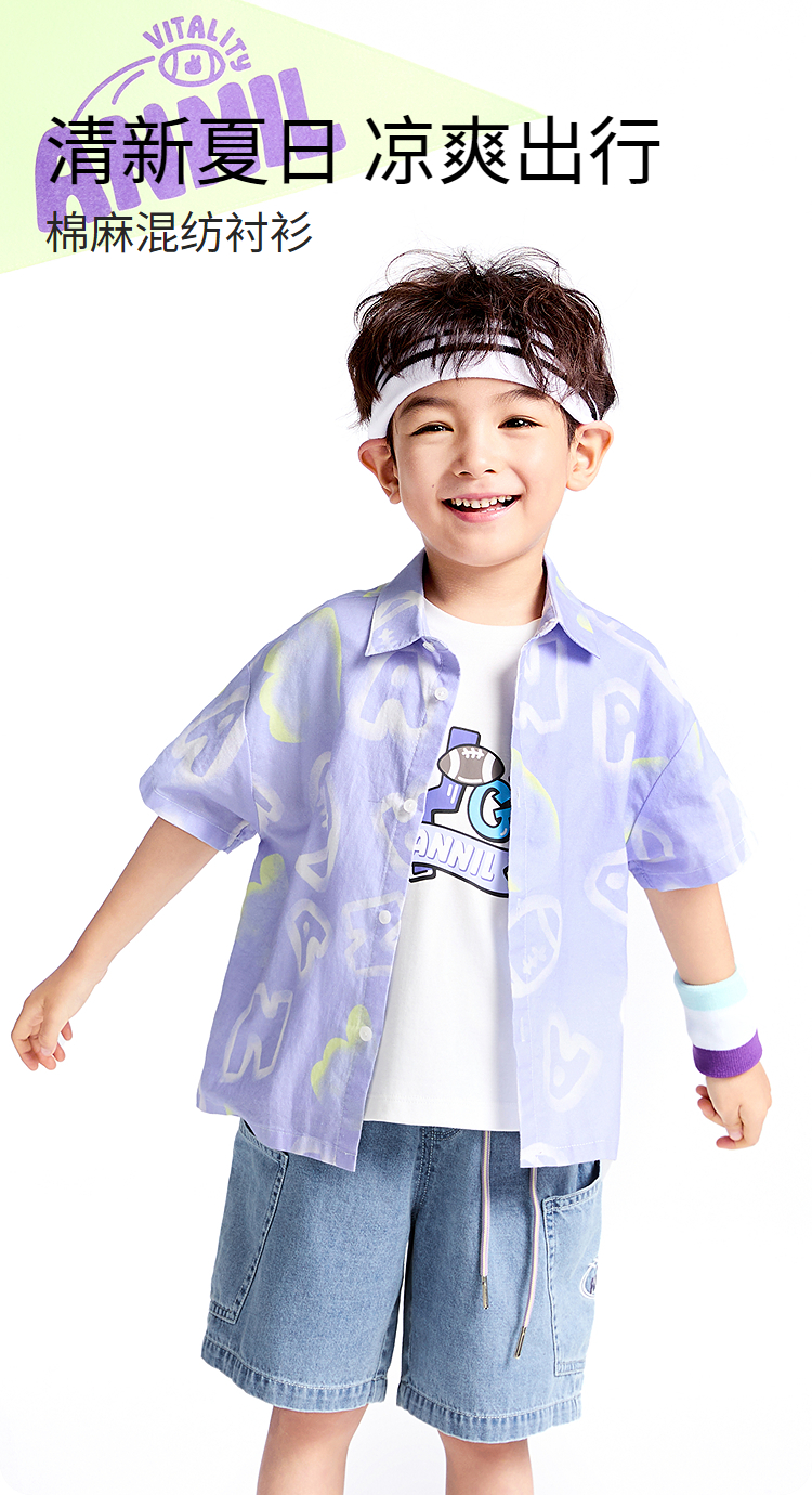 男童翻领短袖上衣夏季新款安奈儿童装实体店同款XB521602
