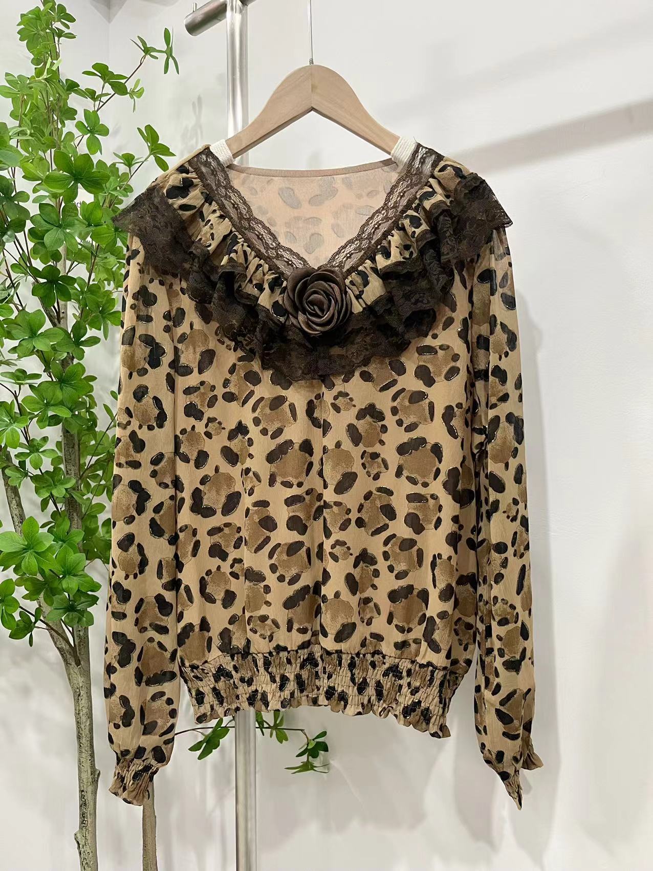 1-豹纹玫瑰收口小衫上衣-喜出