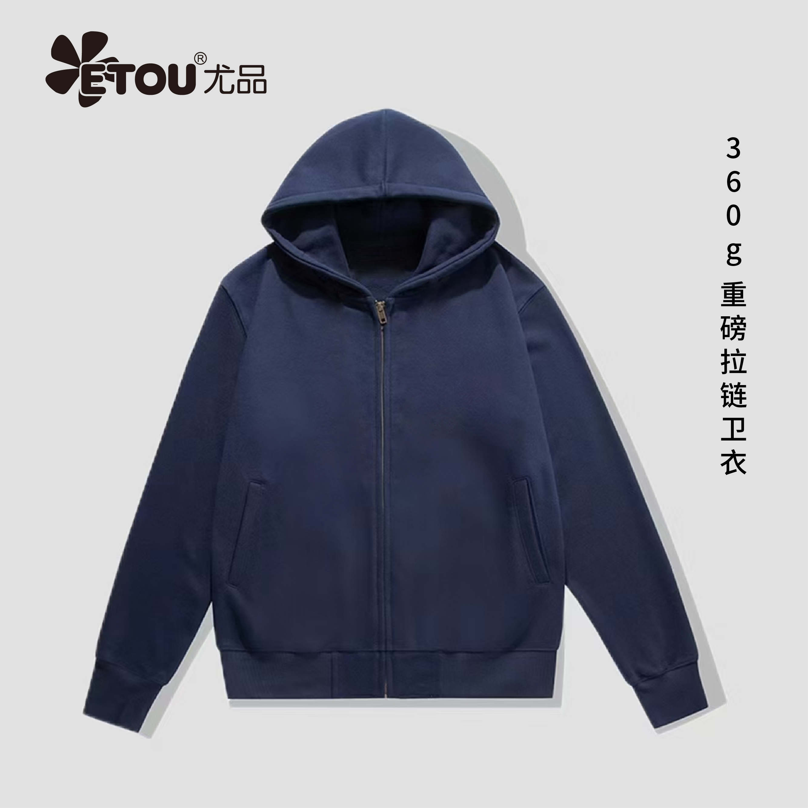 ETOU连帽开衫卫衣男女新款加绒拉链外套