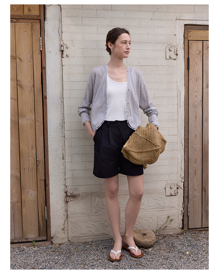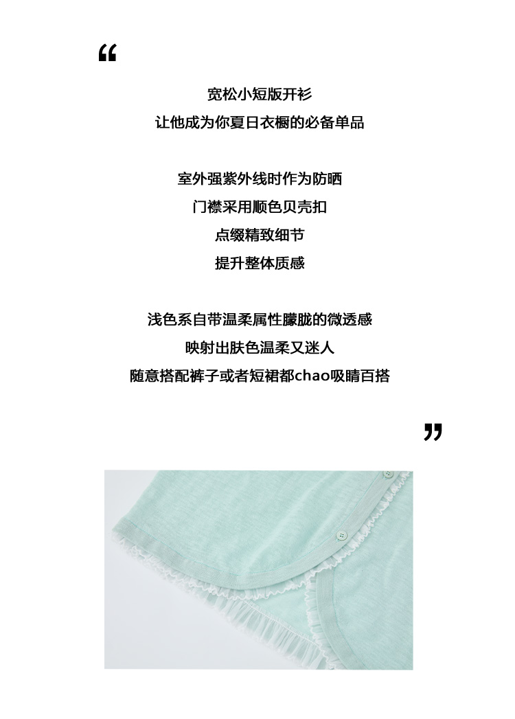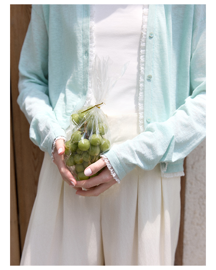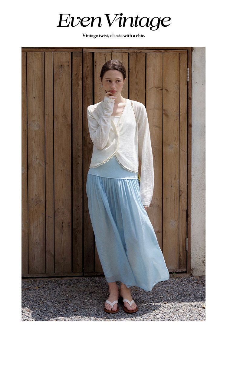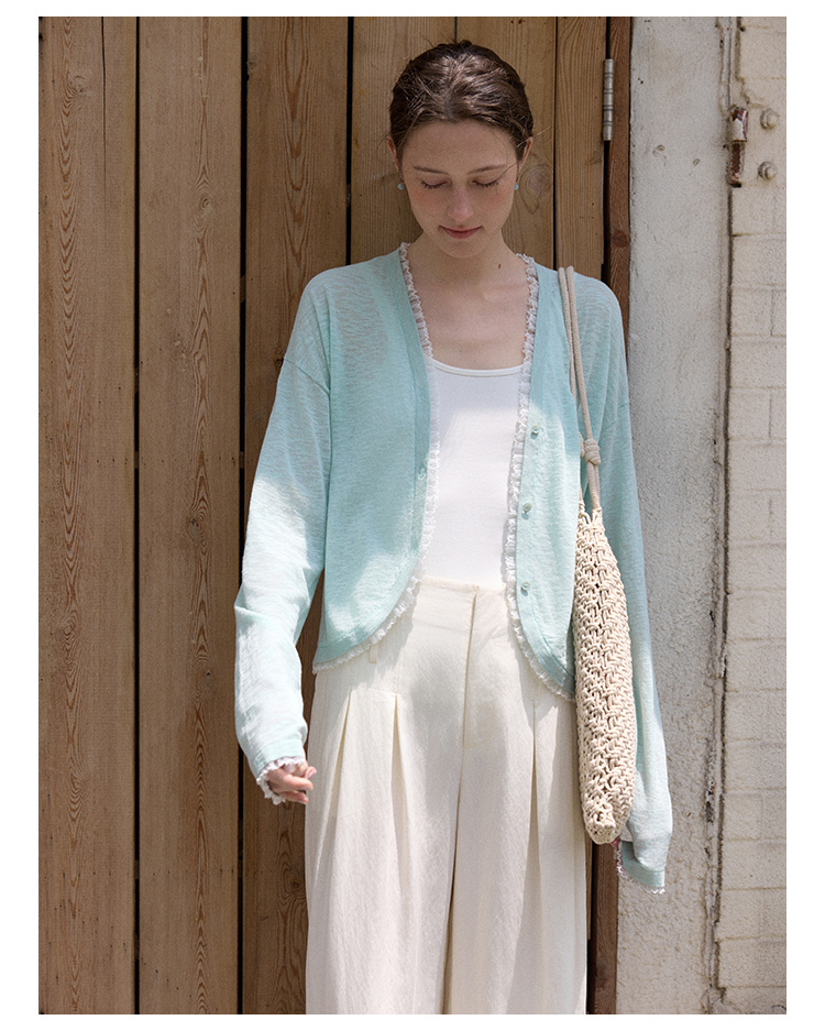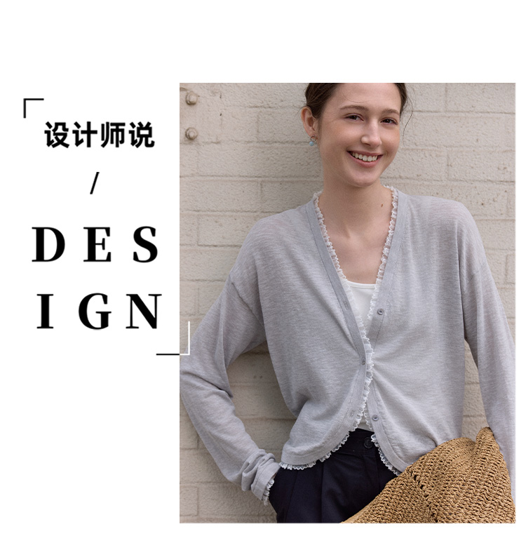 Even Vintage | 棉亚麻混纺 弧形下摆宽松百搭长袖防晒花边开衫