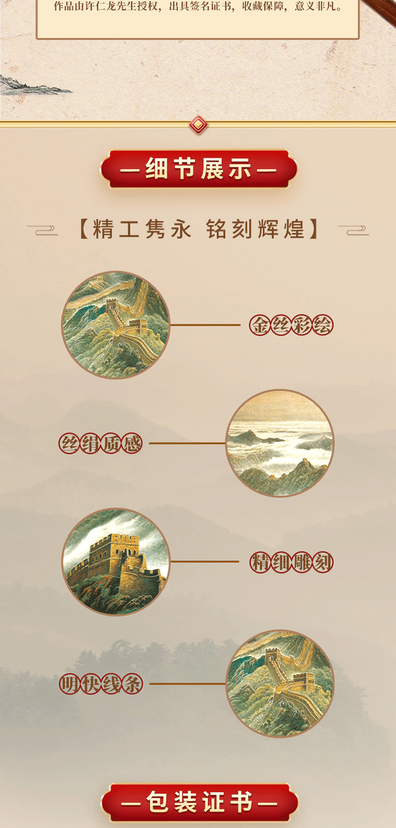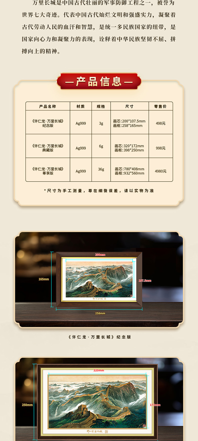 《许仁龙·万里长城》银版画足银999摆件挂画送长辈朋友乔迁礼物