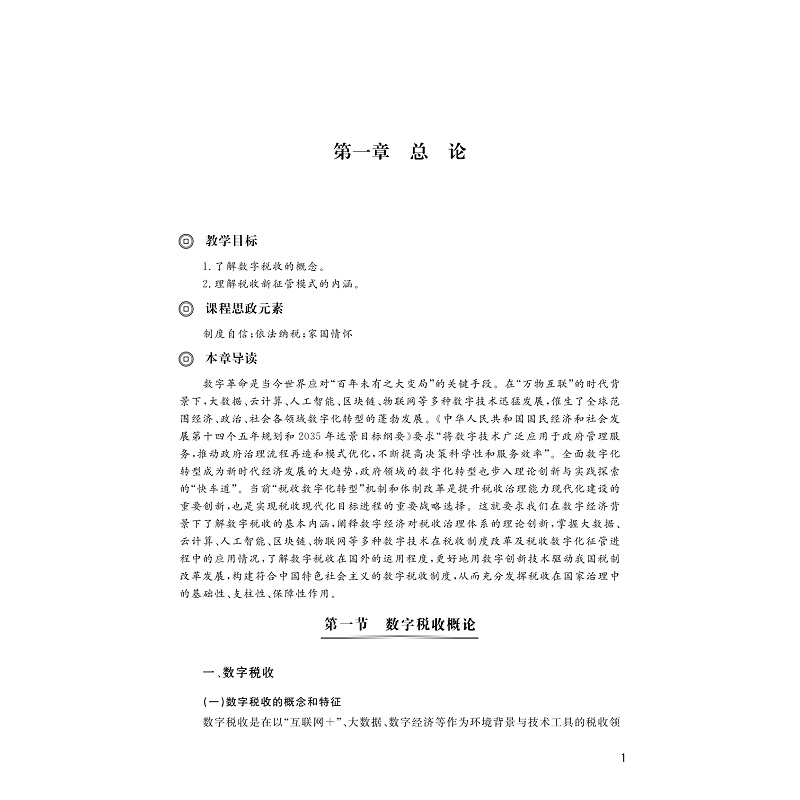 通过本教材的学习,学生将掌握税收的基本理论,了解我国税收数字化的发展历史,熟悉新时代科学技术在税收征管领域的应用,同时结合实践,掌握国内国外的税收理论发展和征收管理方法,增强依法治税、税收法治观念。