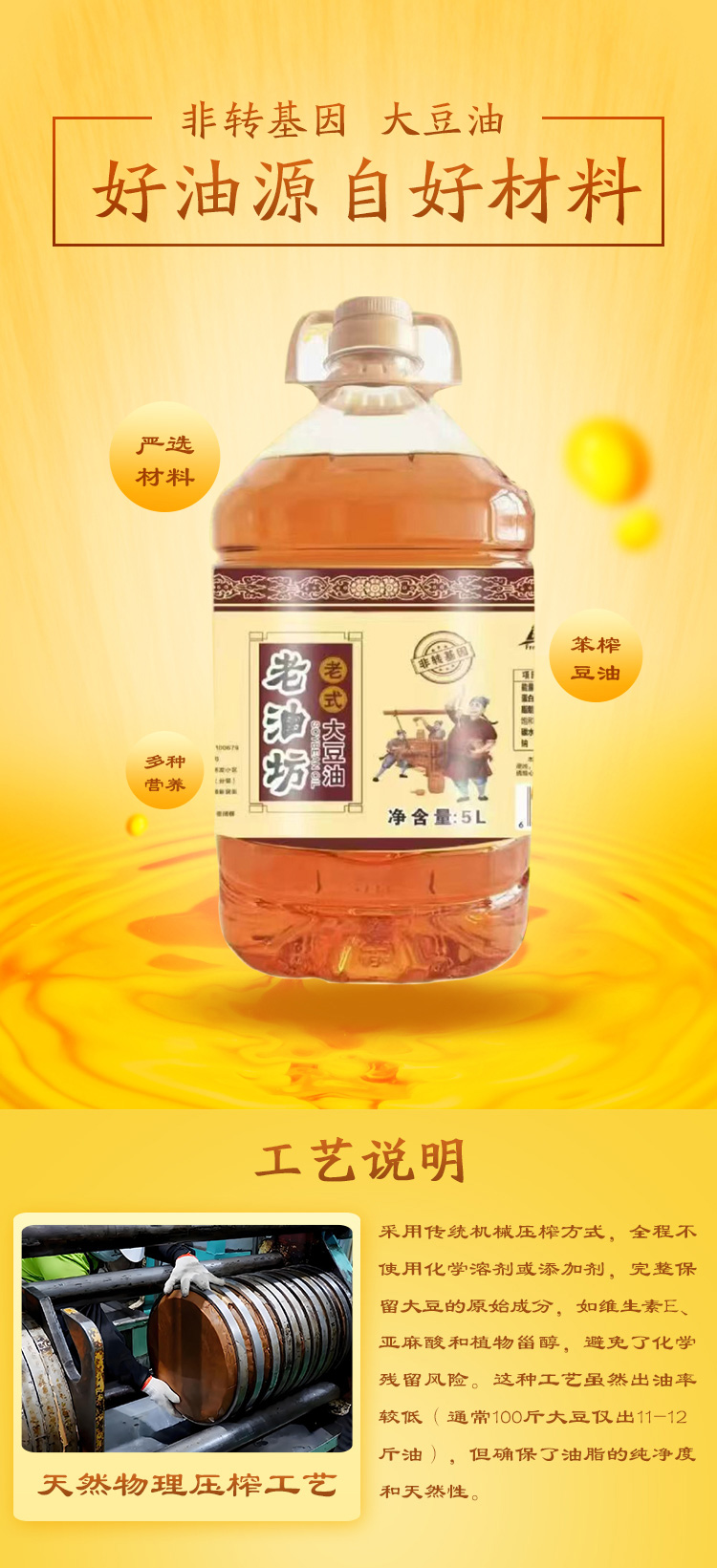 【起源于宋朝 非遗物理压榨】龙江东东老油坊的老式笨榨豆油5L