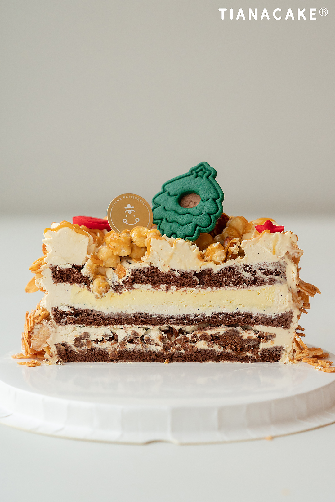 特调焦糖咸奶油、自制坚果榛子薄脆、慢炒焦糖榛子、慢炒焦糖杏仁、香草烤布蕾、焦糖烤杏仁脆片、手煮焦糖酱、法芙娜巧克力戚风、黄油饼干