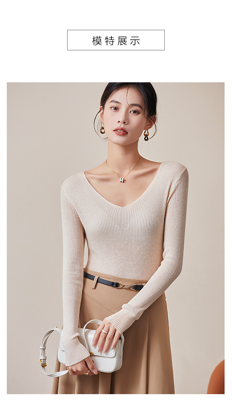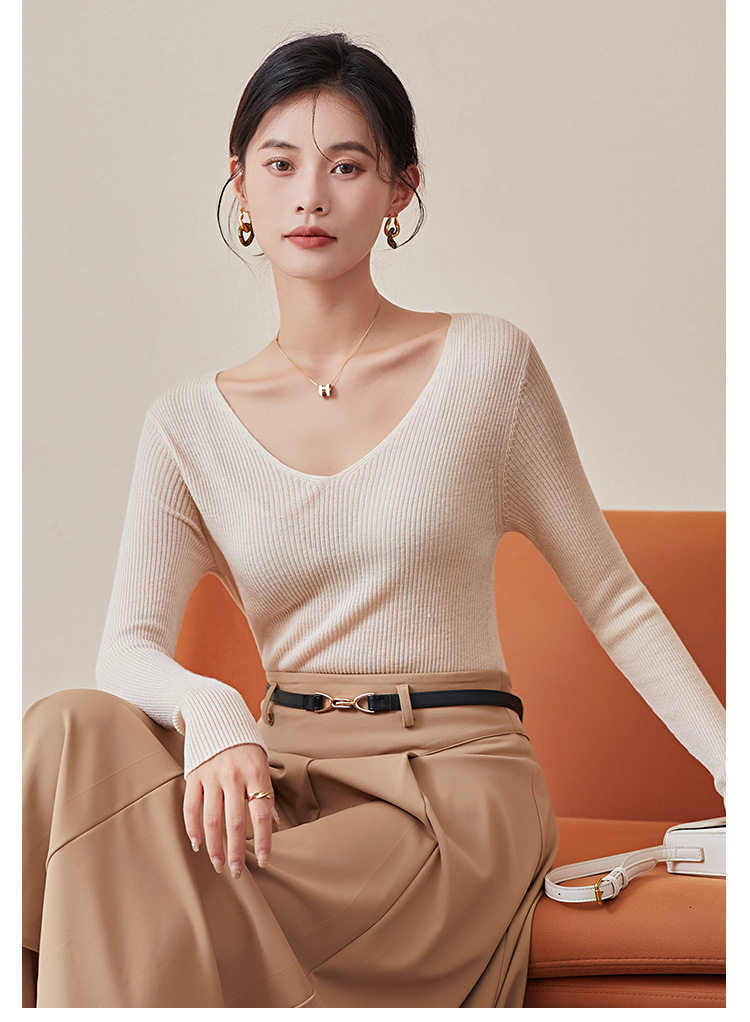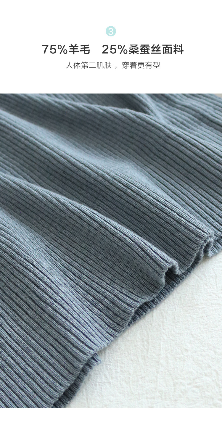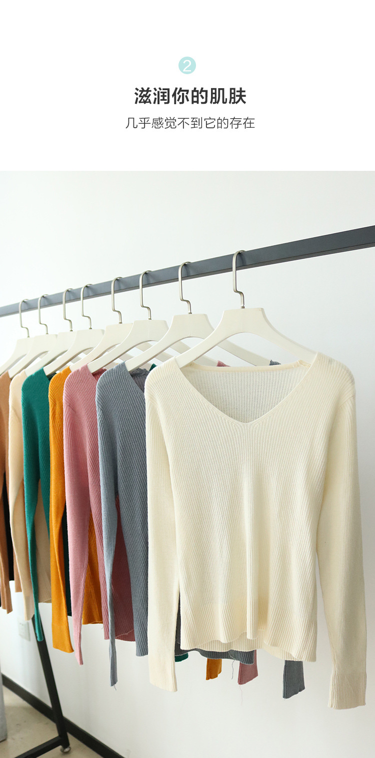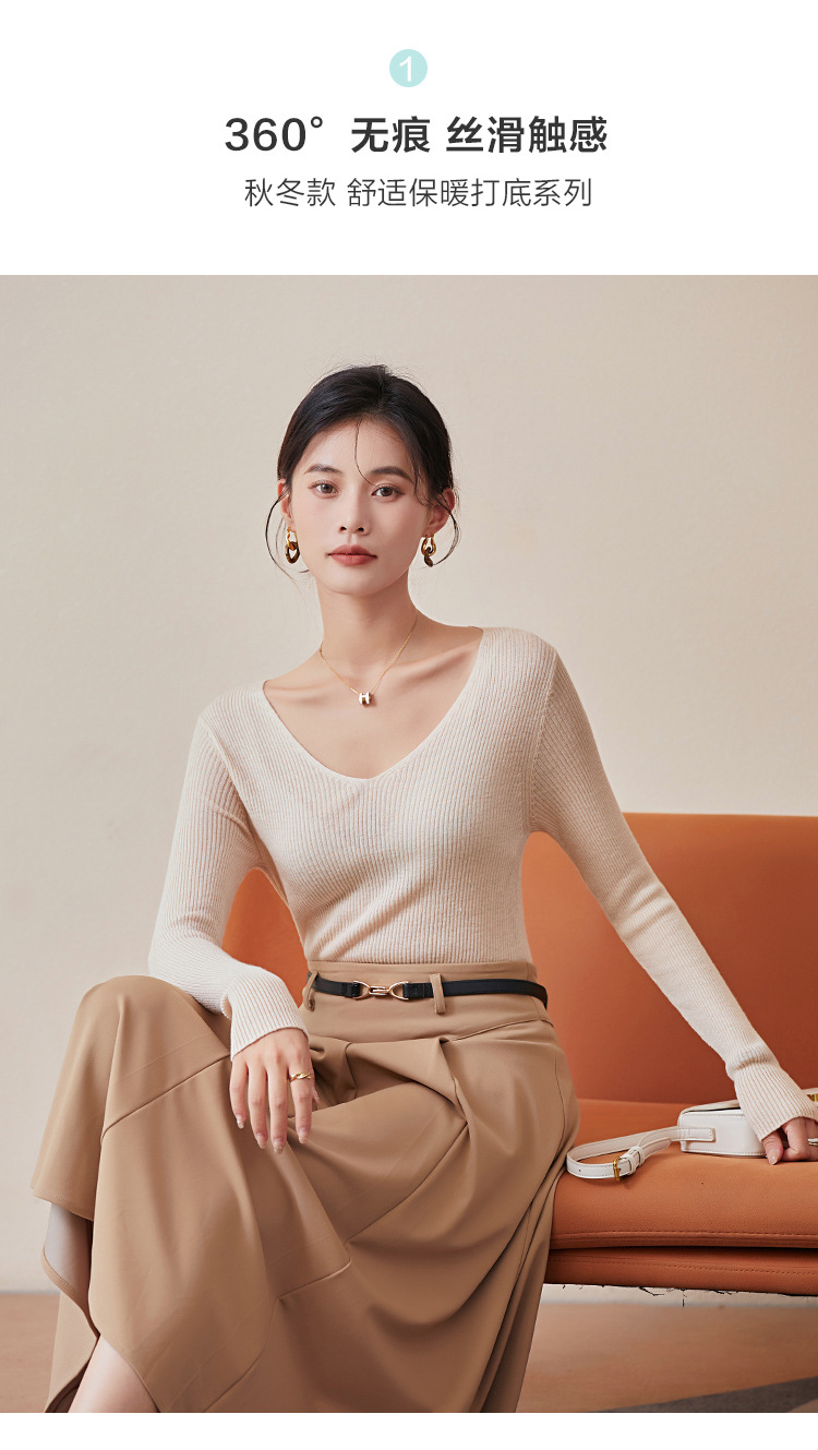TG-03S199秋冬真丝羊毛V领女长袖打底衫 百搭纯色弹力桑蚕丝t恤女上衣