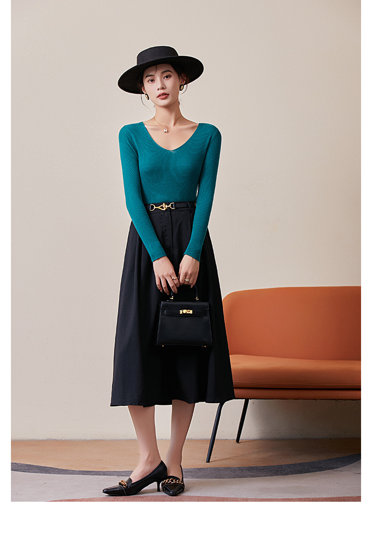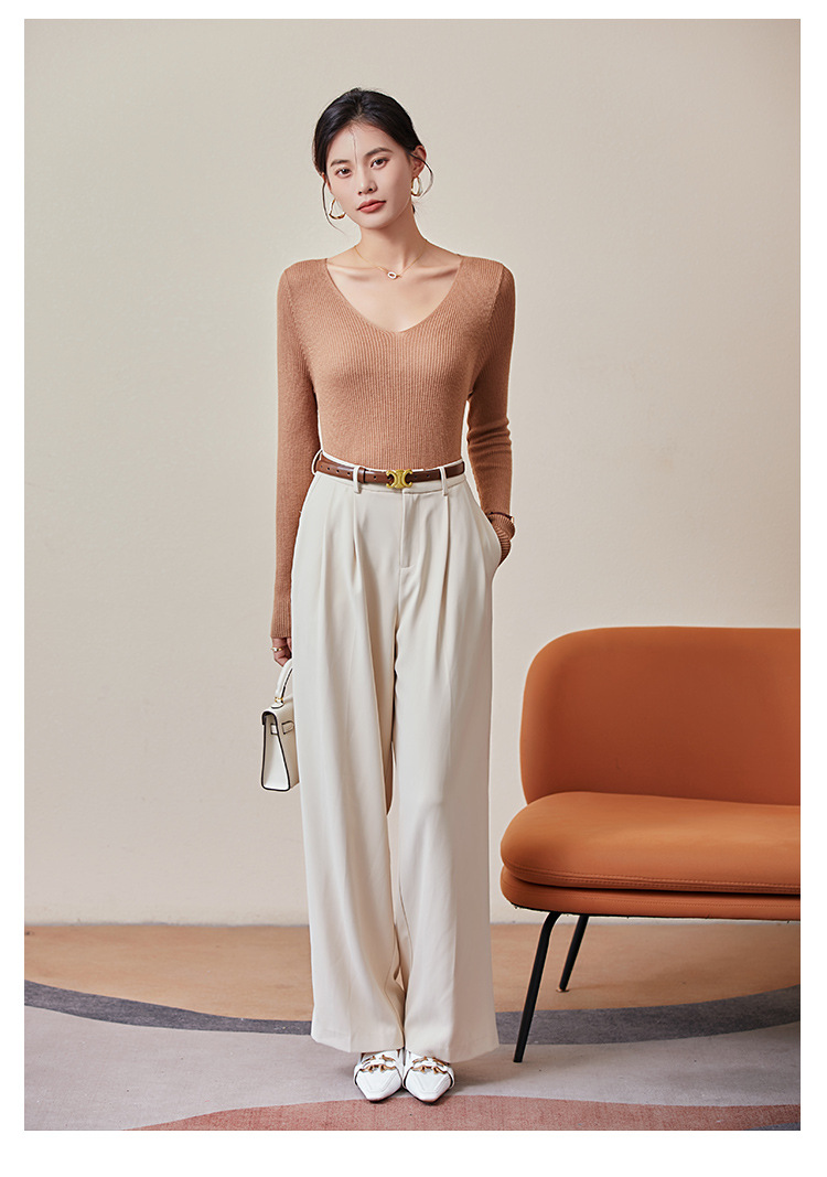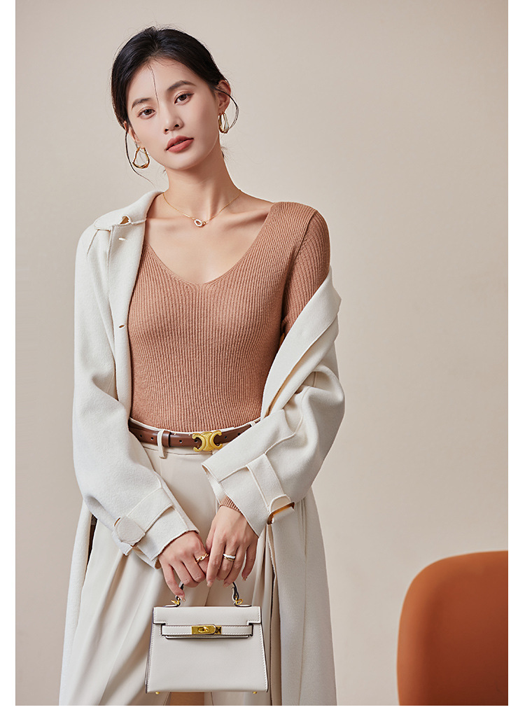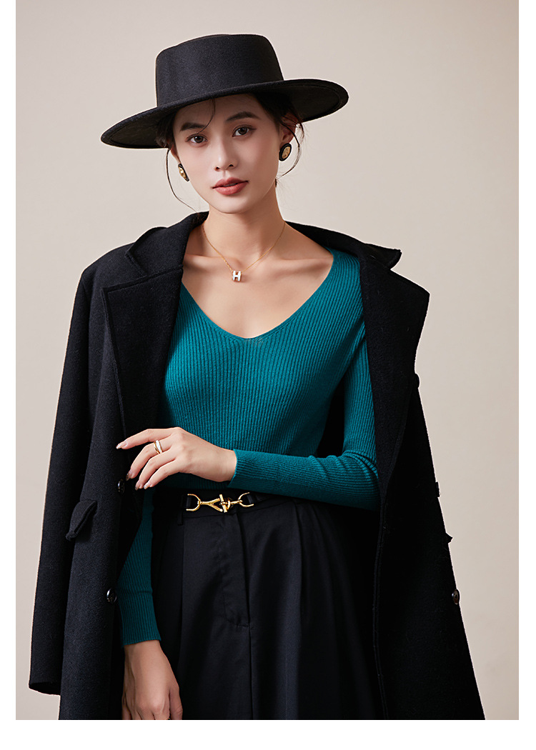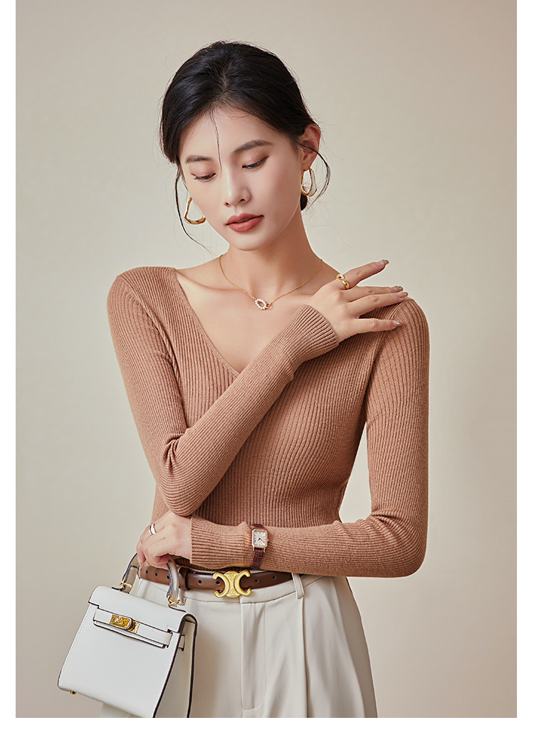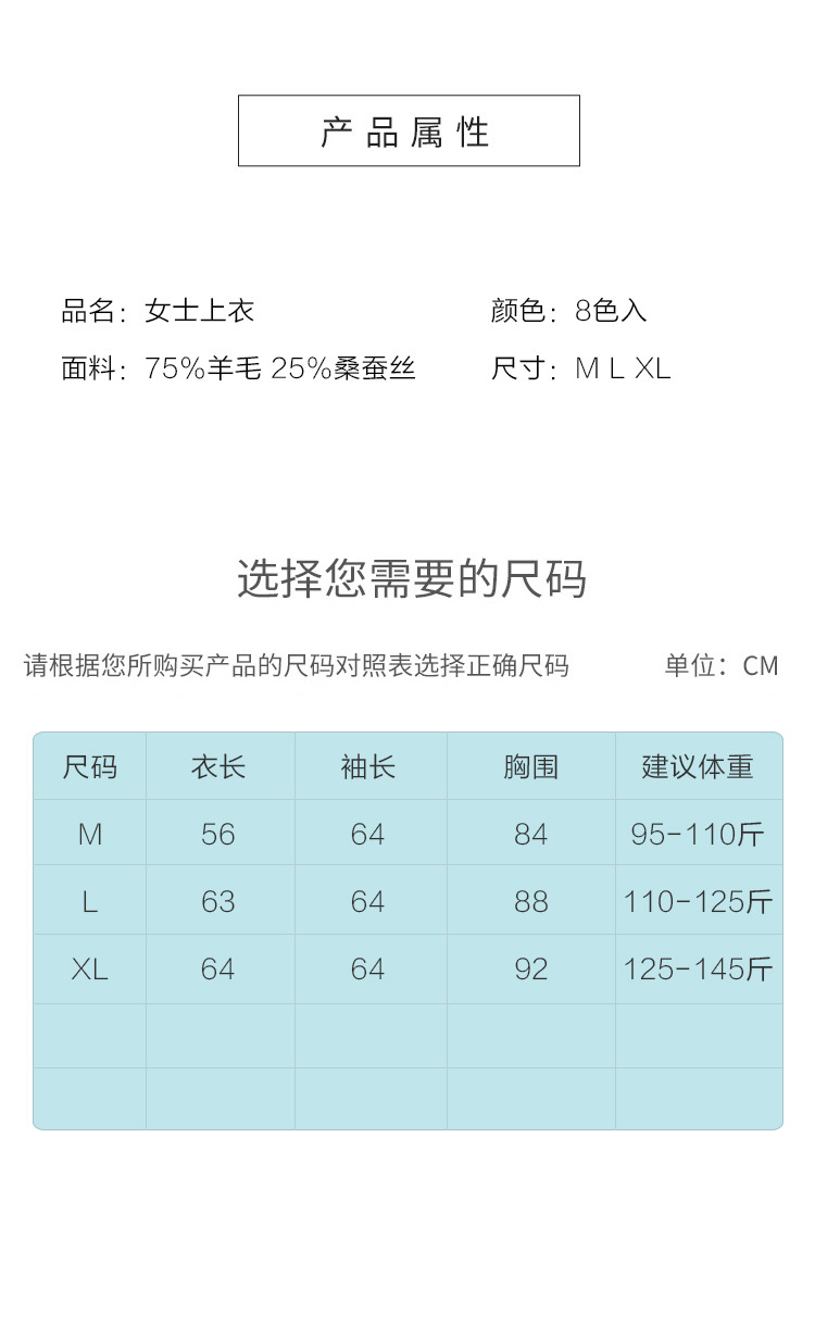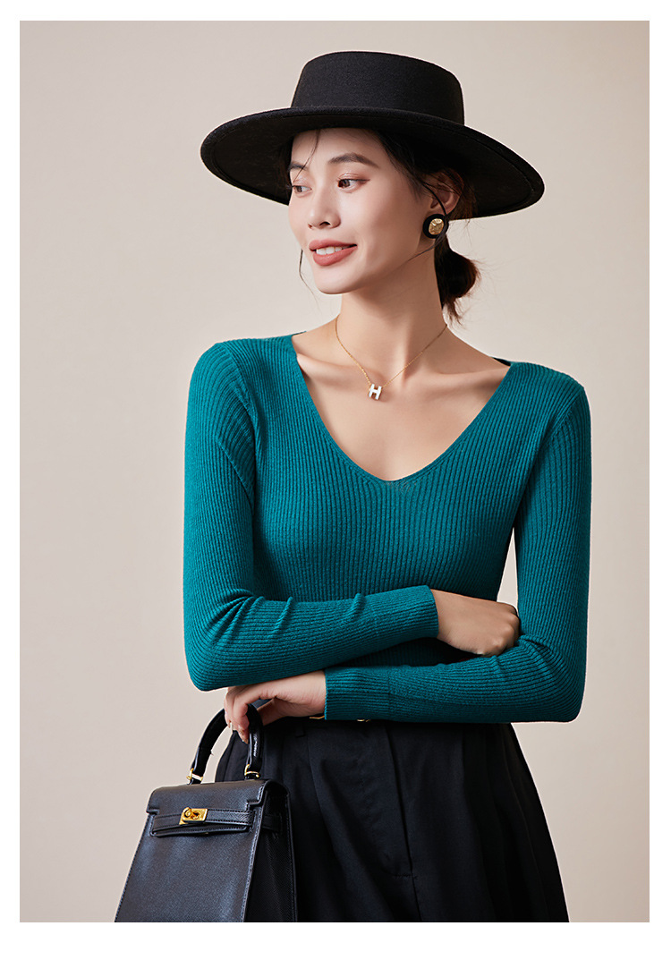TG-03S199秋冬真丝羊毛V领女长袖打底衫 百搭纯色弹力桑蚕丝t恤女上衣
