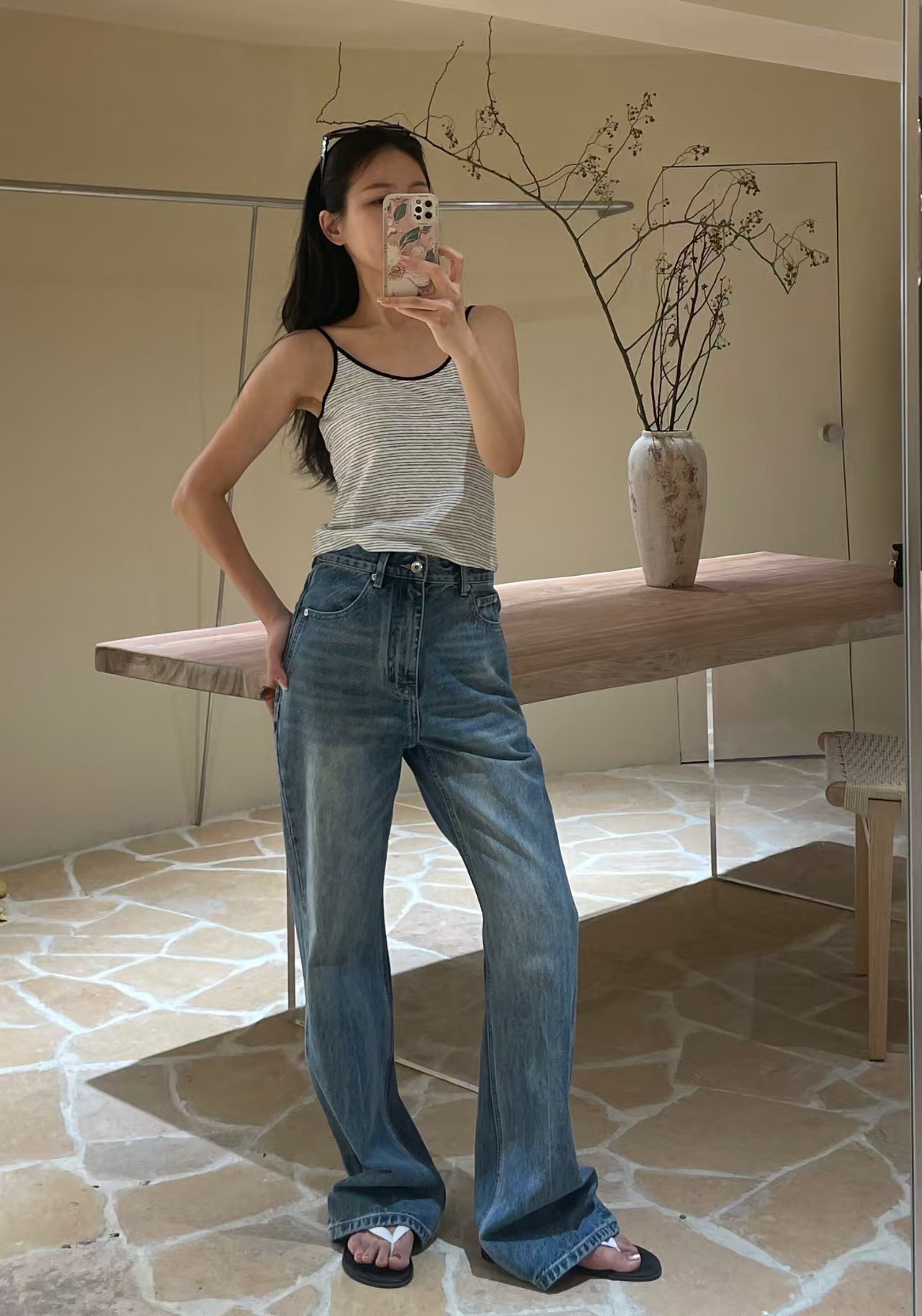 顺丰包邮64056洛诗琳纯棉做旧磨破直筒牛仔裤50546