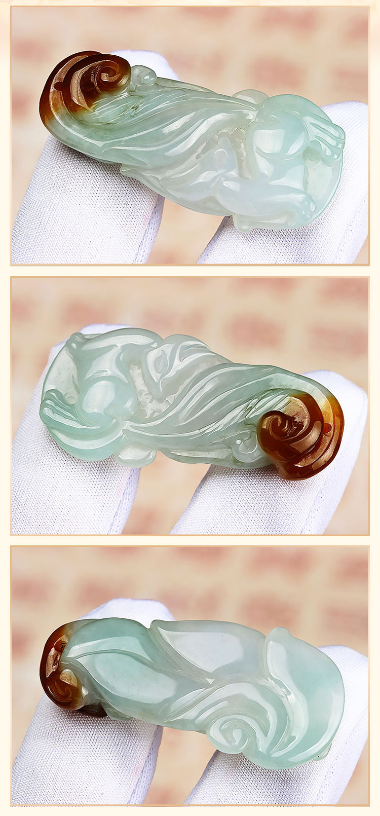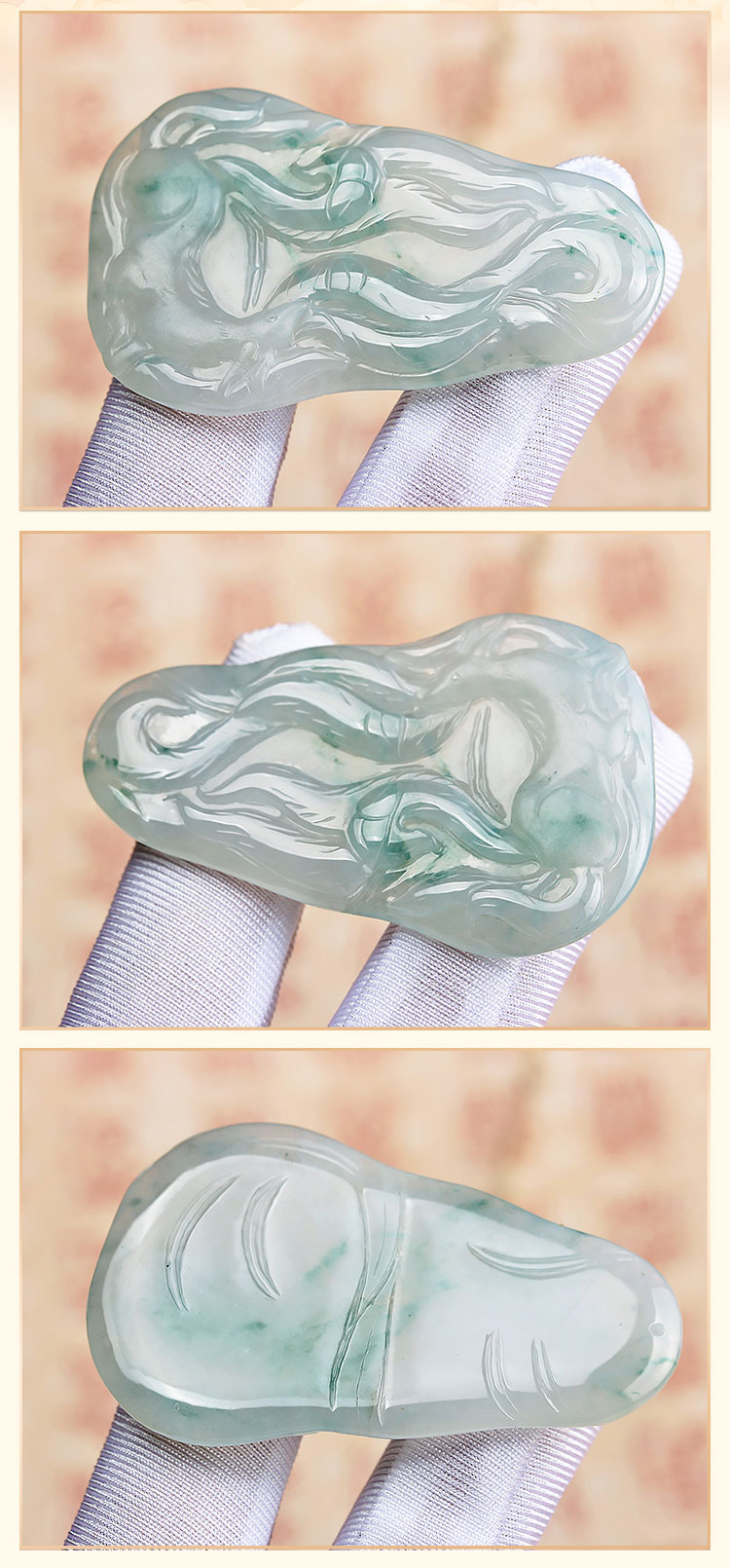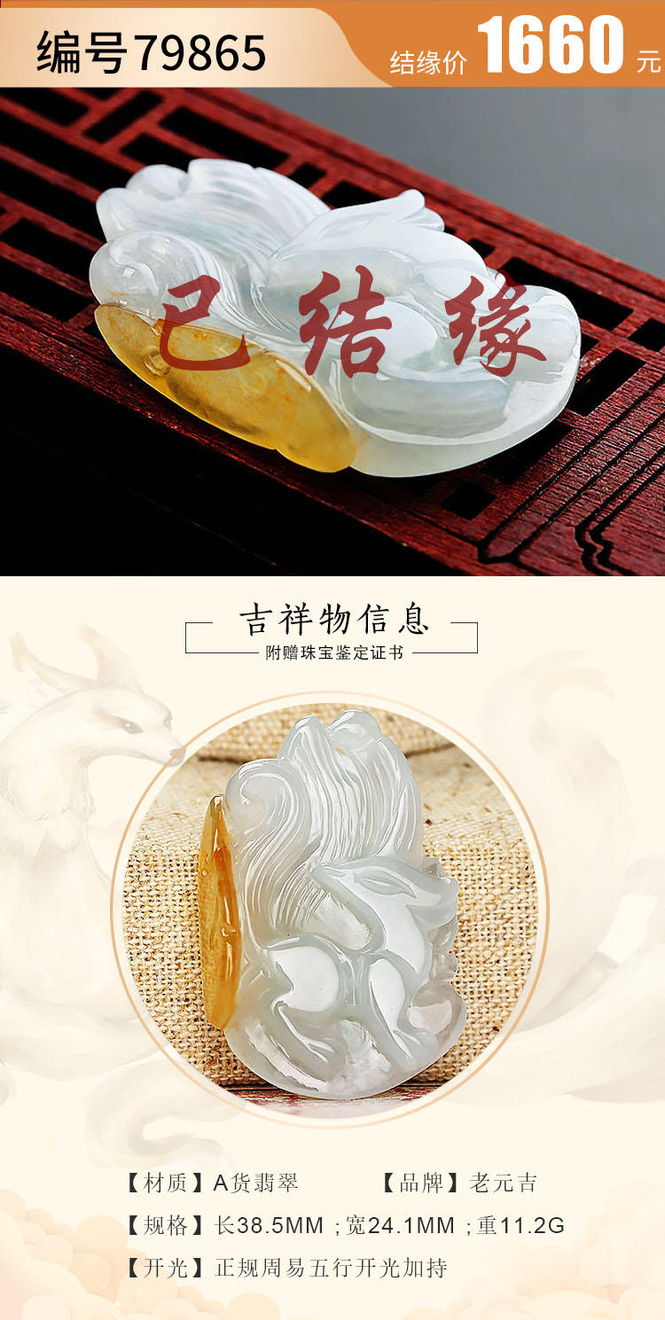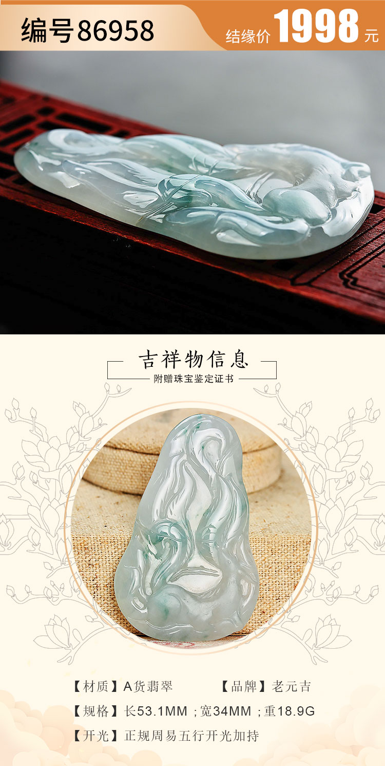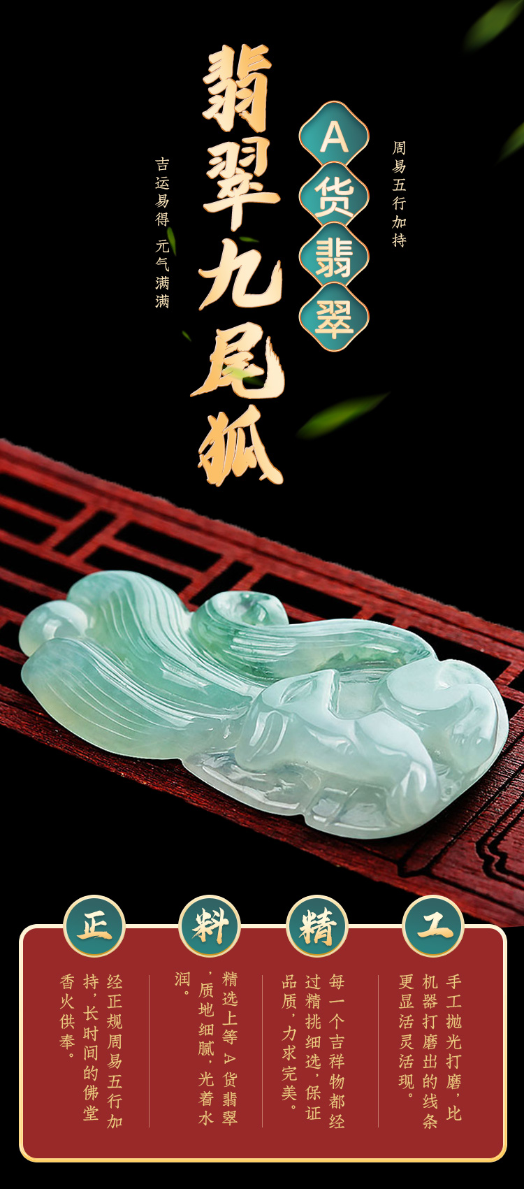 老元吉A货【翡翠九尾狐】吊坠玉石雕刻件