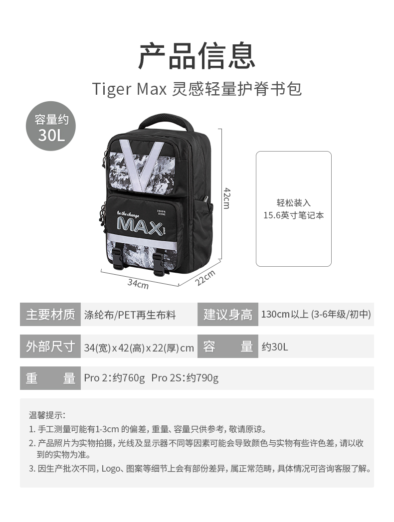 tigerfamily虎米 3-6年级/初中男女书包小学生背包初中男女生护脊双肩包灵感系列
