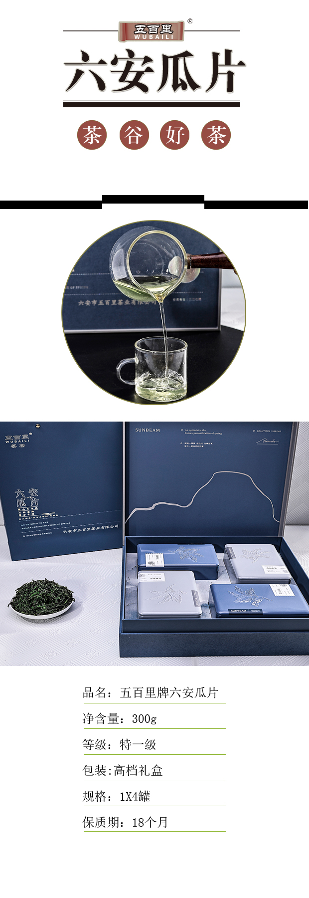 五百里 六安瓜片 特一级新茶 300g(4听x75g)