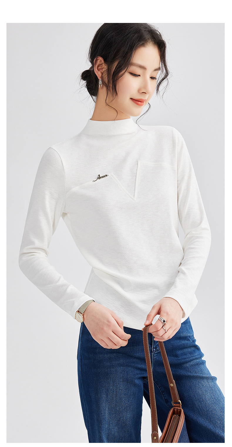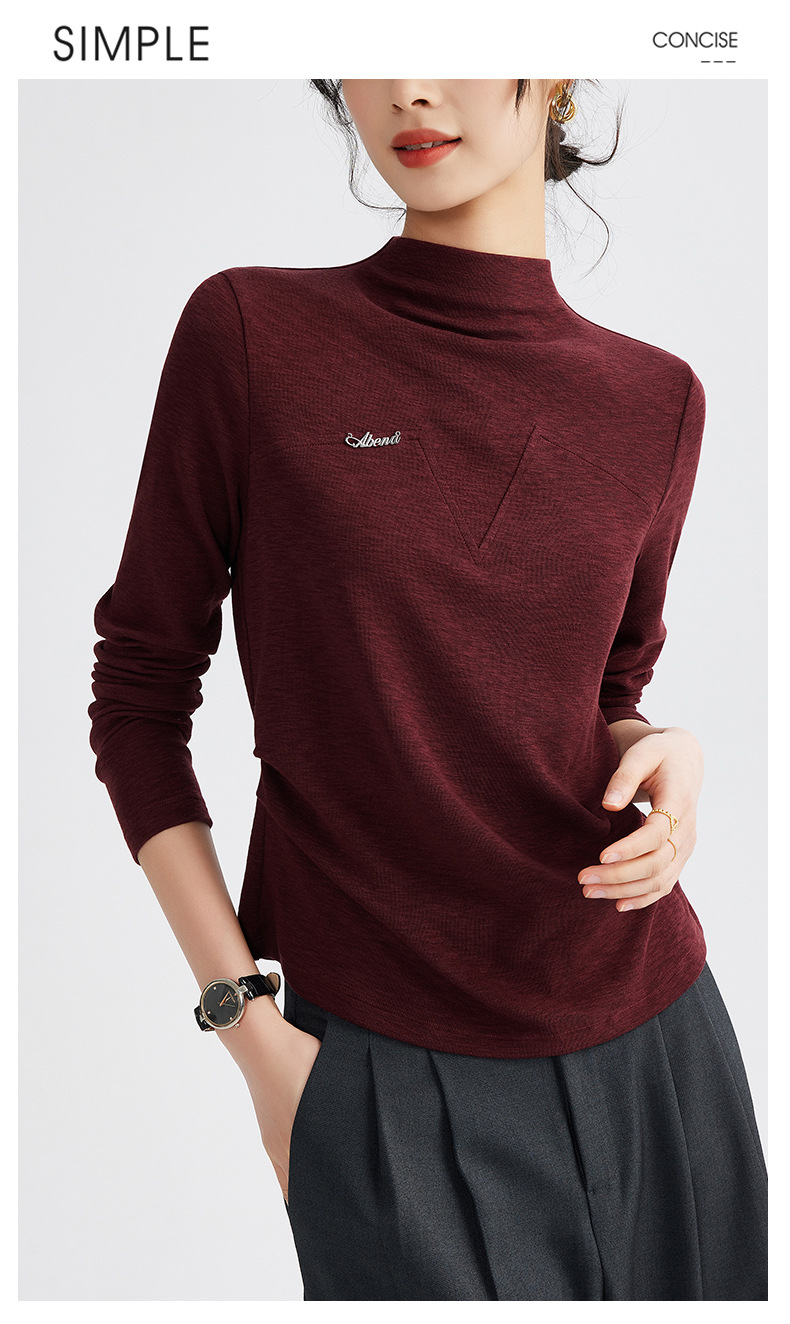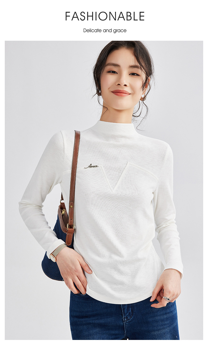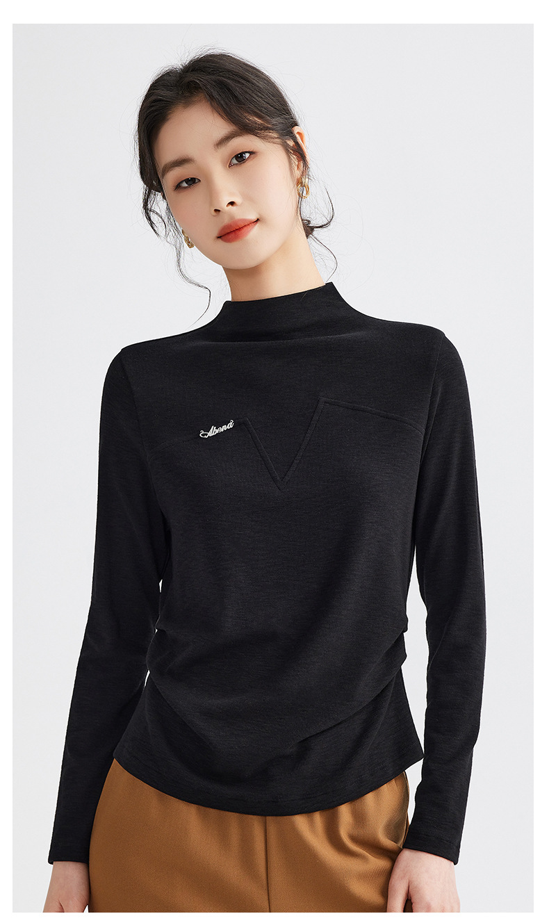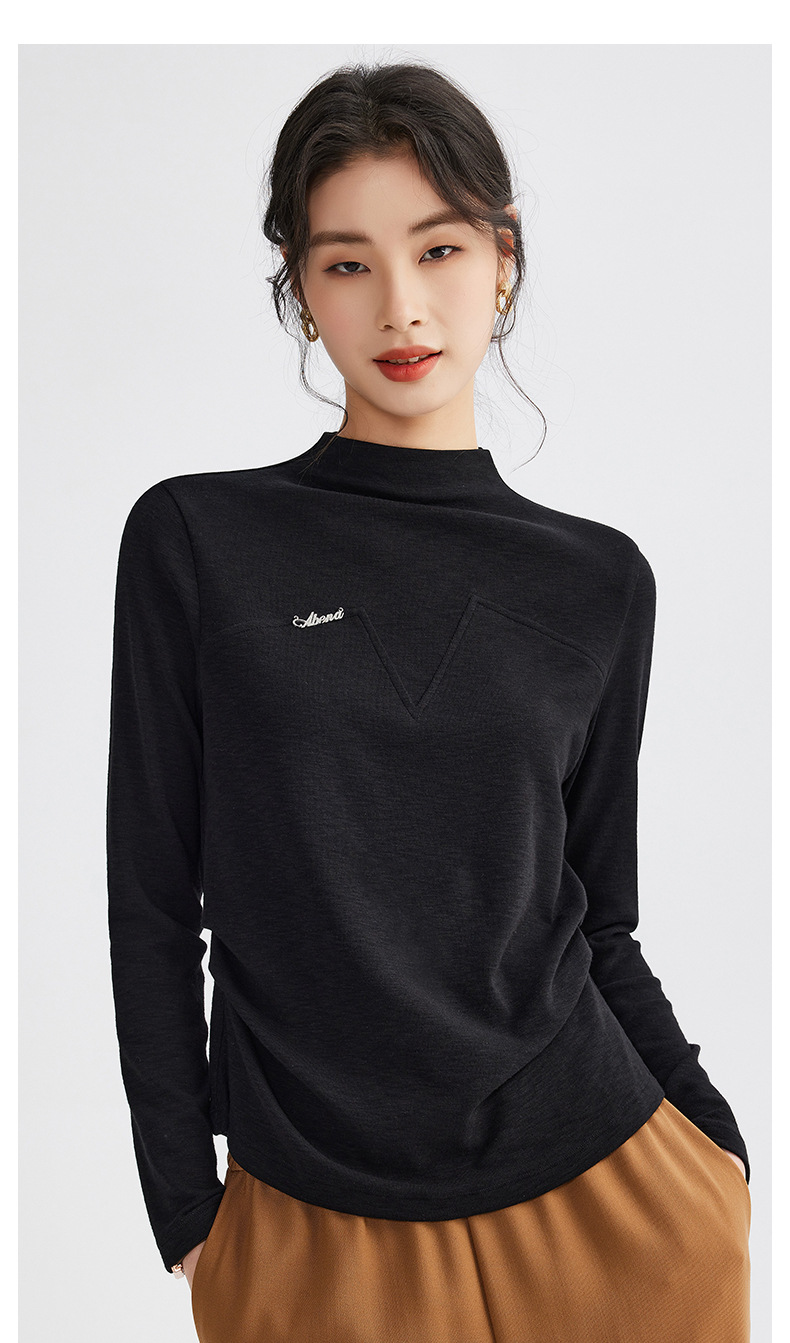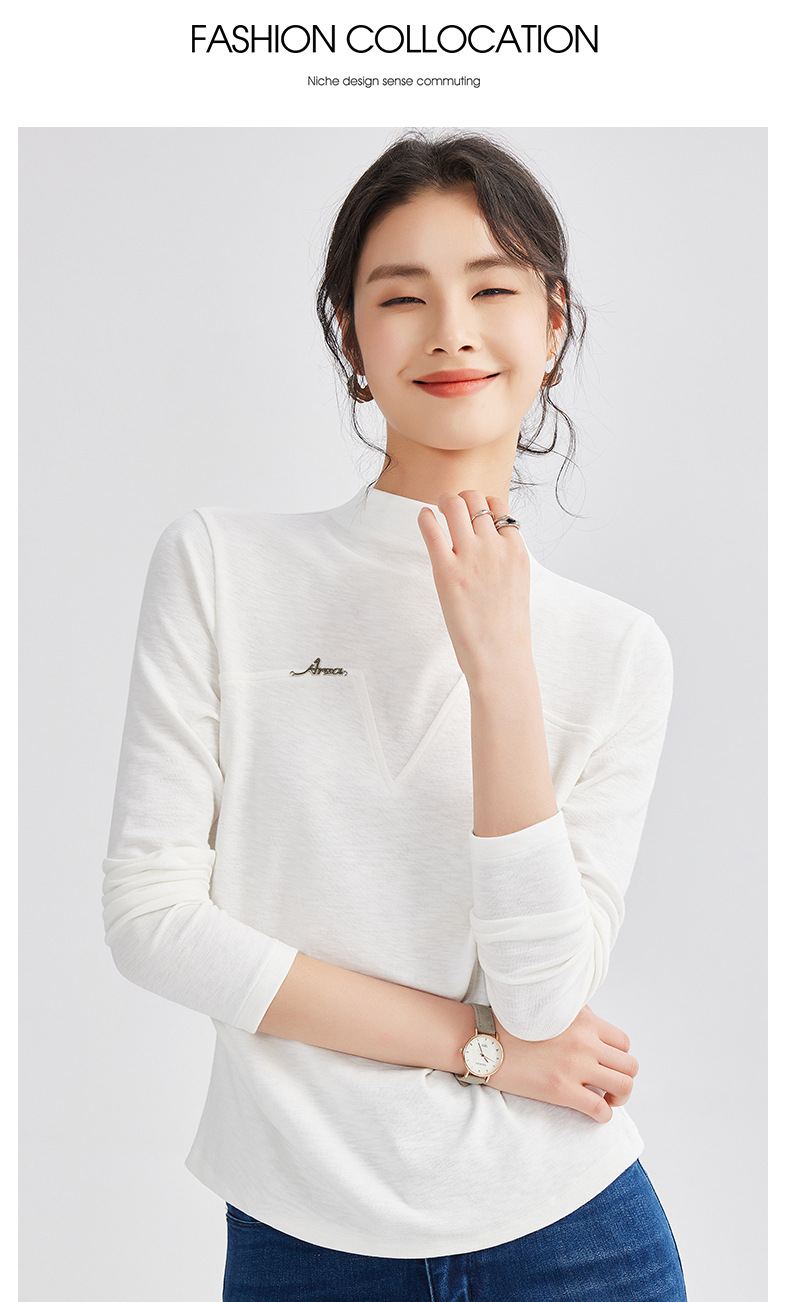 雀说半高领长袖t恤新款打底衫设计感显瘦上衣气质ALM681