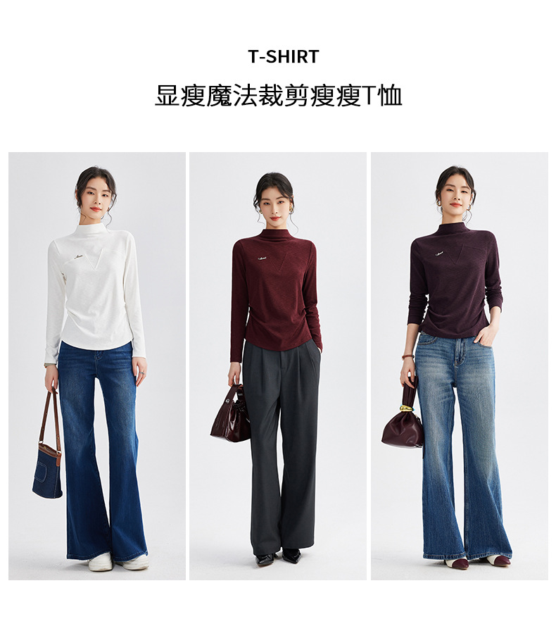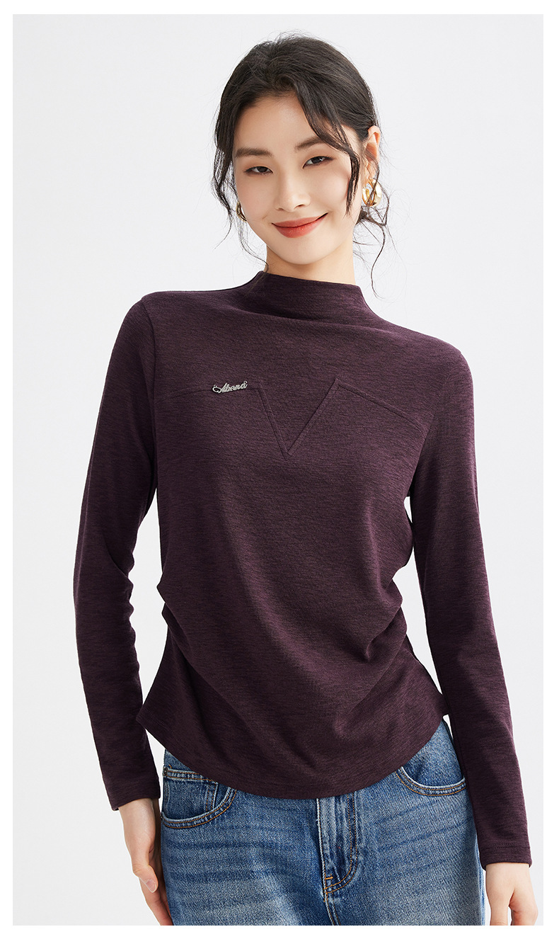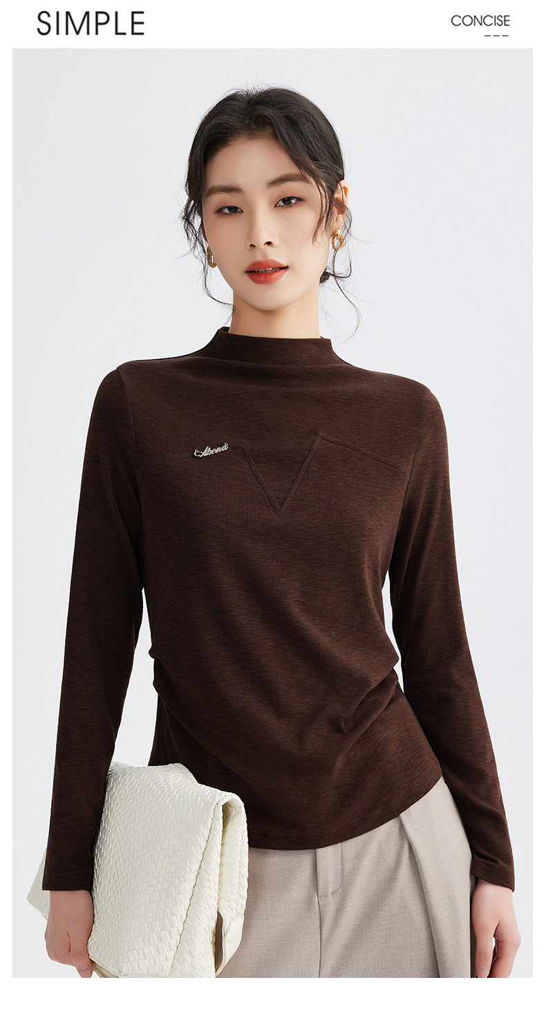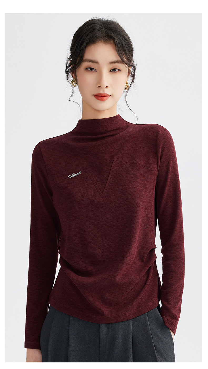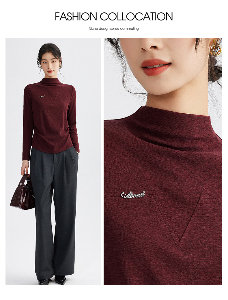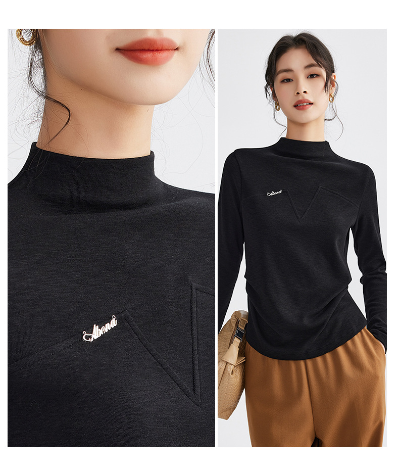 雀说半高领长袖t恤新款打底衫设计感显瘦上衣气质ALM681