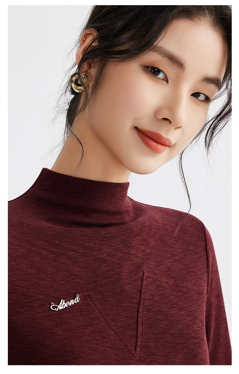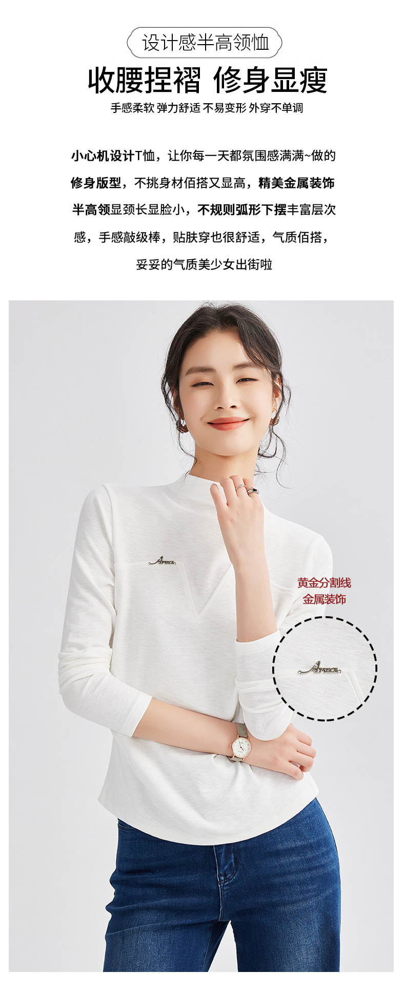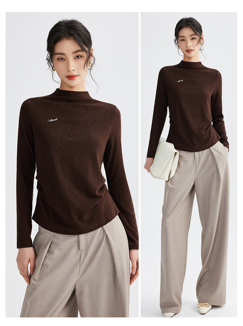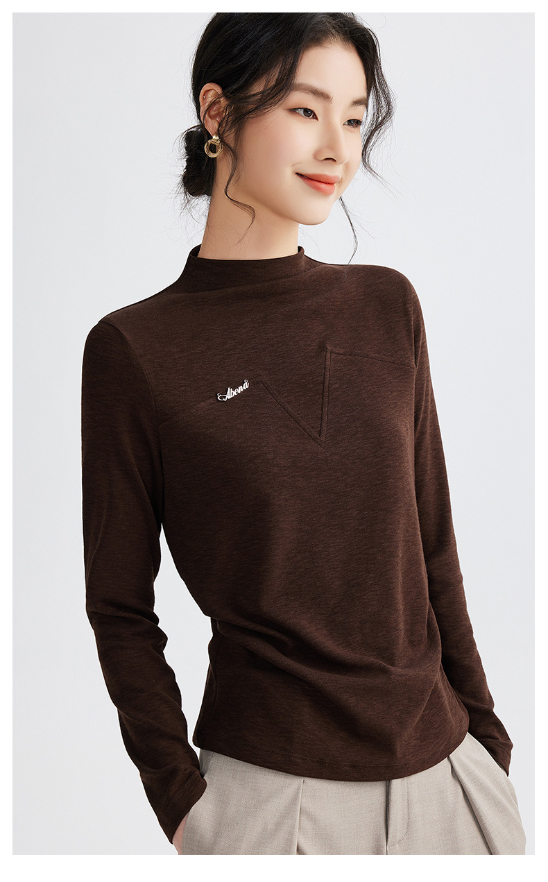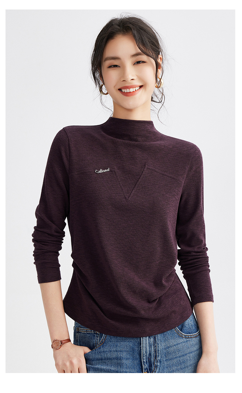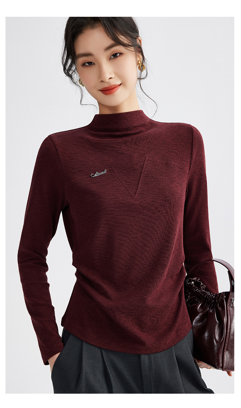雀说半高领长袖t恤新款打底衫设计感显瘦上衣气质ALM681