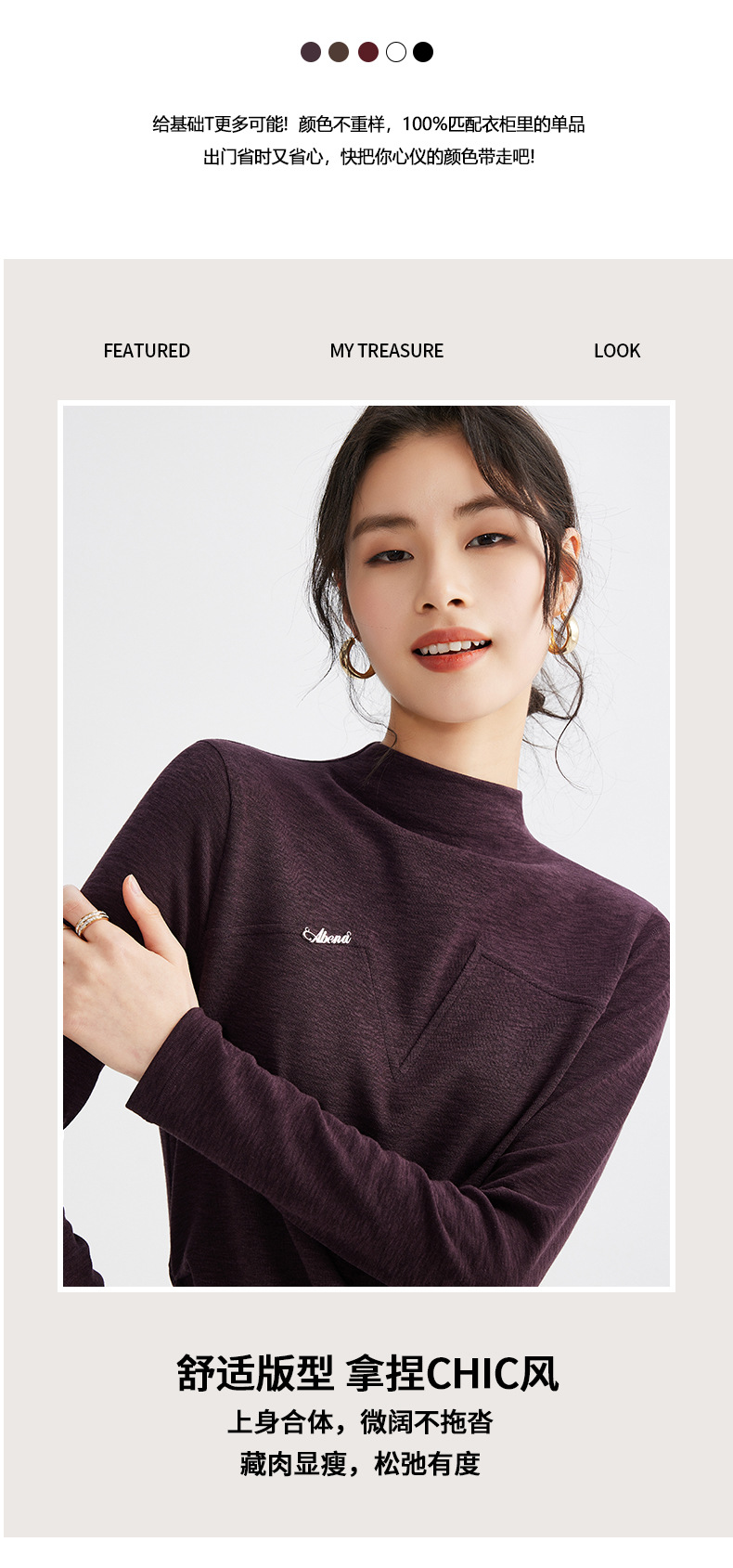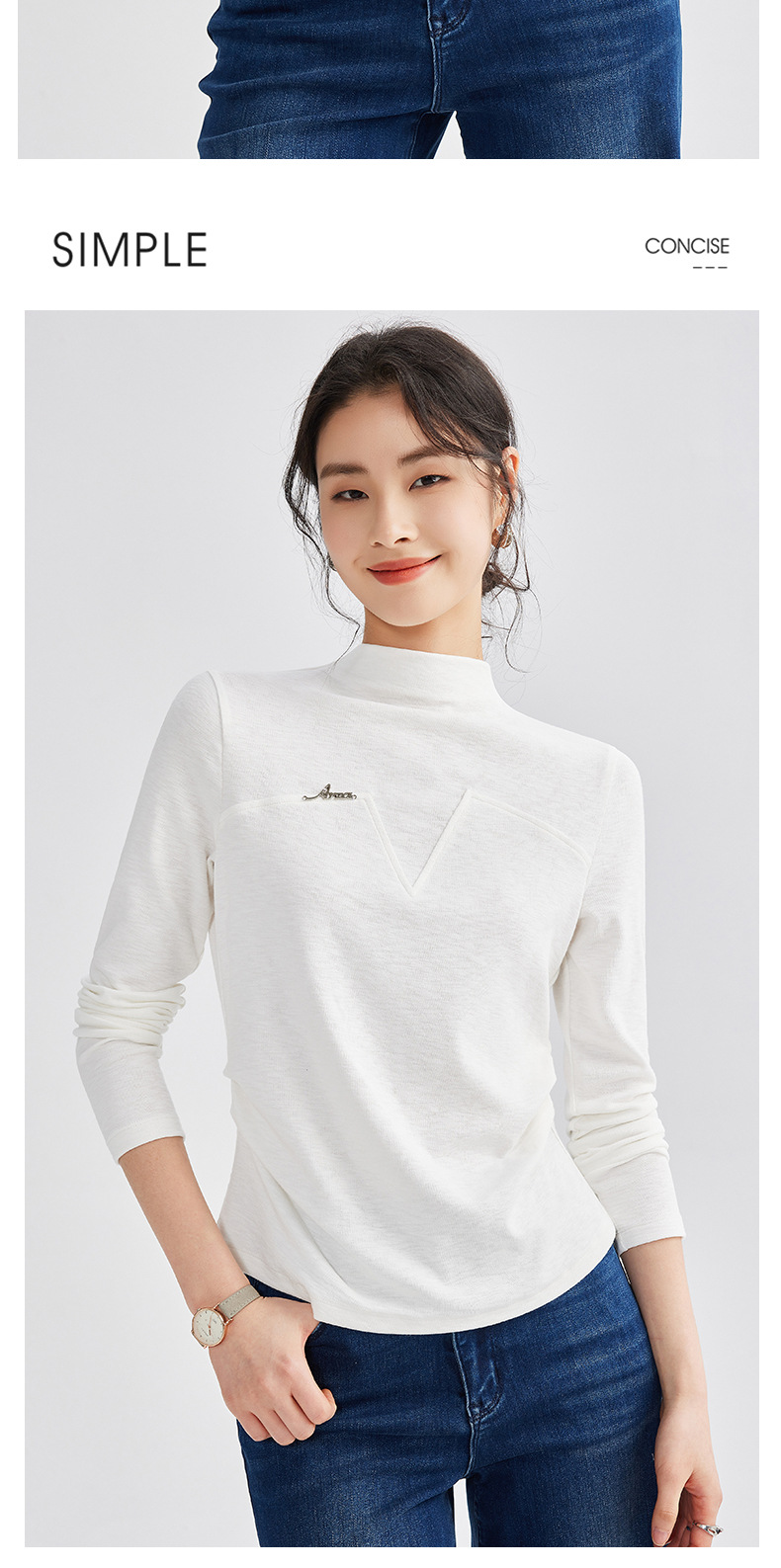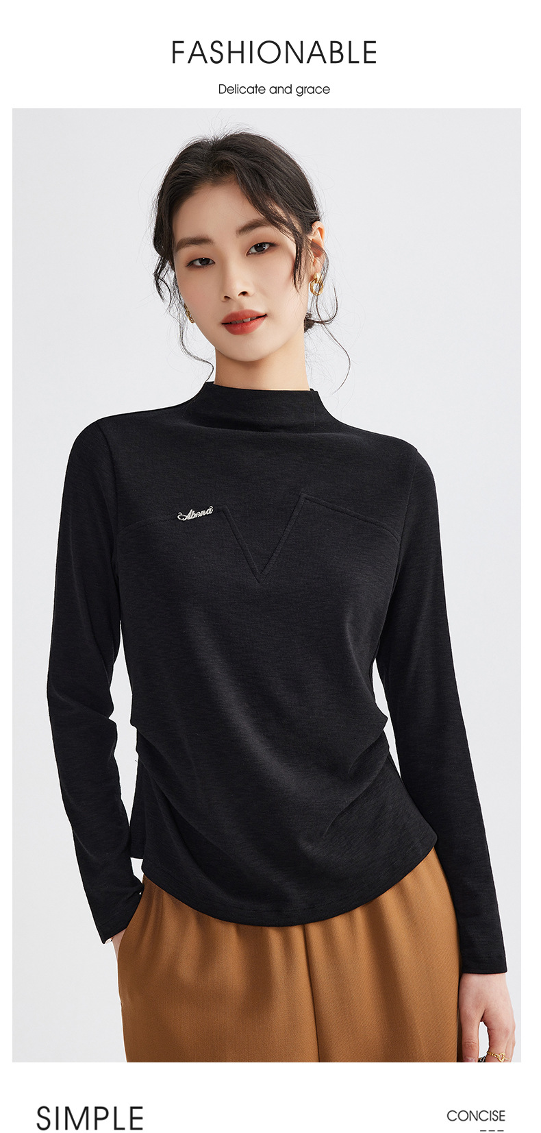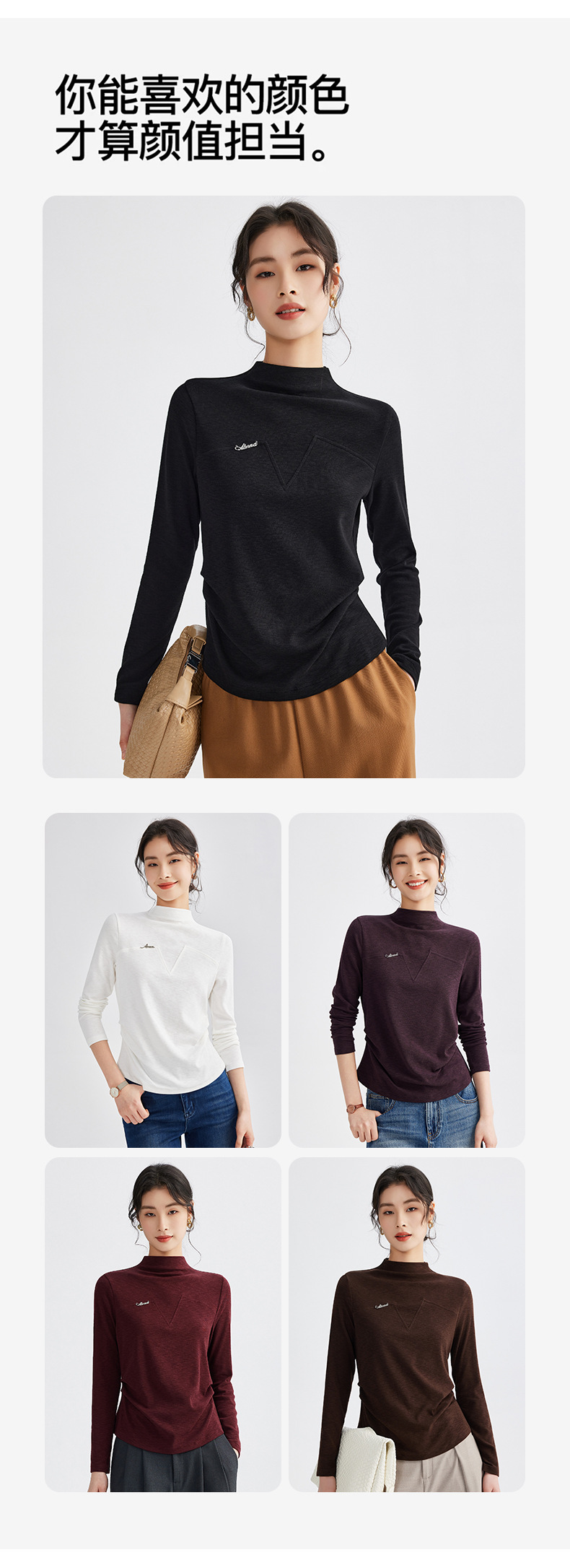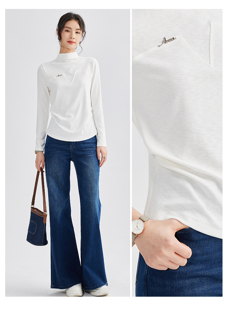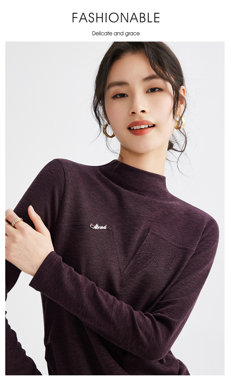 雀说半高领长袖t恤新款打底衫设计感显瘦上衣气质ALM681