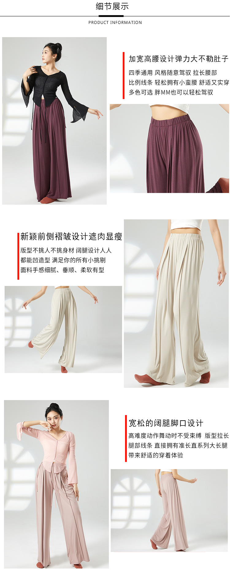 百媚生 四季裤中国舞蹈练功服女舞蹈裤古典舞蹈练功裤阔腿裤K8748