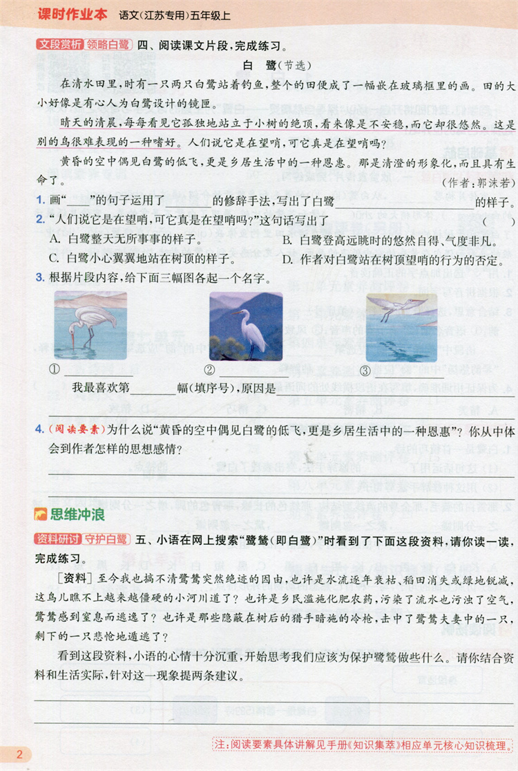 2025年秋 语文课时作业本5上 配人教部编版 小学同步教辅 五年级上 江苏专用 同步教辅 课时教辅单元期中期末练习
