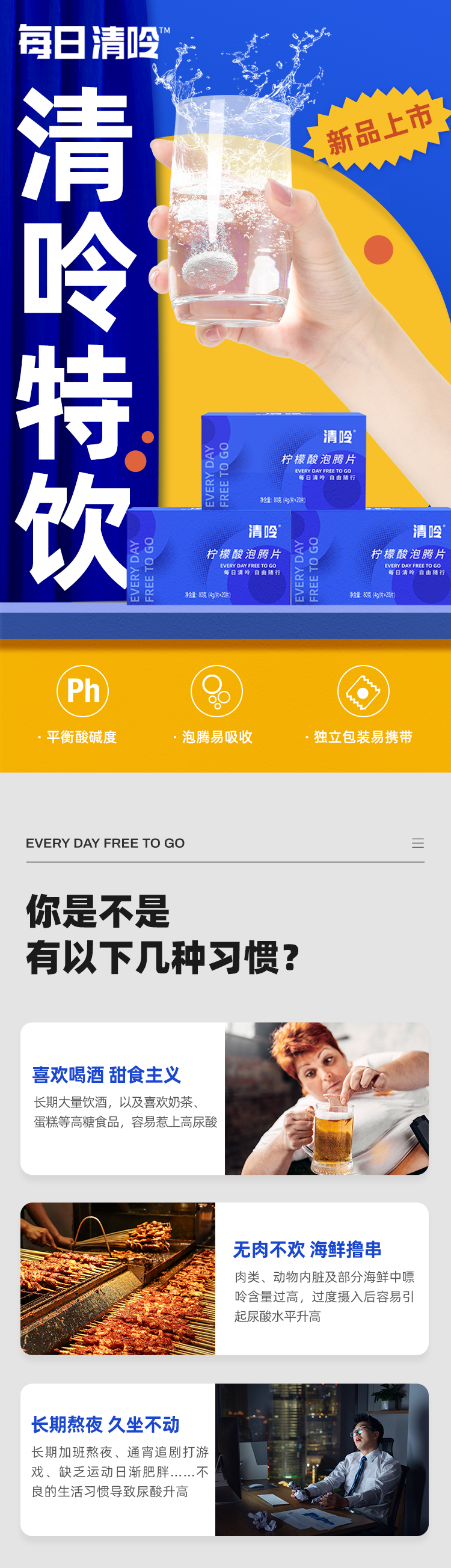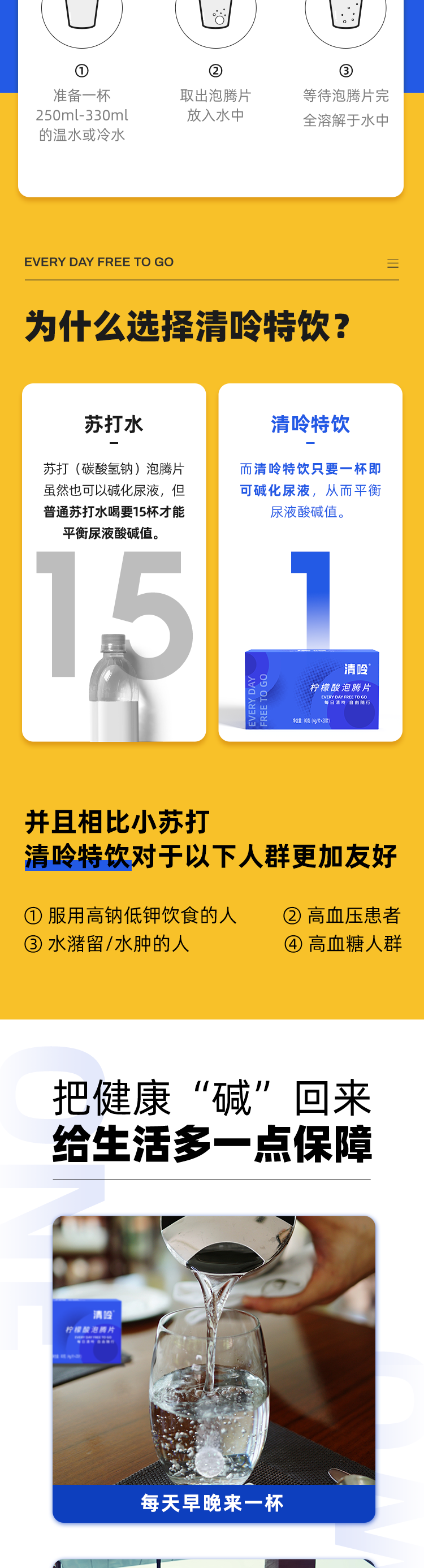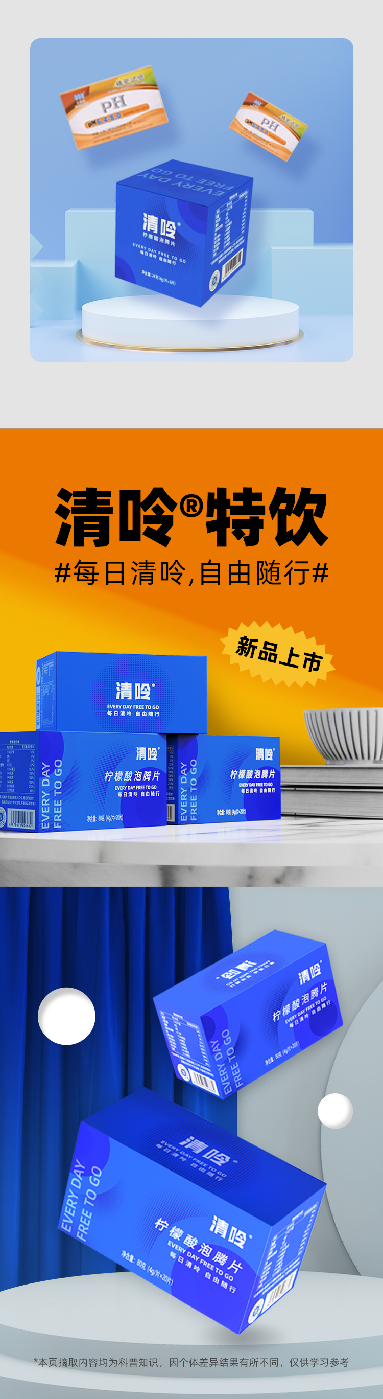清呤柠檬酸泡腾片 口感清新更好喝 帮助平衡人体尿液酸碱值 泡腾更易吸收 独立包装易携带