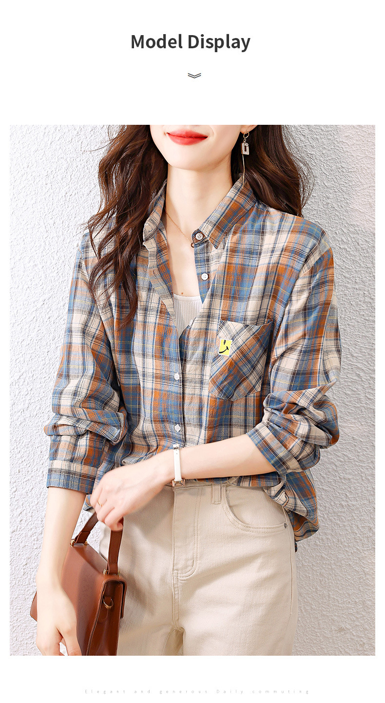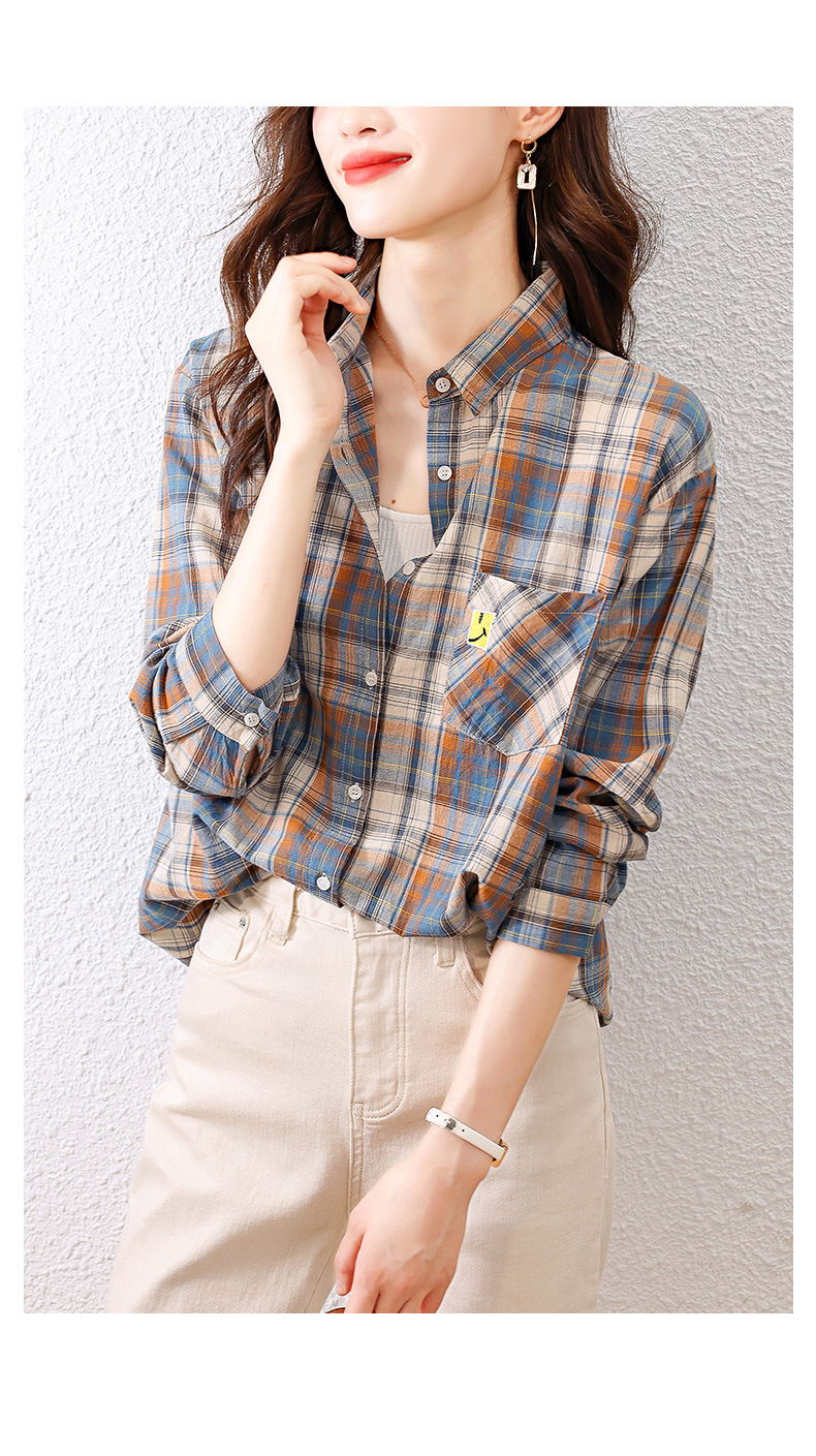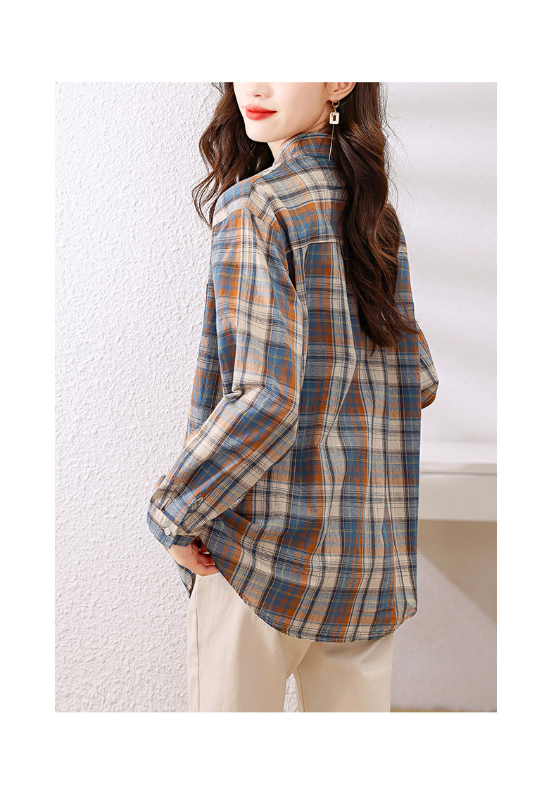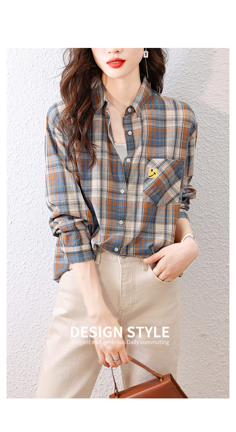 雀说 格子衬衫女春秋装上衣气质文艺复古纯棉衬衣4ZF-021506