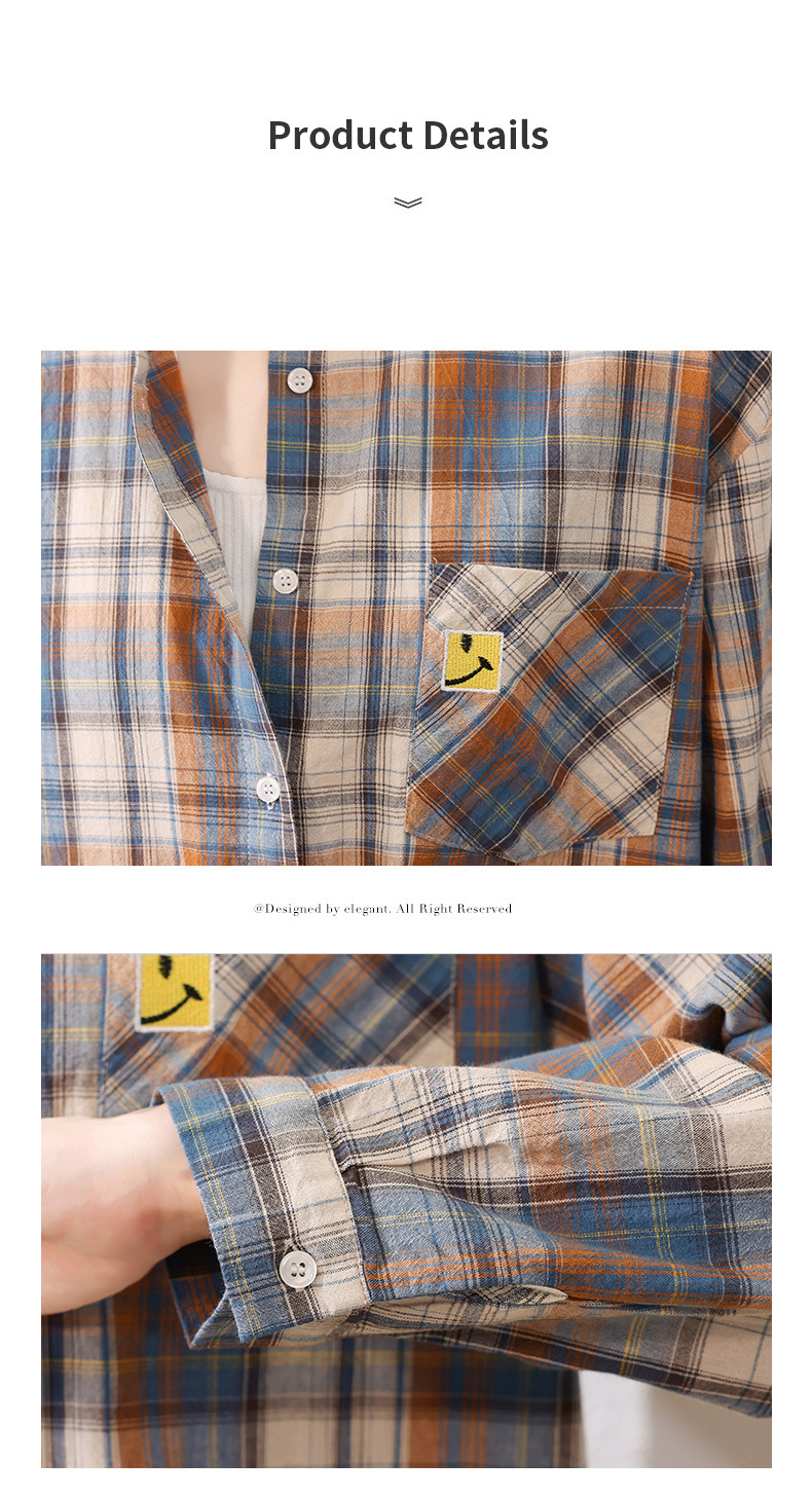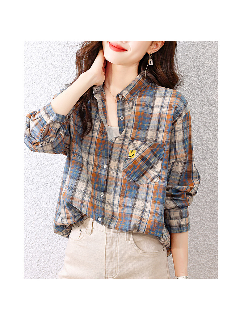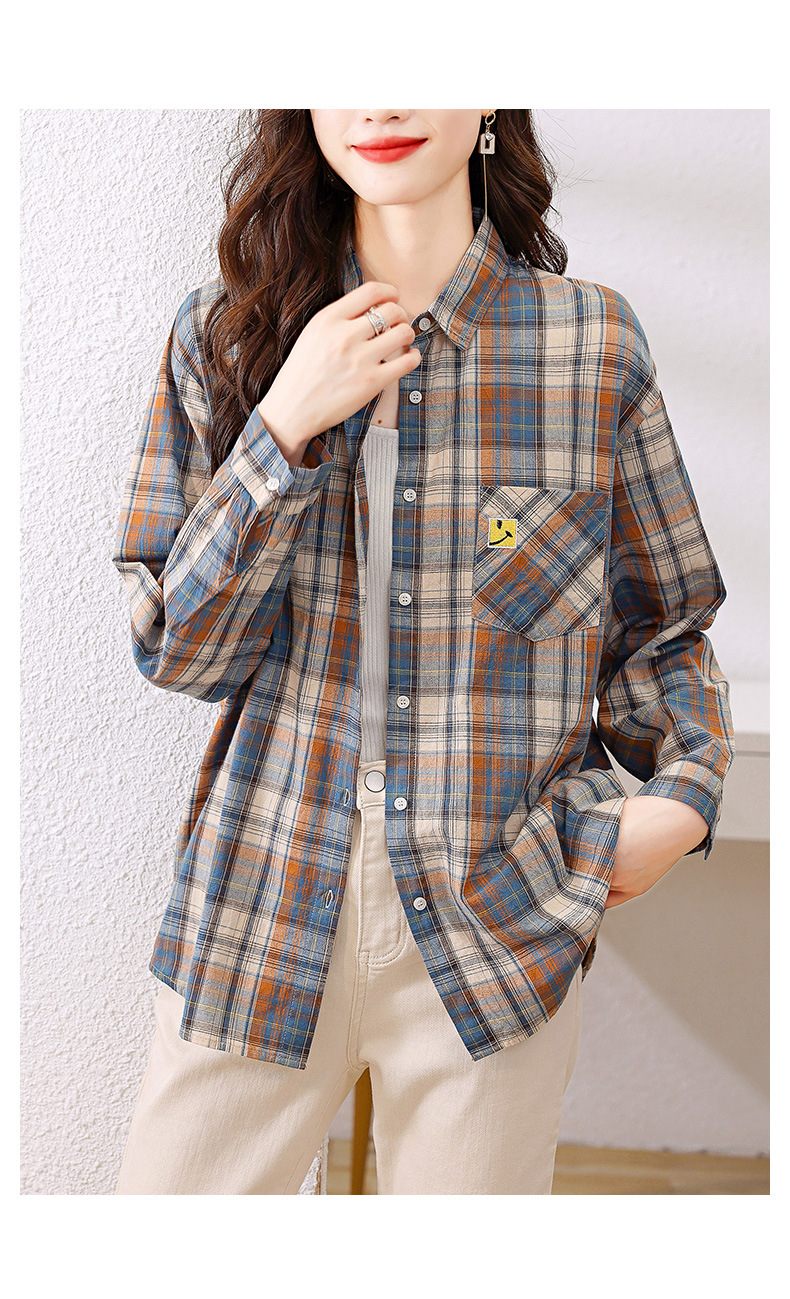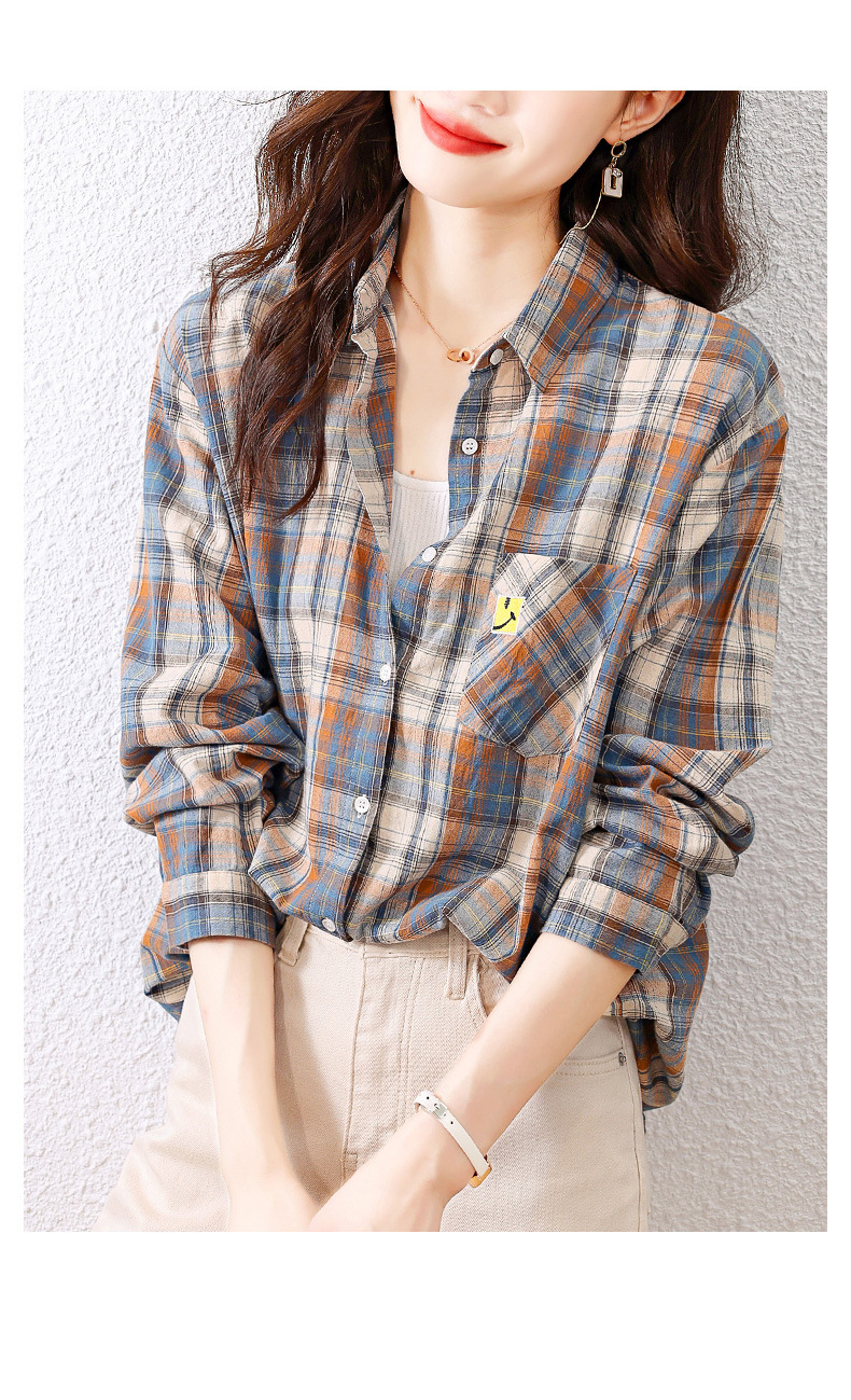 雀说 格子衬衫女春秋装上衣气质文艺复古纯棉衬衣4ZF-021506