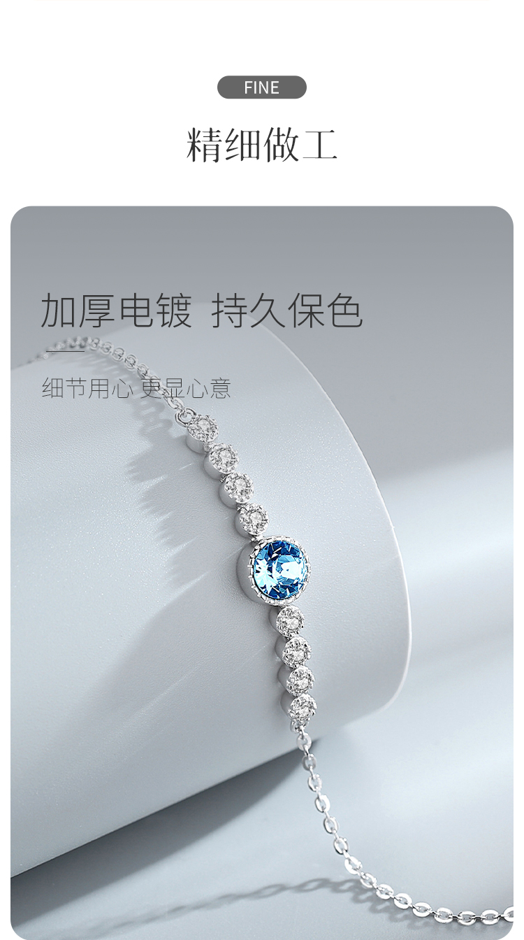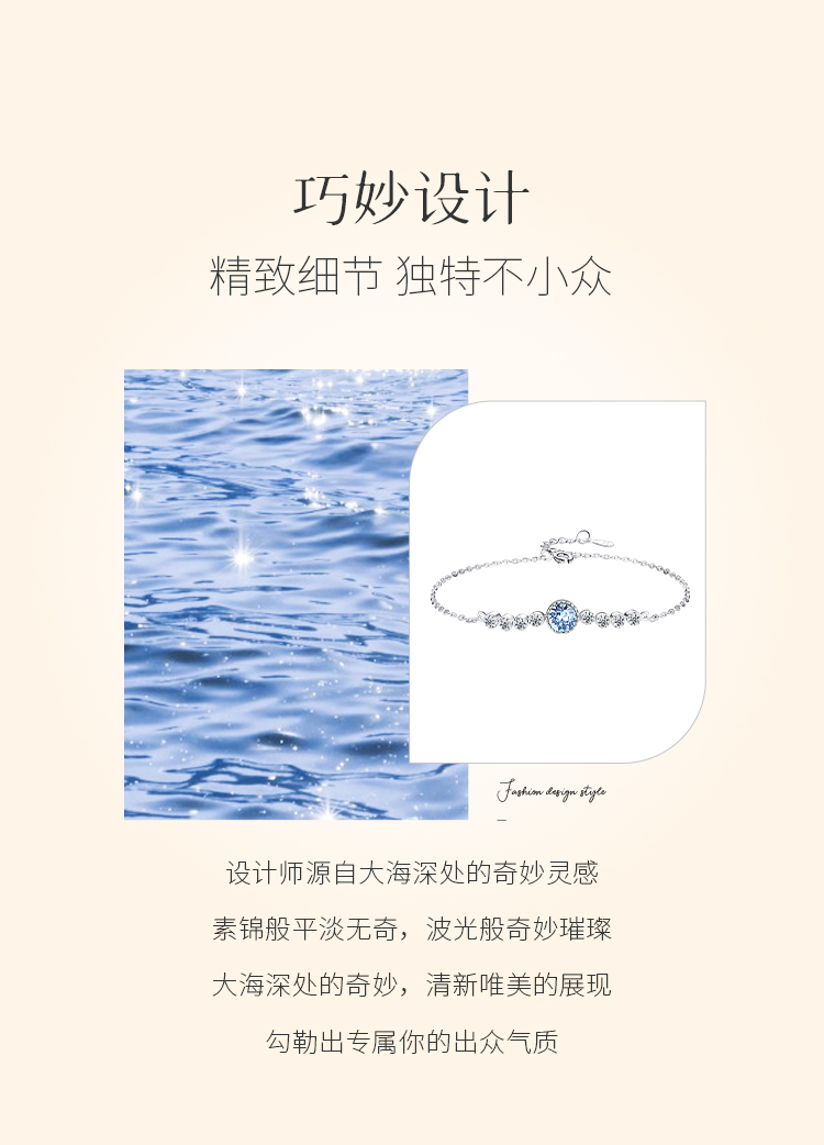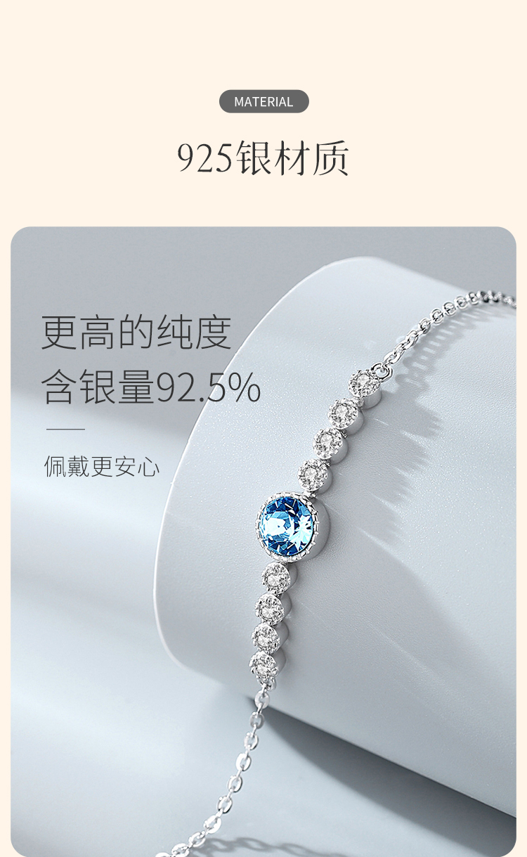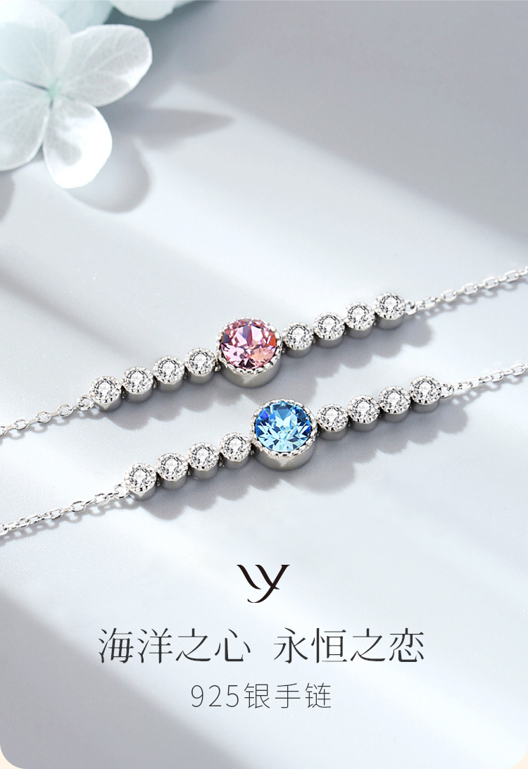Winy925银海洋心手链配证书送女友闺蜜节日礼物